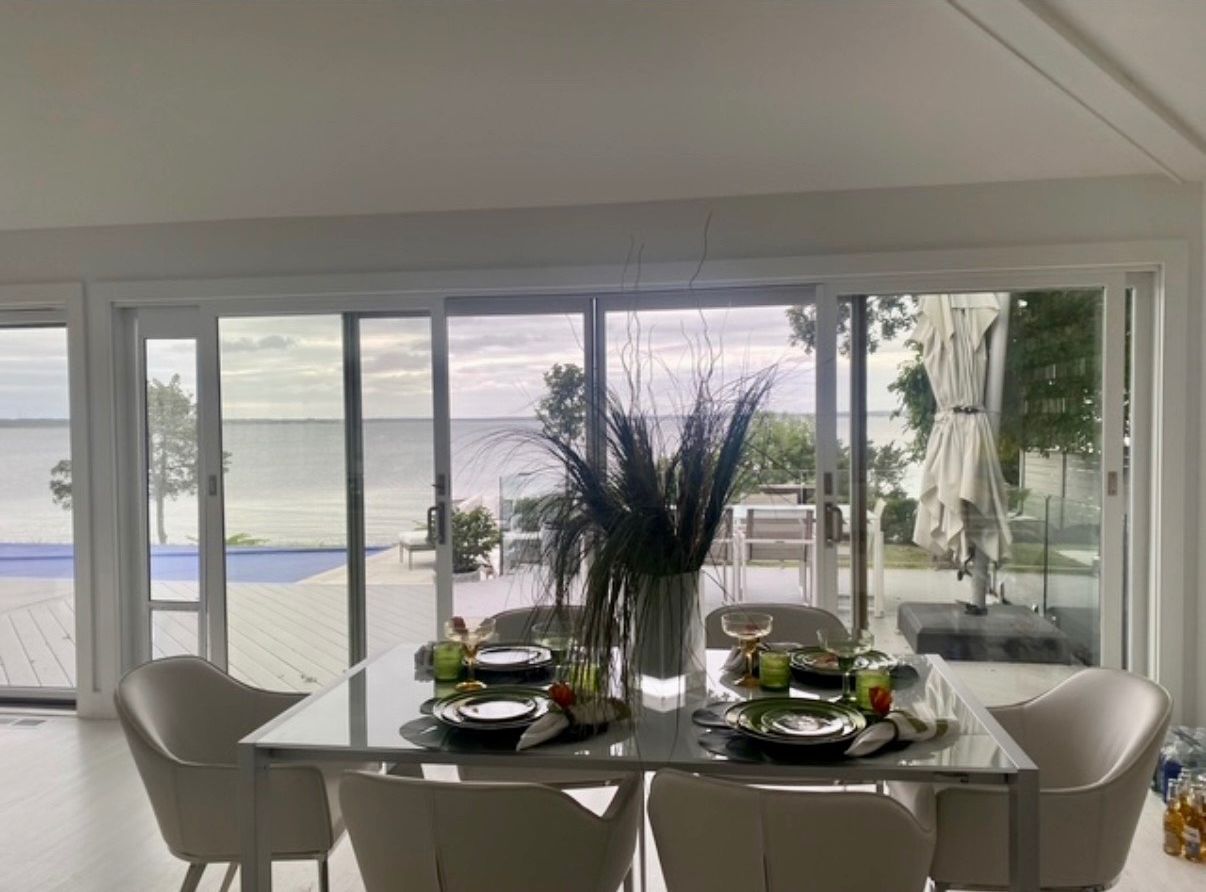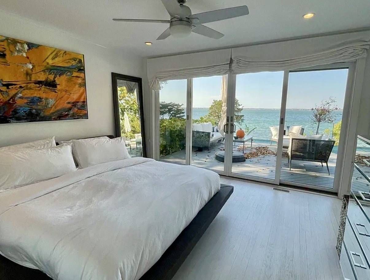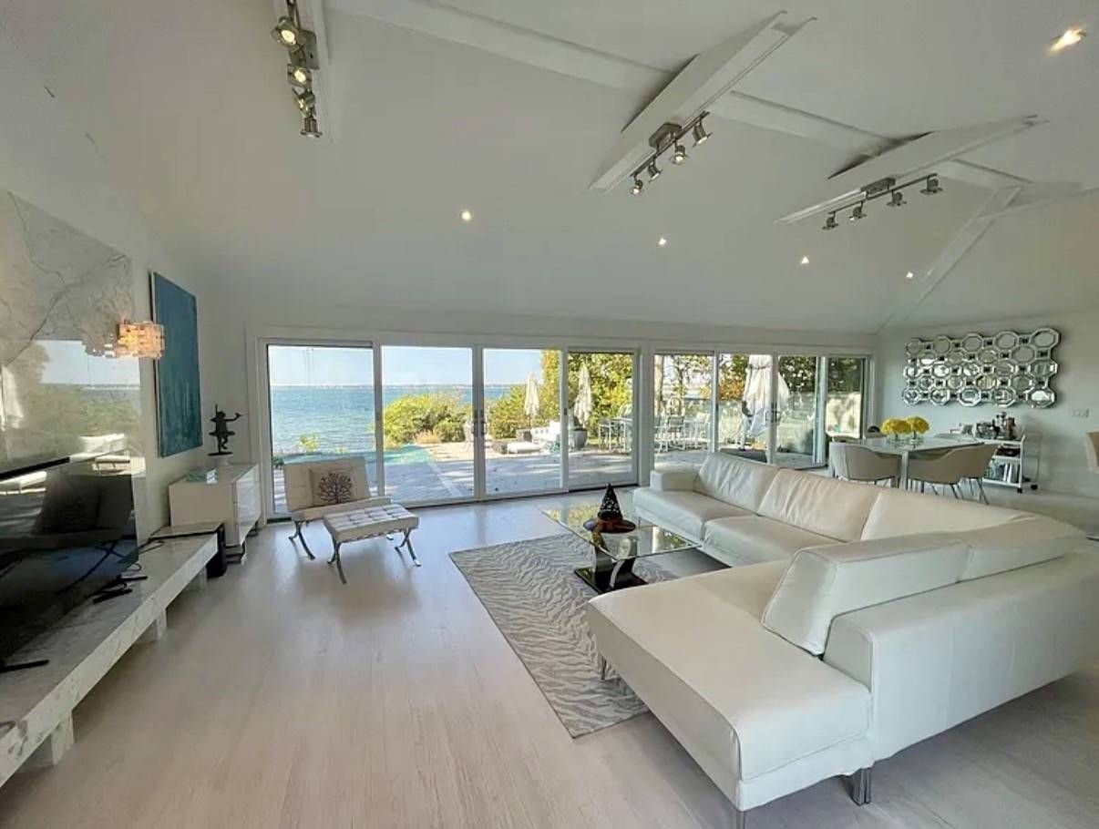 Set atop a bluff with beautiful vistas in every direction, this light-filled waterfront retreat offers a rare sense of serenity and escape. More than just a house, it is a true sensory experience-where gentle bay breezes, shimmering water views, and breathtaking sunsets become part of daily life. Designed for seamless indoor-outdoor living, the open-flow layout extends to multiple decks, an infinity pool, and private steps leading down to the