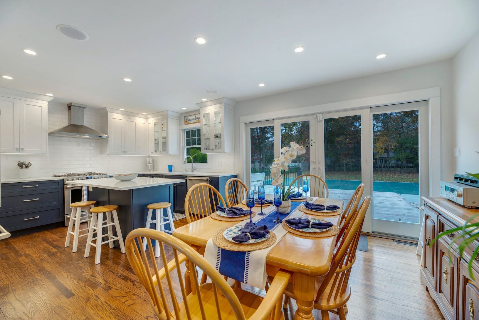Welcome to your winter oasis retreat home in the heart of the Hamptons located on one of the most sought -after private blocks in Hampton Bays. This beautiful designer home features a gorgeous, renovated chef's kitchen with Quart's countertop, high-end stainless-steel appliances to create all your holidays meals. Dining area right off the kitchen so you can entertain your guest while preparing your meals. spacious living space for watching you