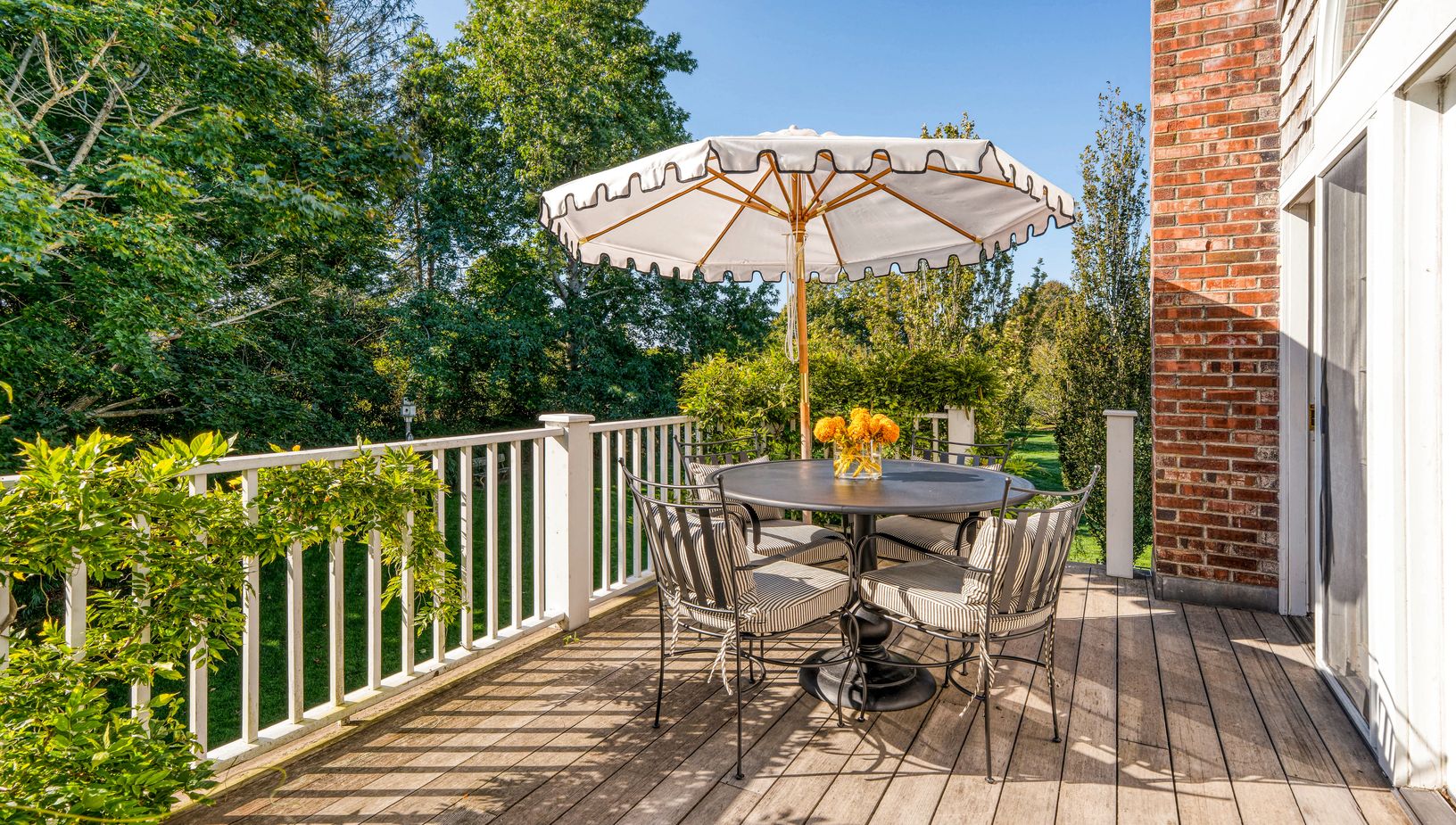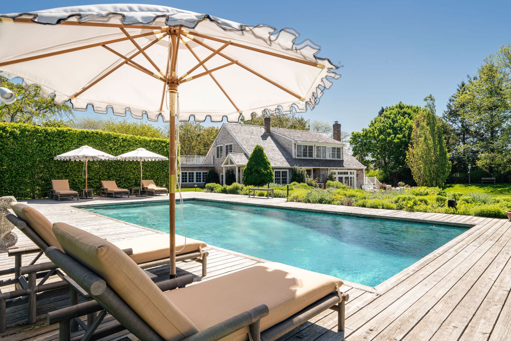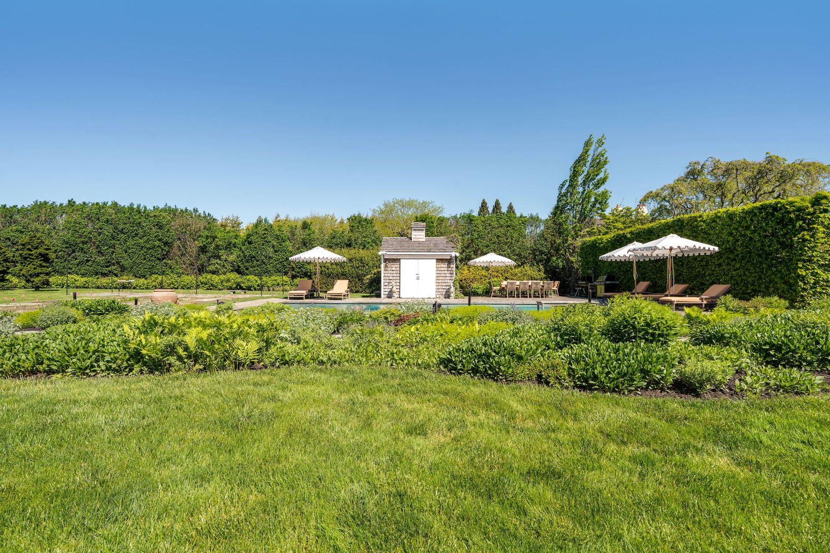 Ninety newly planted 24-foot Arborvitae trees surround the property, providing ultimate privacy. All the bathrooms have undergone a thorough renovation, and the fully renovated deVol kitchen features a la Cornue stove, a Sub-Zero French Door refrigerator/freezer, and other high end appliances.