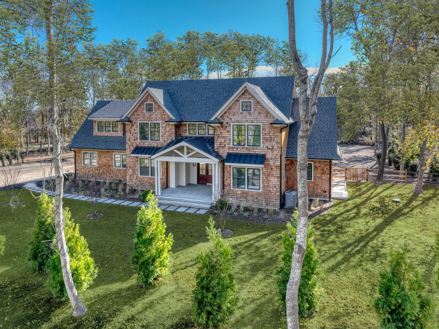 Stunning top of the line new Shelter Island home, nearing completion. Thoughtfully designed and built with great attention to detail, this 5 bedroom, 4 bath shingle style home is on a .96 acre corner lot in the sought after Shorewood area of Shelter Island. A wide, bluestone, covered front porch opens to spacious entry hall and great room with vaulted ceiling, gas fireplace, glass doors and clerestory windows overlooking a large mahogany, cove