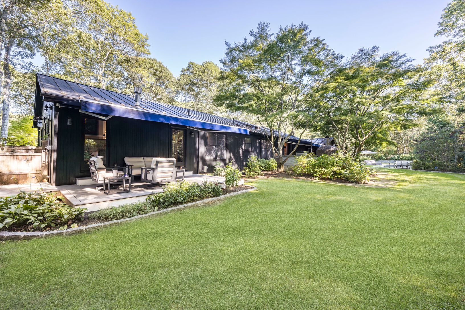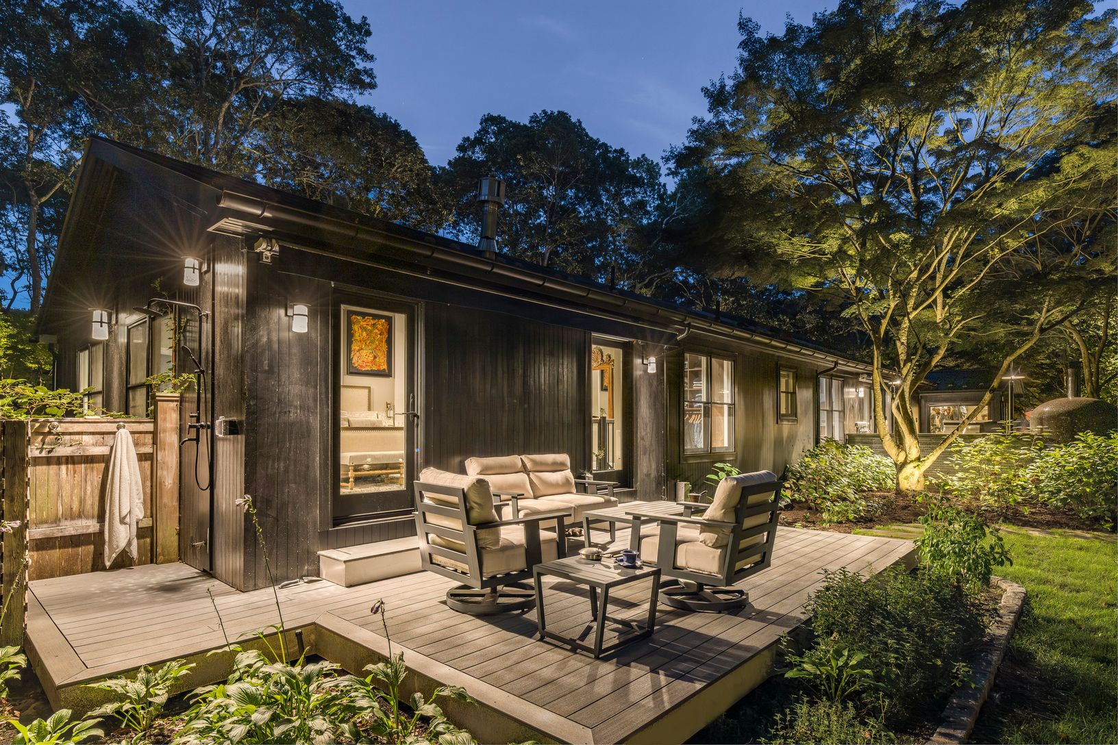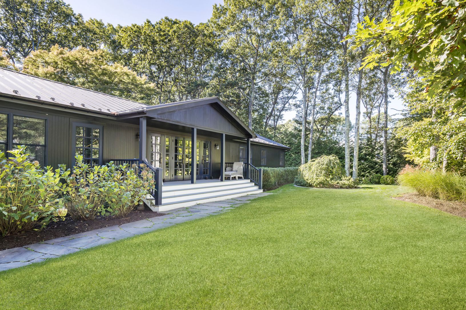 Located on a quiet cul-de-sac in Springs, close to bay beaches, marinas, cafés, and restaurants, 16 Parsons Close offers a turnkey retreat on a shy acre. Attention to detail is an understatement when walking through the home and landscaped grounds - every aspect has been thoughtfully designed, with a comprehensive renovation and addition in 2024. Enter the driveway, cross the deer-deterring cattle guard, and step inside through either the one-
