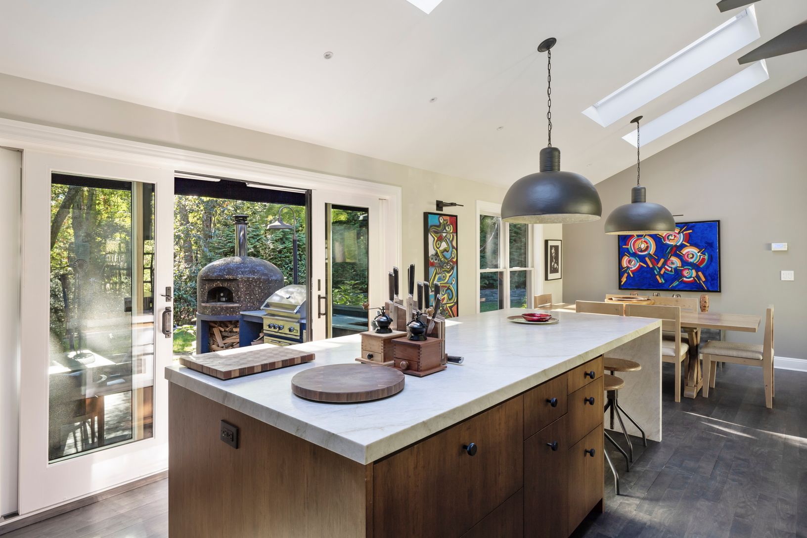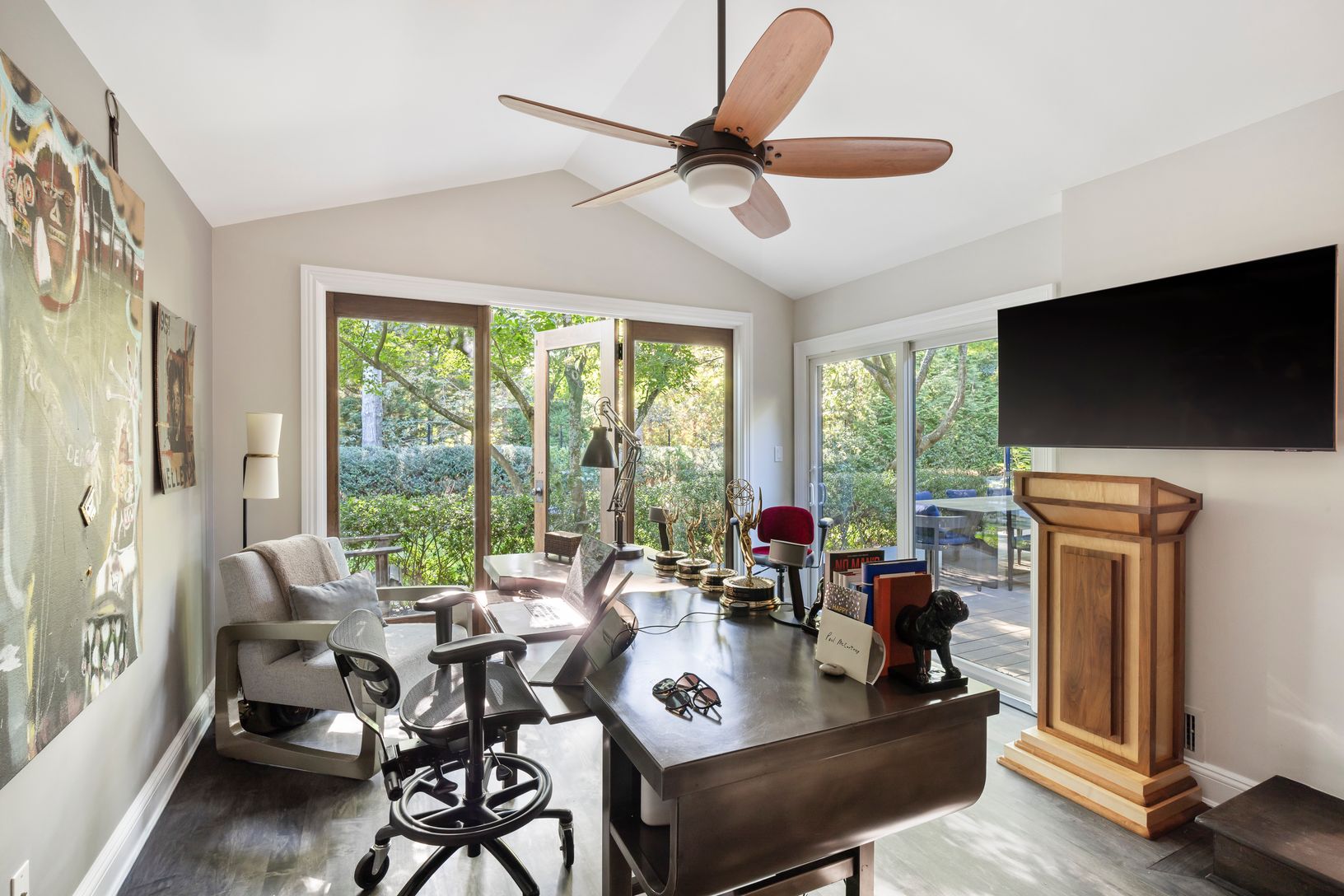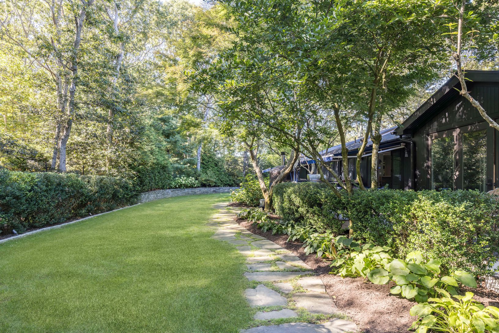 Located on a quiet cul-de-sac in Springs, close to bay beaches, marinas, cafés, and restaurants, 16 Parsons Close offers a turnkey retreat on a shy acre. Attention to detail is an understatement when walking through the home and landscaped grounds - every aspect has been thoughtfully designed, with a comprehensive renovation and addition in 2024. Enter the driveway, cross the deer-deterring cattle guard, and step inside through either the one-