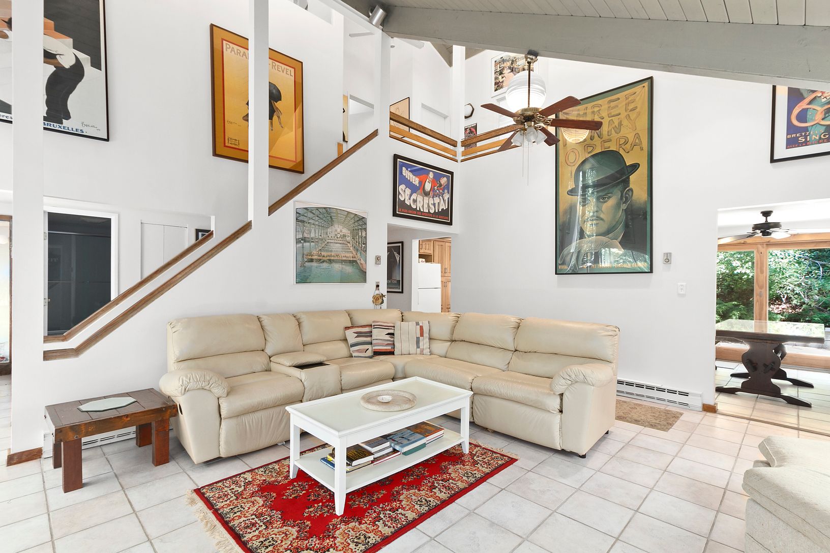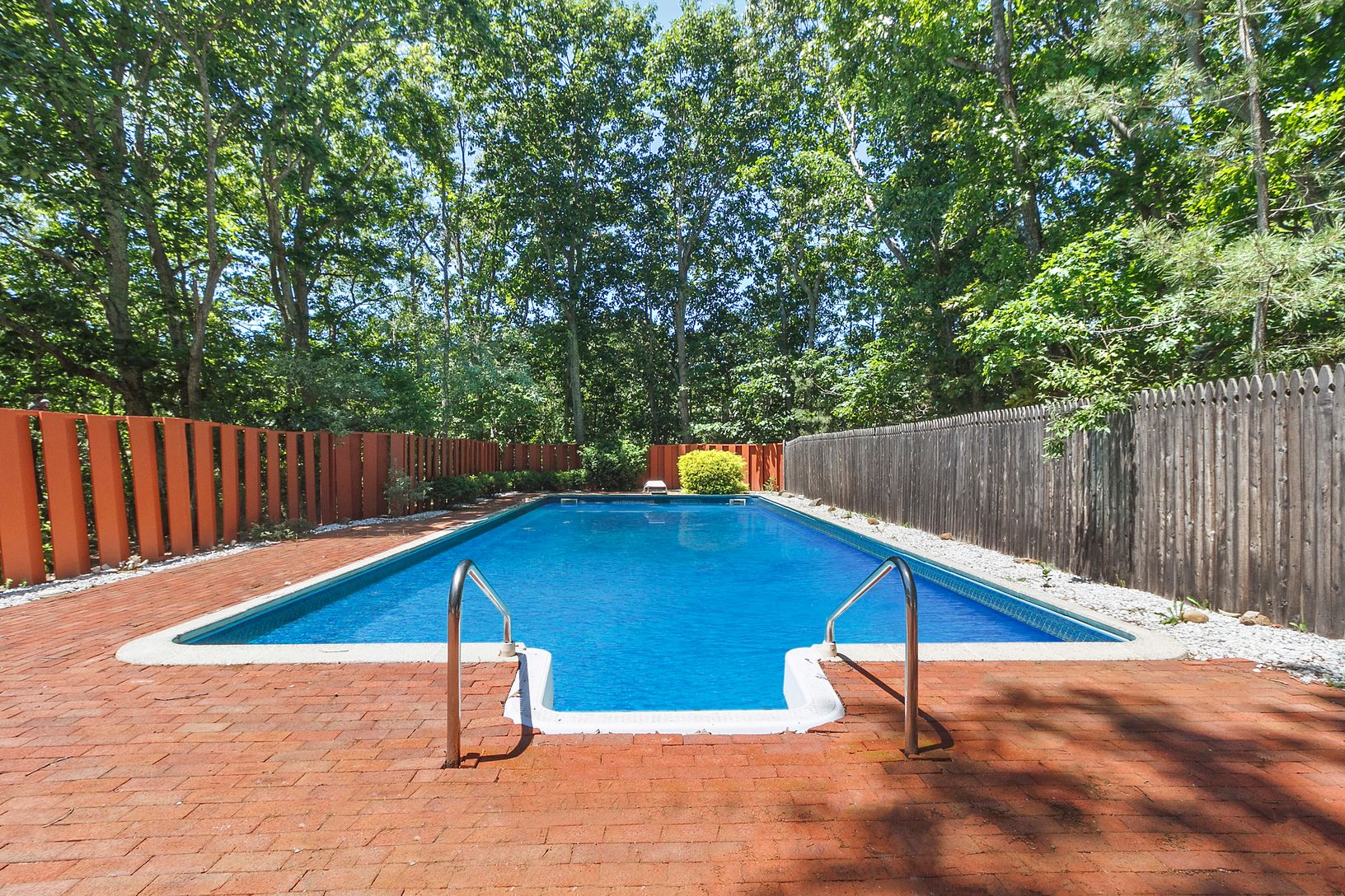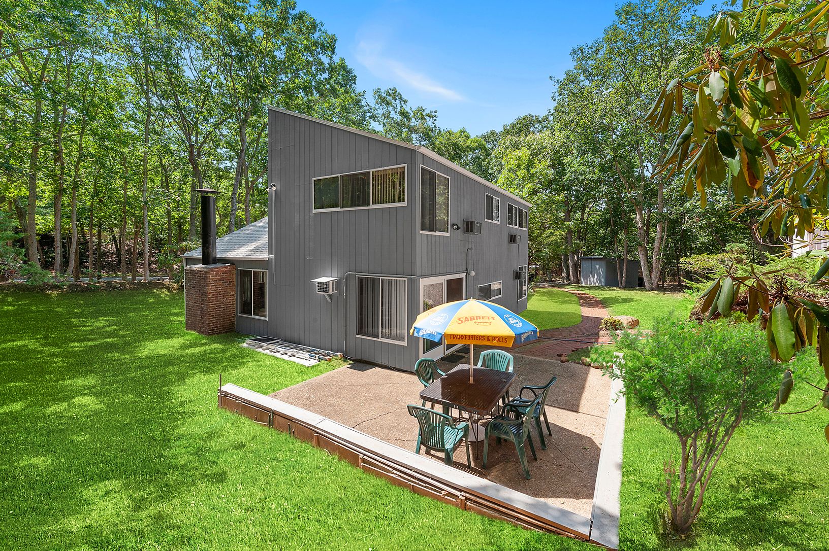 Welcome to the Southampton Acres Community comprising 38 homes all on their own beautifully landscaped private acres. The community enjoys its own private beach less than 1/2 a mile from this new listing. 16 Peconic Hills Dr. is a four bedroom, three bath home boasting a spacious living room with high ceilings filled with natural light and an eat-in recently renovated kitchen. Private backyard with a patio, lovely 20 x 48 pool and outdoor show