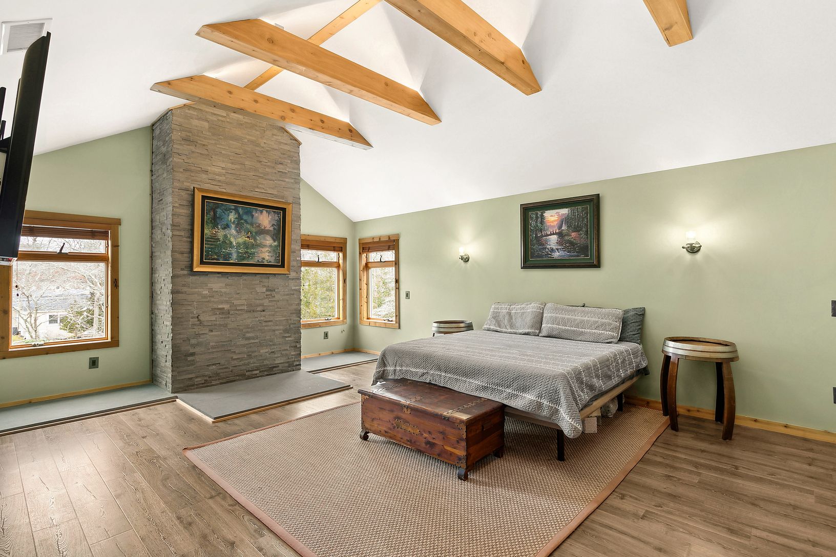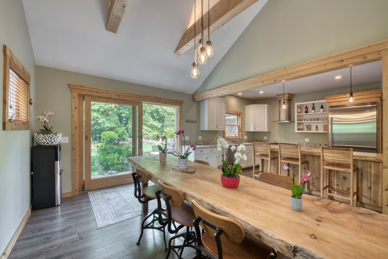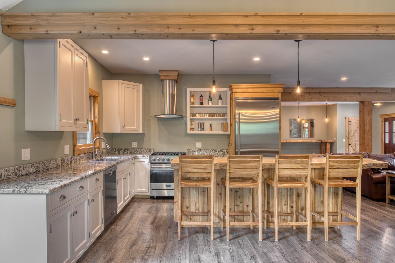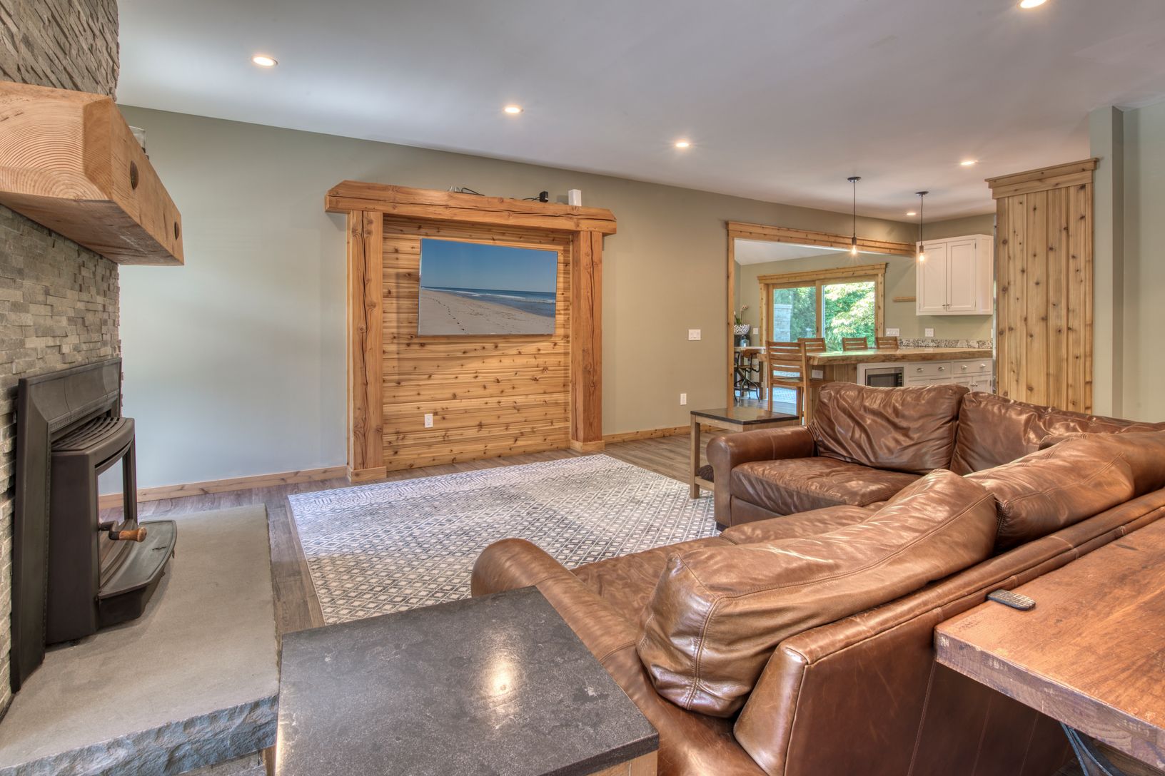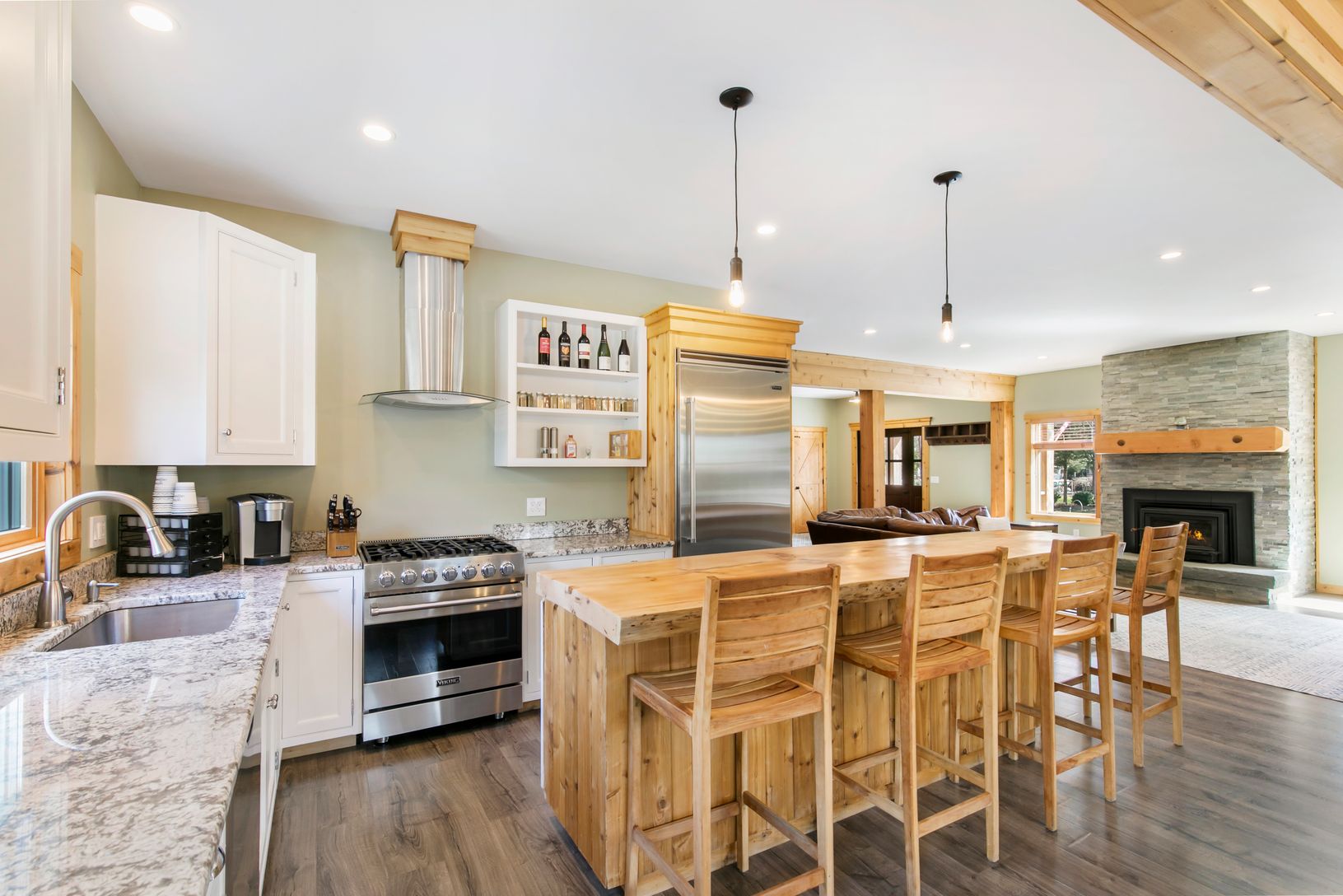 The highly sought after community of Clearwater Beach is where you will find this charming 2700 square foot home with an oversized foyer and a great room featuring a spacious living area with a cozy wood-burning stove. The first floor unveils an open-concept kitchen, with a live edge pine slab island that comfortably accommodates four dining stools making quick dining a breeze. The kitchen has a high-end suite of appliances, including a Viking
