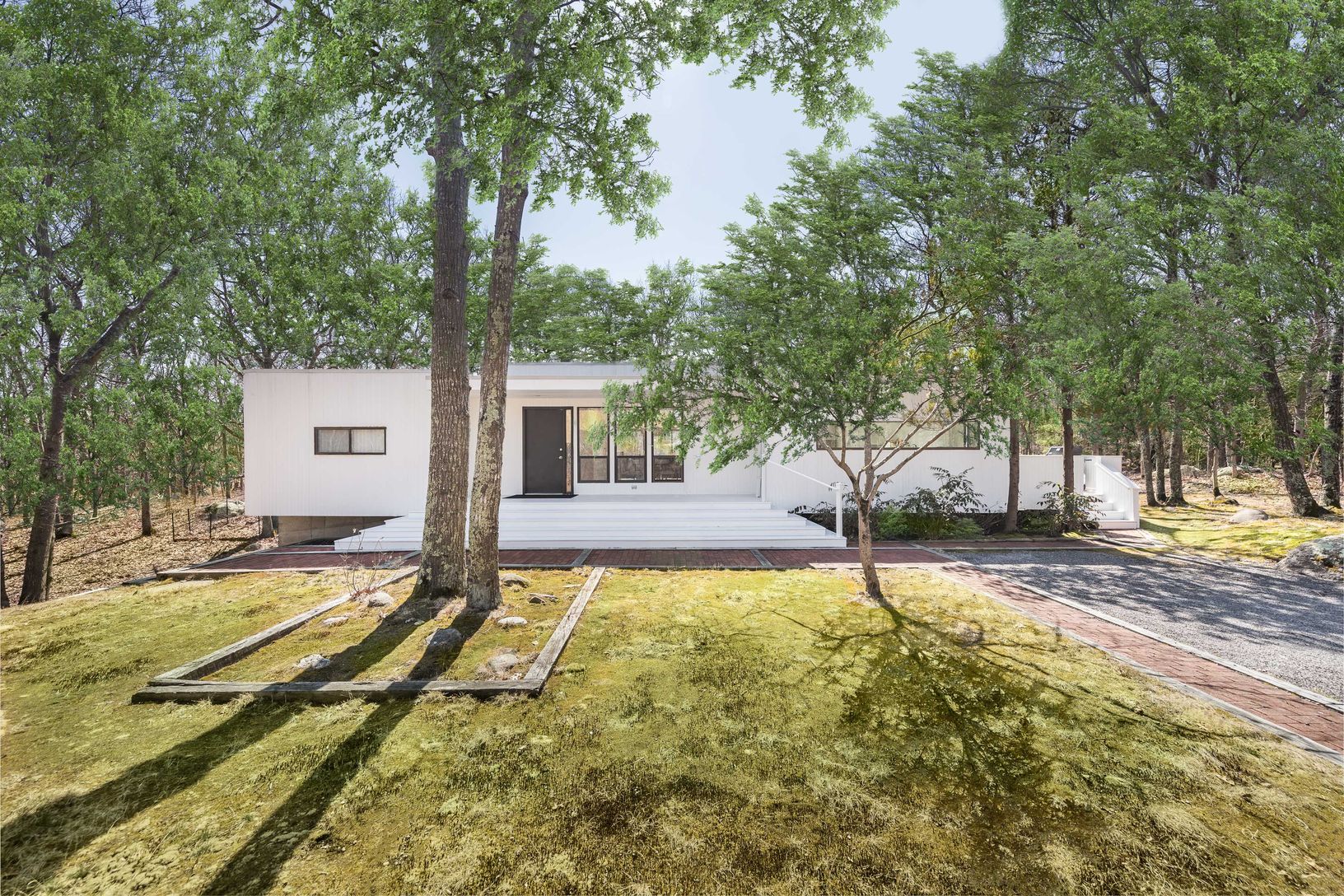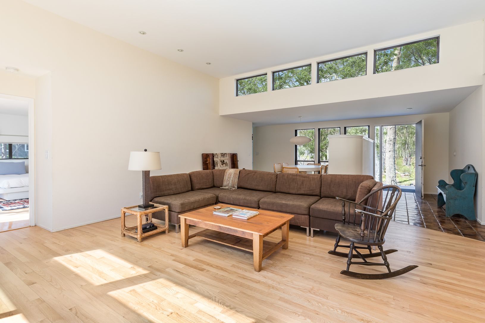 Immaculate and fantastically maintained 3 bedroom, 2 bathroom one-level contemporary on scenic Rivers Road just north of East Hampton village. Featuring an open layout, the living space is flooded with light and showcases high ceilings, a working fireplace and a wall of glass sliders. The bright and clean kitchen tucked off the dining area offers plenty of storage and workspace. The spacious en-suite master features access to it's own outdoor