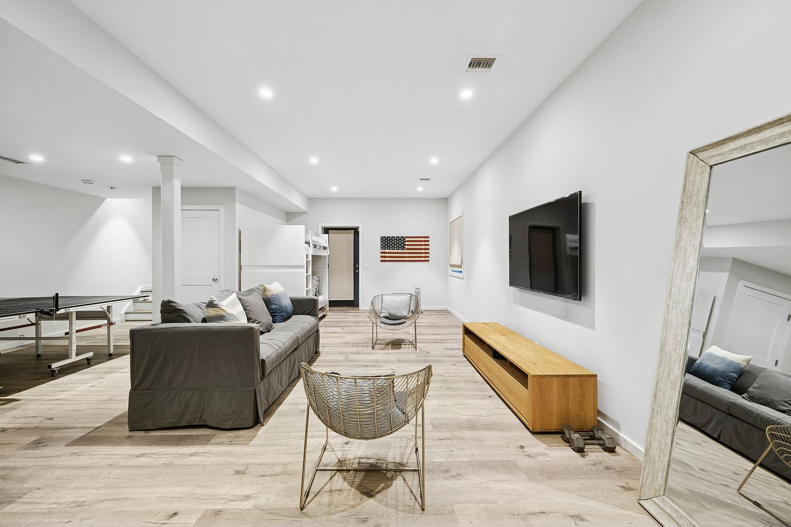 This beautifully designed home features 3 bedrooms and 3.5 bathrooms, thoughtfully laid out for both comfort and entertaining. The main level offers an open-concept kitchen, living, and dining area, complemented by a convenient half bath-perfect for hosting guests. The second floor includes a spacious primary suite, two guest bedrooms, and a full bathroom. The lower level features a generous recreation room with a full bathroom, ideal for visi