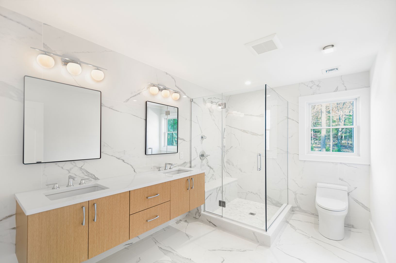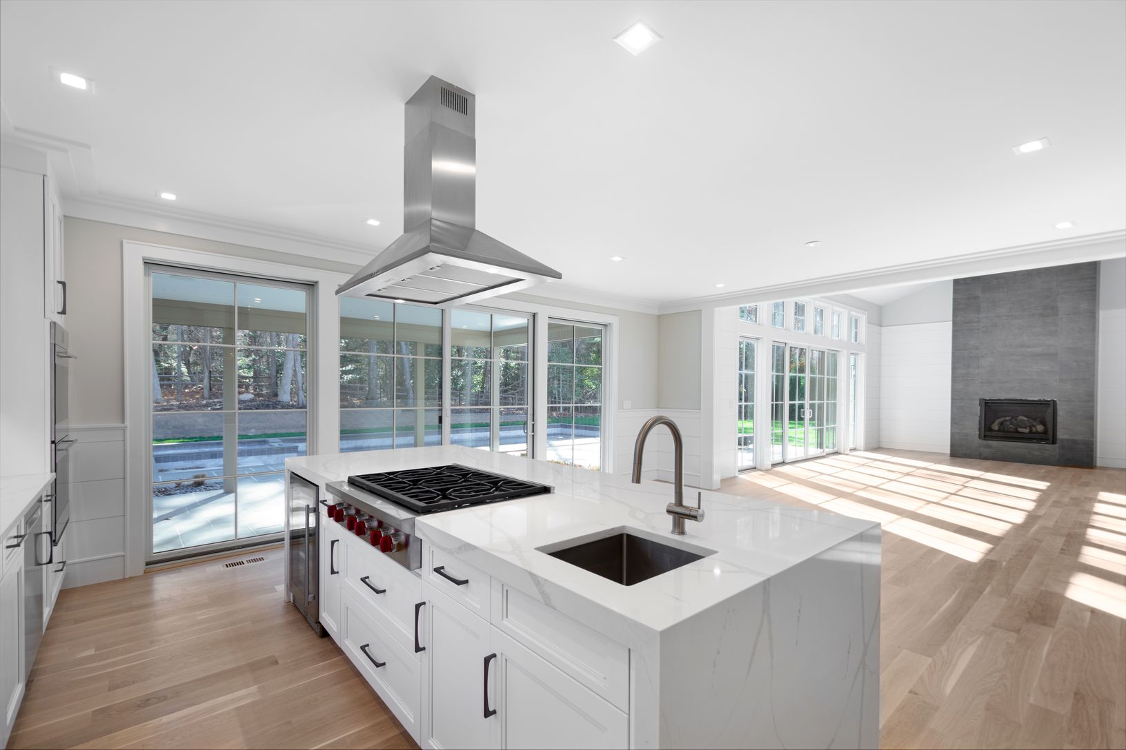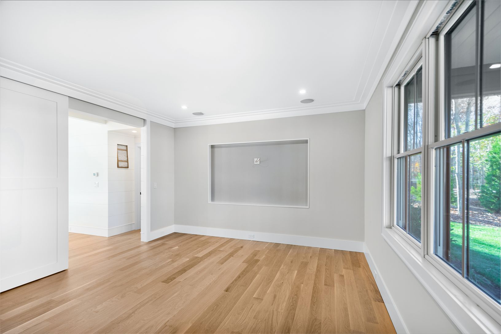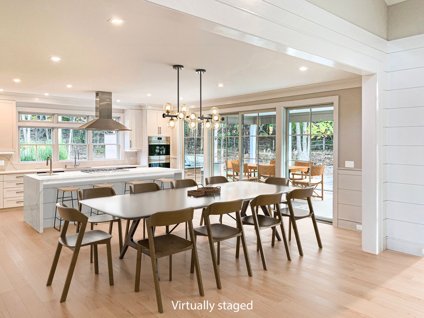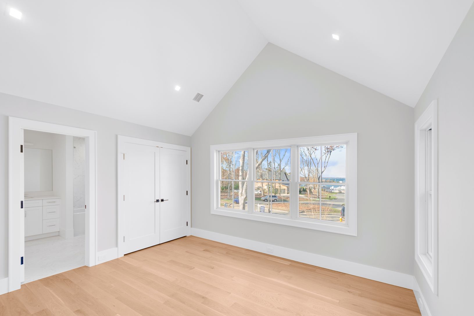 Enjoy glistening water views of the Mill Creek Marina and Noyack Bay from the elevated front deck of this exceptional new residence, one of the final three under construction at The Preserve, Sag Harbor's newest luxury home community. The stunning 6,776 sq. ft. interior on three levels, offers 7 bedrooms and 8 baths - 5 en-suite, 1 full and 2 half-baths - including a fully finished lower level with walk-out access to the beautifully landscaped