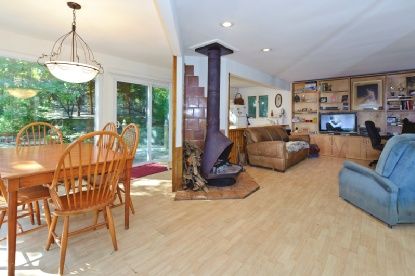 Three bedroom, two bath contemporary at "East Hampton Landings" with deeded boat slip. Open living room, dining area and kitchen. Pond with waterfall. Expansive decks for entertaining. Central vacuum, Air Conditioning, Sprinkler system. All new windows.