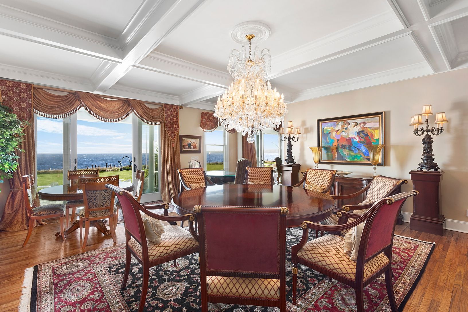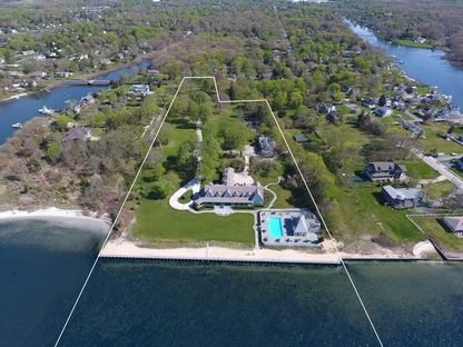 Spectacular 10,000 Sqft 8 Acre Bayfront Estate and former summer residence of Imelda and Ferdinand Marcos , offering 425 Ft Of Water Frontage overlooking Moriches Bay with Private Beach! A True Entertainers and Boaters Paradise with unlimited Panoramic Views And Wide Open Bay And Ocean Access . Summer like no other with the Main House that offers 14 Beds, 17.5 Baths, and features Multiple indoor and outdoor Entertaining Spaces, along with a