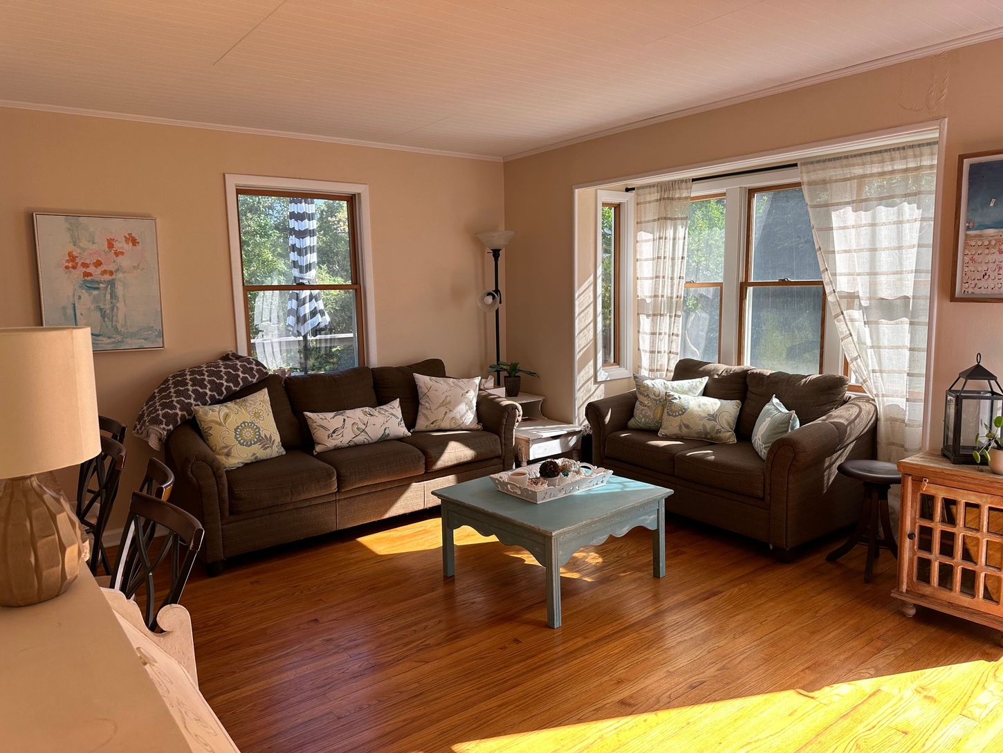 This adorable two-bedroom, one bath cottage is the perfect summer getaway spot. With bunk beds with trundle pull out there is plenty of sleeping space. Nice big yard with deck and outdoor shower plus for pit in yard. Easy summer living in Montauk.
