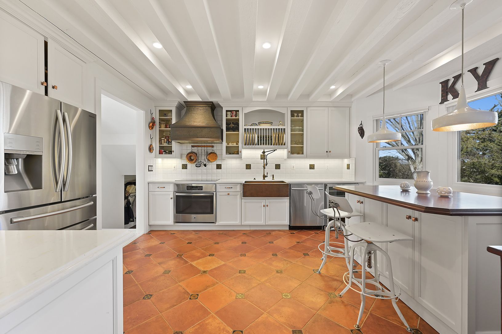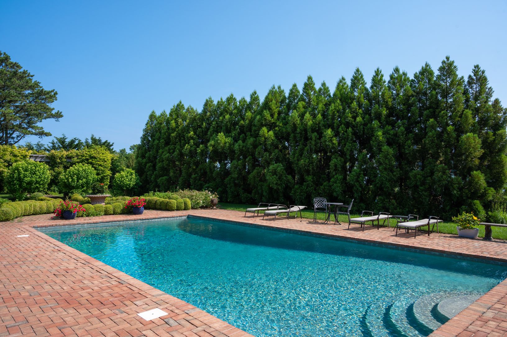 Fabulous views of this two acre property from every window. This Immaculate home has been renovated top to bottom with care given to every detail. Perched high on a hill with rolling lawns in front and a large deck with south facing pool with bay and ocean views. French doors the length of the beautiful living room with fireplace and dining area allow the outside in. The lovely kitchen has a large window for you to gaze at the expansive lawn a