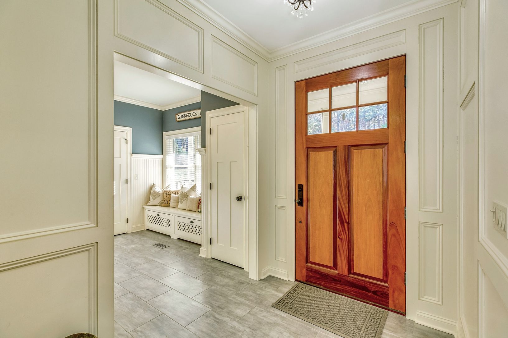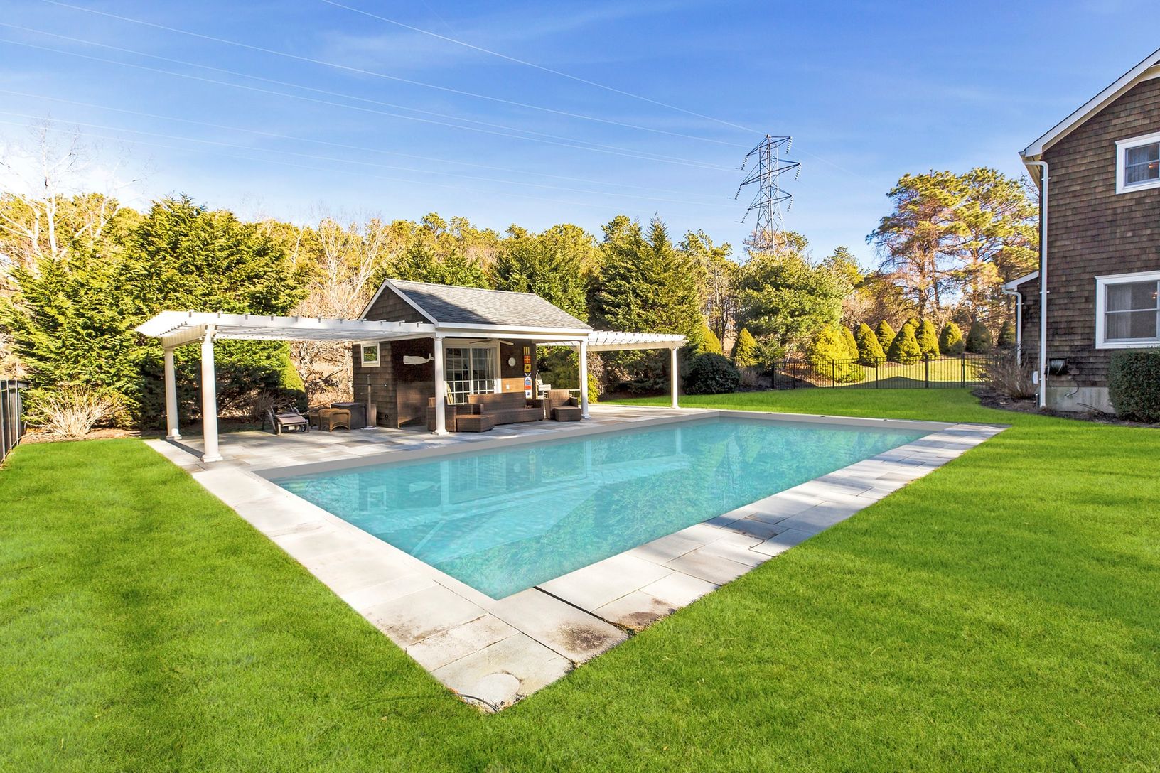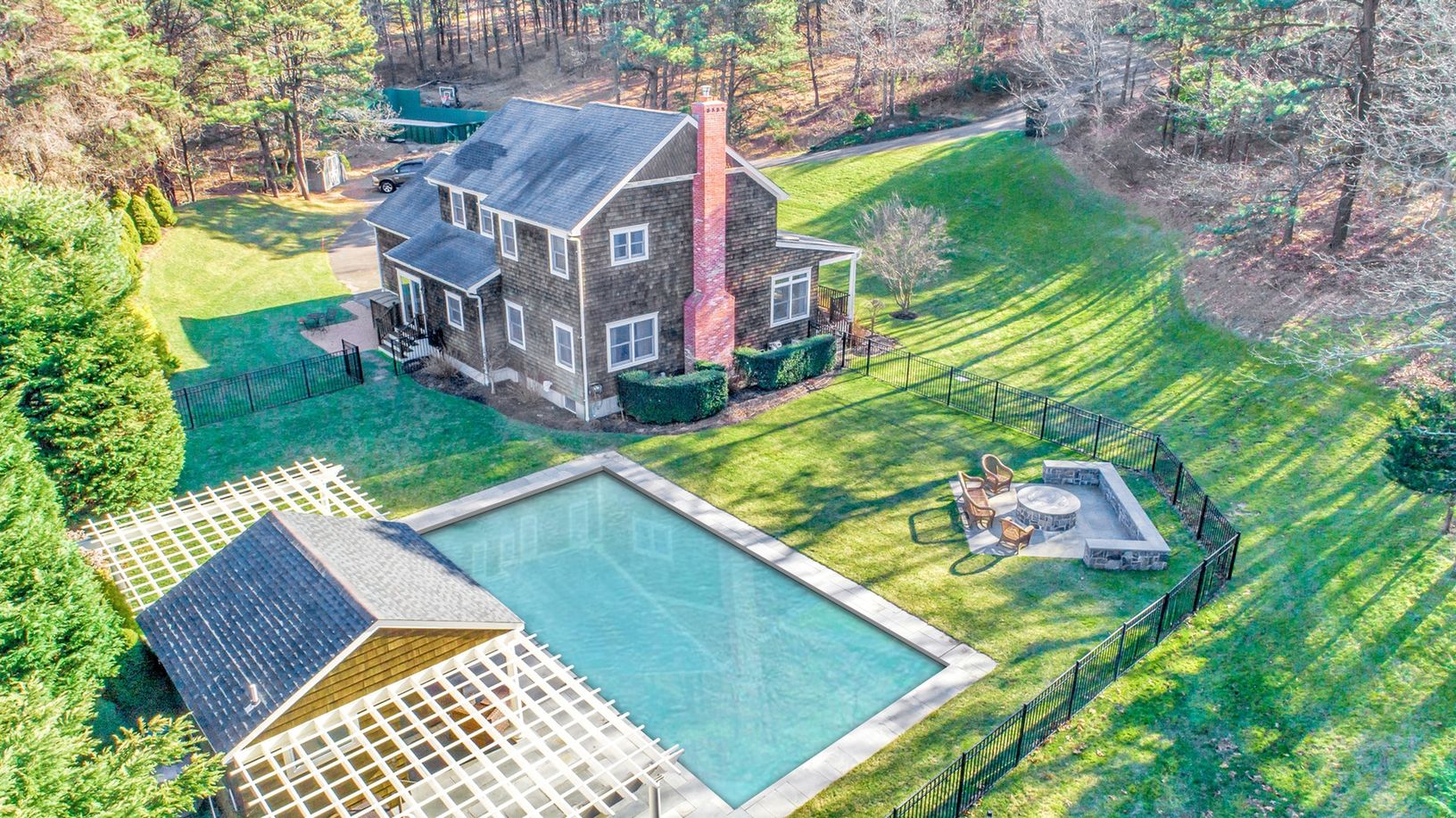 Serene and lovely home set on just shy of three acres. Enter the long private drive for the ultimate in seclusion. Beautifully landscaped with charming private patio and pool area with outdoor shower and fire pit. Home boasts 2,500 square feet with features that include chef's kitchen, formal dining room, spacious living room with wood burning fireplace, immense mud room, laundry room, half bath. Upper level has master suite with shabby ch
