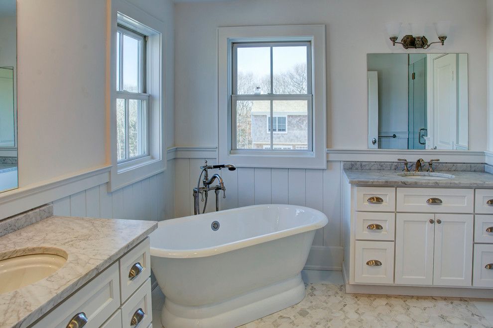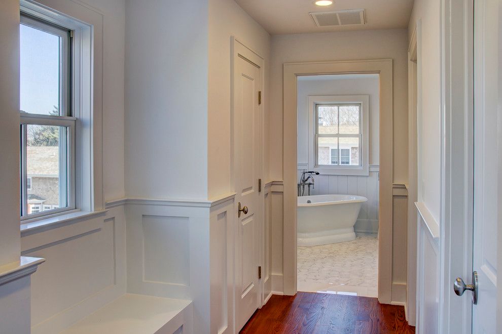 One of six new distinctive homes from Master Builders Villadom Custom Homes at the Lighthouse Landing building project in historic Sag Harbor Village, this new construction is a 3,059 square foot traditional cedar shake with a cedar shingled roof. Enter the first floor of this gracious home by way of a foyer into the living room. Continue to the den with fireplace, dining room, powder room and designer kitchen which opens to a rich mahogany