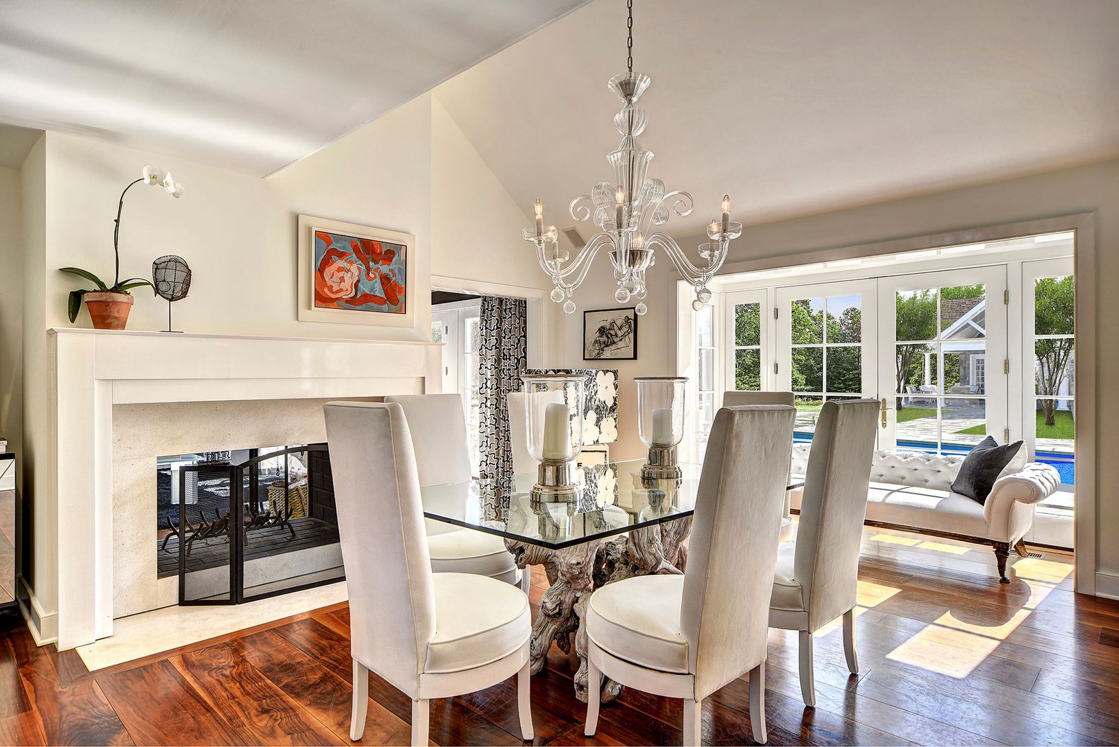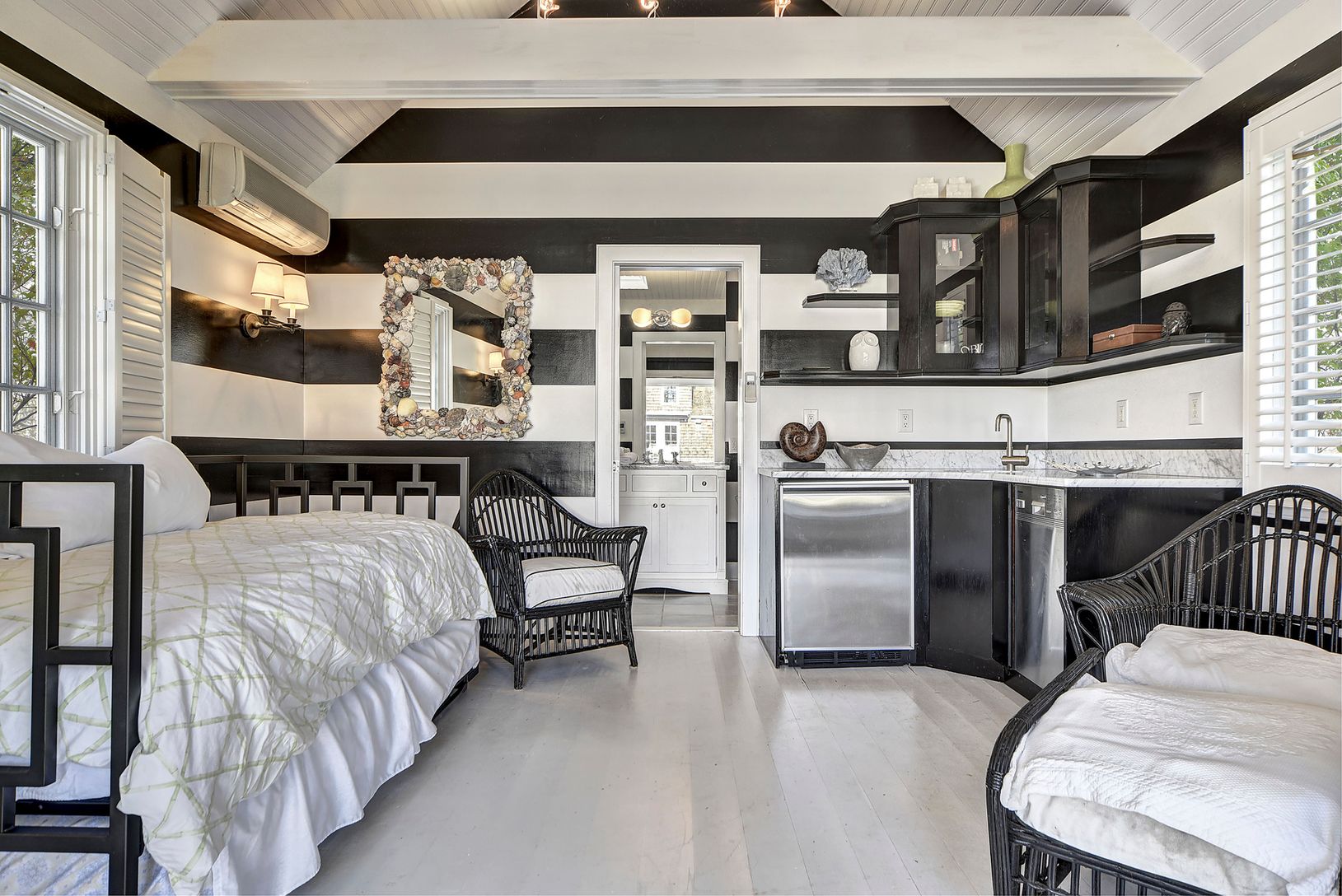 Seconds from Mecox Bay Yacht Club, this chic shingled traditional renovated home enjoys privacy and gardens, with a heated gunite pool and pool house amidst spacious lawn. The house with the pool house includes 5 bedrooms and 4 baths, great room, formal dining and a gourmet eat-in kitchen. Light-filled spaces flow throughout all the rooms with architectural details about. Beautifully situated on the corner of stunning star-studded Bay Lane and