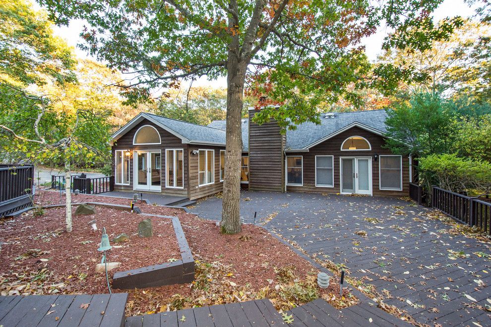 Spacious contemporary home nestled on a large corner lot and located in one of Hampton Bays most sought after communities. This home offers a formal dining room, living room with fireplace, newly renovated eat-in tiled kitchen, den with Anderson French doors that lead to decks with gazebo, fish pond and swimming pool plus specimen trees and beautiful plantings. Master bedroom plus two guest bedrooms and 3 new renovated bathrooms, speaker syst