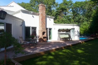 This casual contemporary home is located on coveted Bull Path in the NW Woods of East Hampton. Sited on 1.6+/- acres and abutting a reserve, this 2,500 +/- sq. ft. home features an open great room, kitchen, den, formal dining room, four bedrooms and four bathrooms. Outside, an expansive deck surrounds the heated pool and there are two separate patios for lounging and dining. Rental Registration #: 20-1,855.