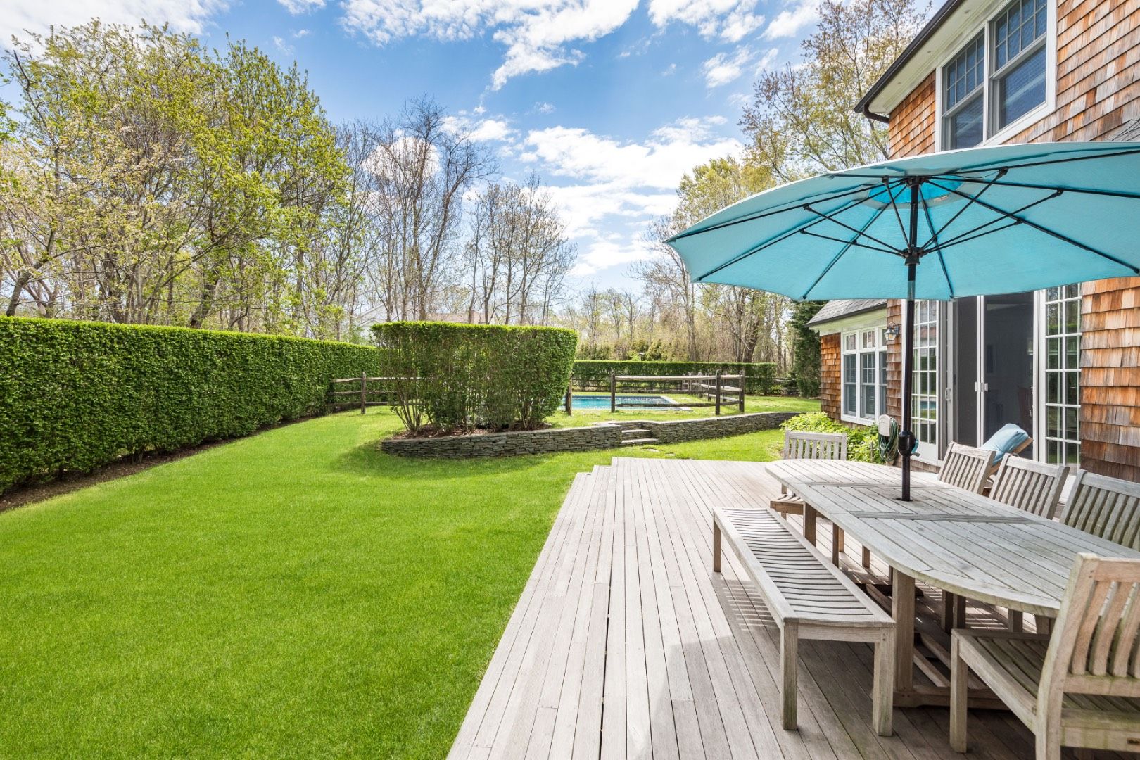 This modern, stunningly designed home minutes to the village of Sag Harbor and seconds to Long Beach is now available for summer rental. This 5-bed, 4.5 baths property is complemented by two gorgeous living spaces, an office / den, and kitchen space, all newly renovated and super stylish. The 20 x 40 heated Gunite pool is fenced in nicely from the lawn area with a stone patio lounging area and surrounded by mature evergreens offering plenty of