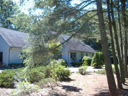 Pristine family friendly 3BR 3 Bath contemporary cape with 1st floor master en suite. On private road, secluded 1.67 acres with deeded Bay beach rights. Convenient to marina, village, transportation.Spacious 2700+/-sq ft floorplan offers room for family and entertaining. Amenities include deck, hot tub, CAC, room for pool or tennis, formal dining room. living room with wood stove, spacious kitchen, unfinished bonus room over garage.