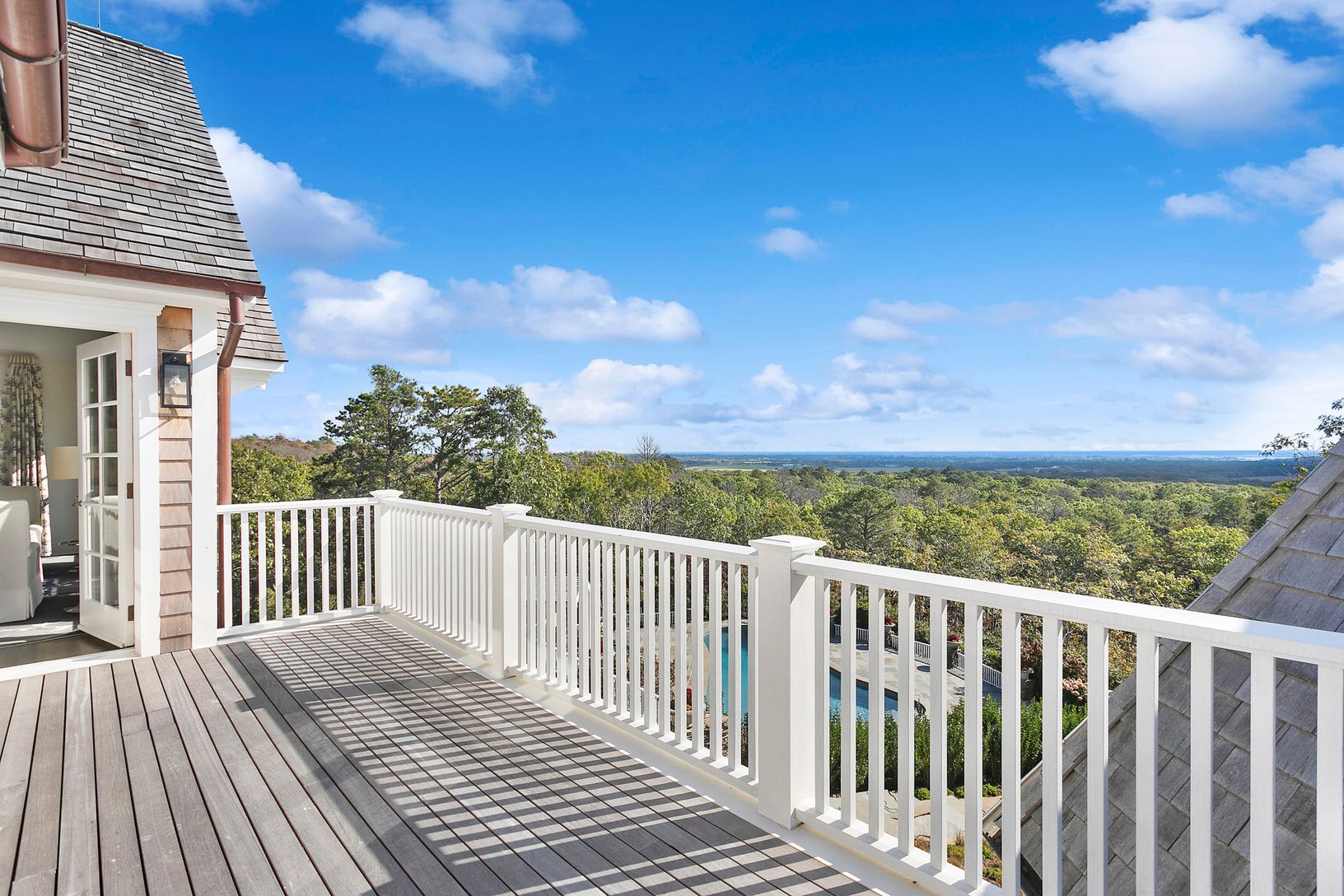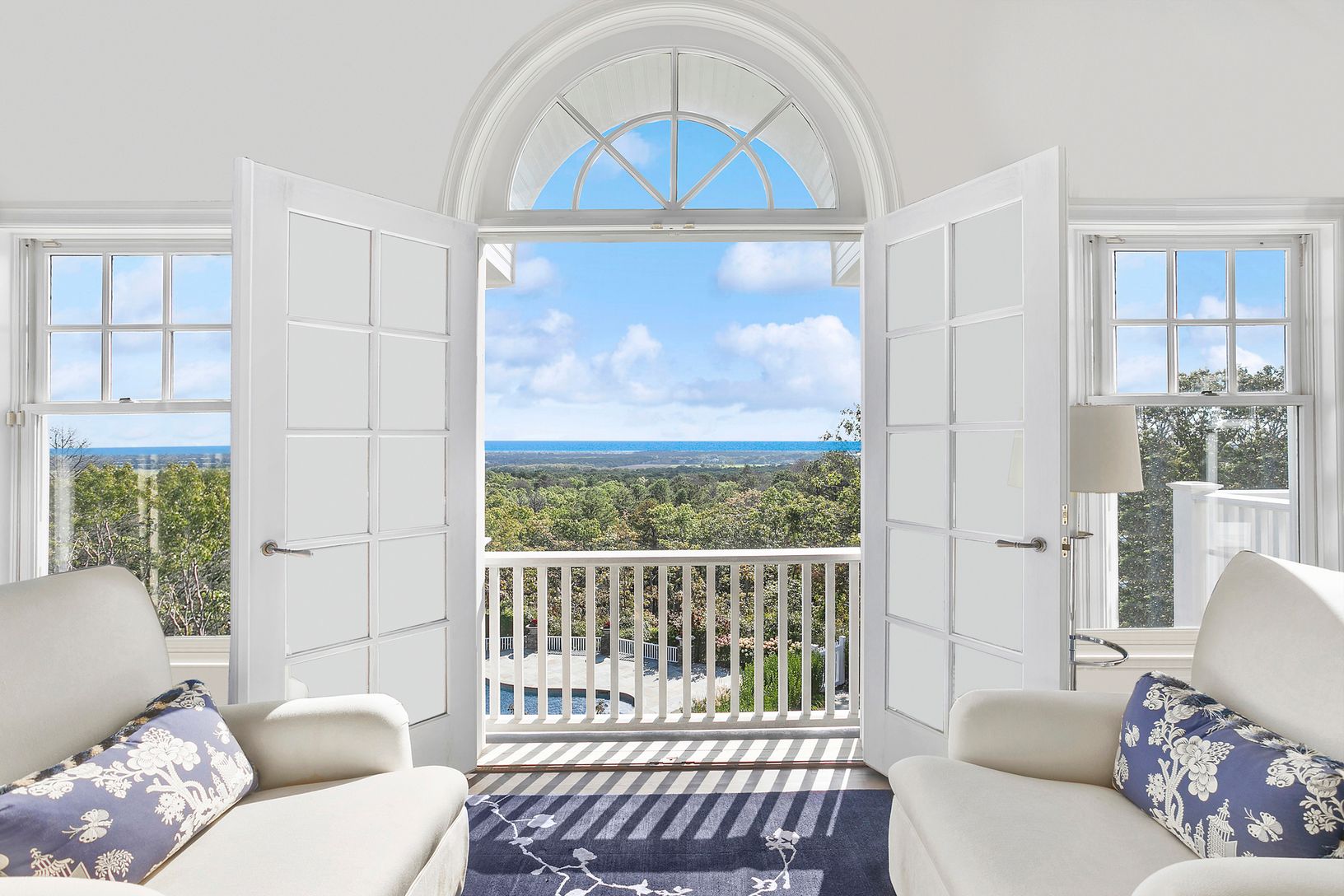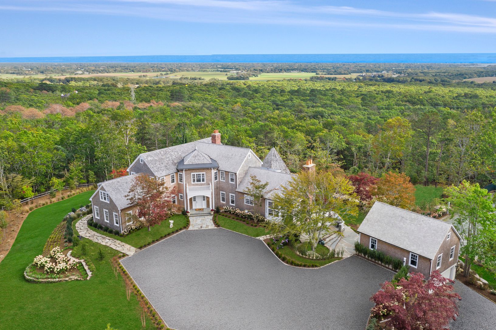 New Exclusive! Call Frank Bodenchak at 917 968-9020 for showings. Originally custom-built by one of Wall Street's most successful financiers, this 8,700+/- sq. ft. compound was built to the highest standards. Thoughtfully renovated in 2021 by its current owner, the offering is a one-of-a-kind property. Perched at one of the highest points in the Hamptons, the home offers panoramic 180-degree, southerly views out to the Atlantic Ocean from ev