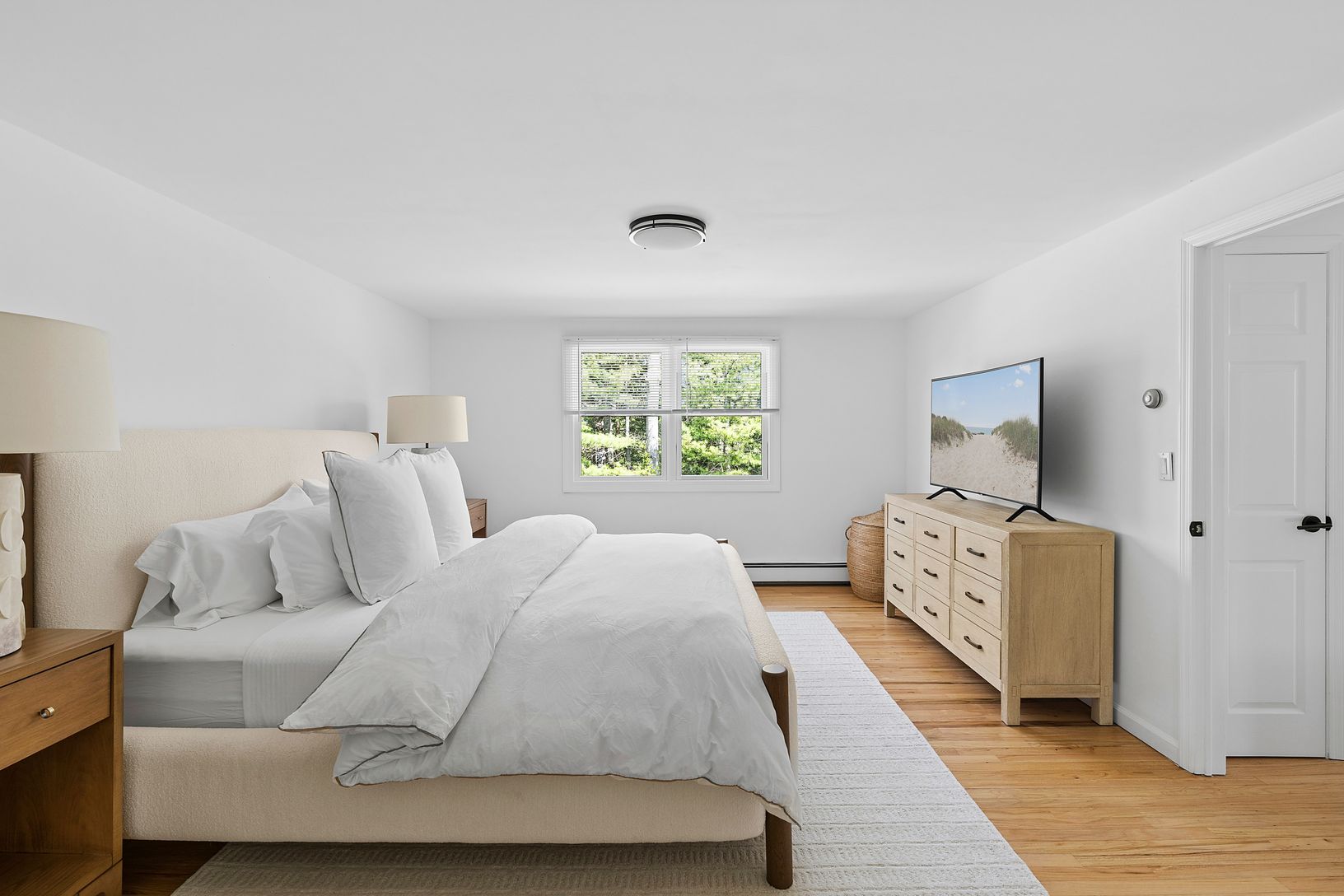 Tucked away behind a natural screen of mature trees, this well-maintained Cape offers a rare sense of privacy and tranquility. Set well off the road on a lush, landscaped parcel, the home presents an excellent opportunity to make it your own. Inside, you'll find three generously sized bedrooms, including a primary suite with a walk-in closet, along with two updated full baths. The layout includes a welcoming living room, a separate dining area