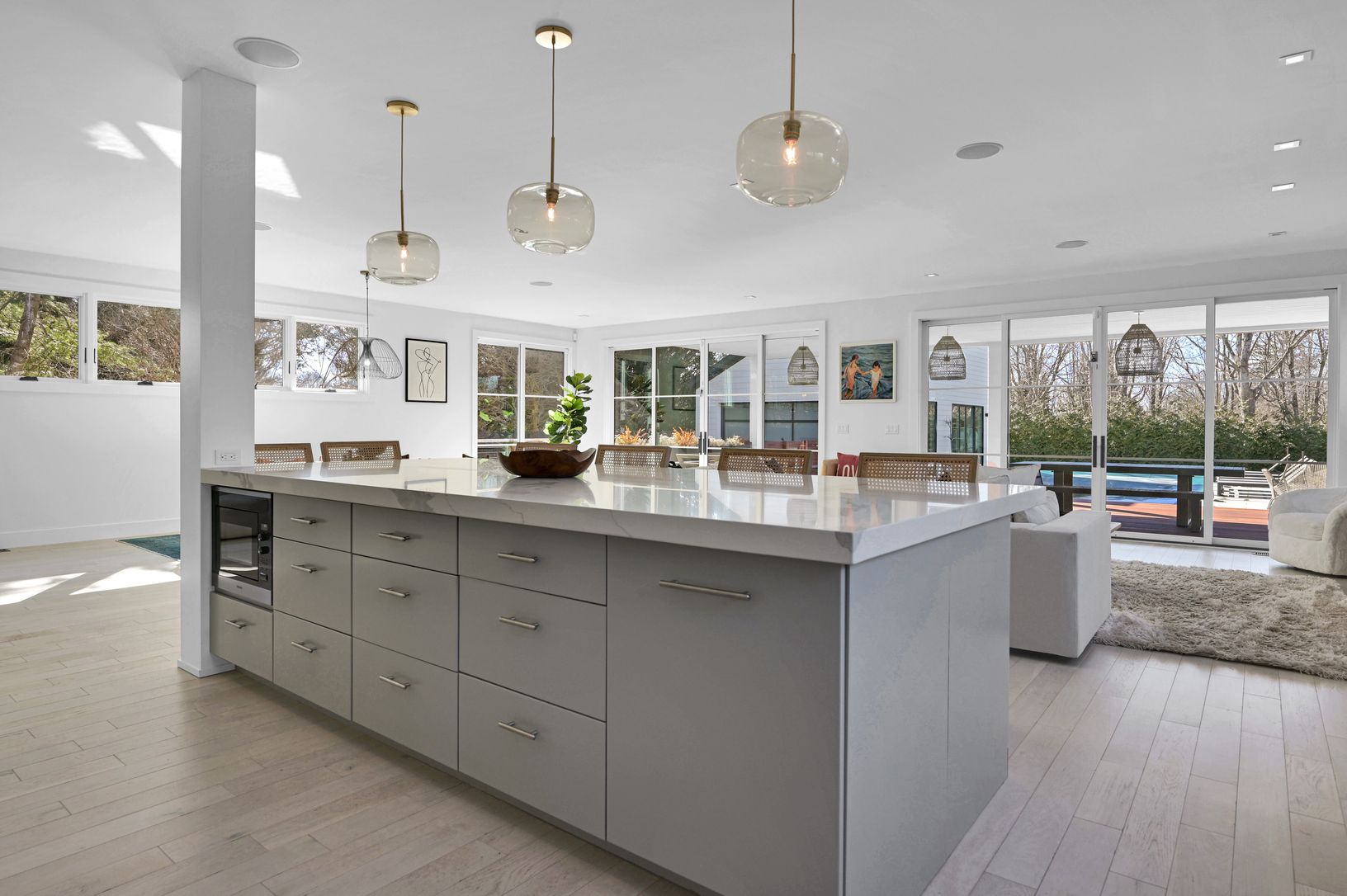 Amazing location, close to Main Street, transportation (train and jitney) and a stone's throw from the famed Bridgehampton ocean beaches. This Modern perfection is comprised of 8 bedrooms and 7 baths. A Magnificent Gunite heated pool with spa, Majestic pool house, finished basement and so much more! The heart of the home, with its beautiful oak wood floors and custom finishes consists of a thoughtfully curated chef's kitchen, dining room and l
