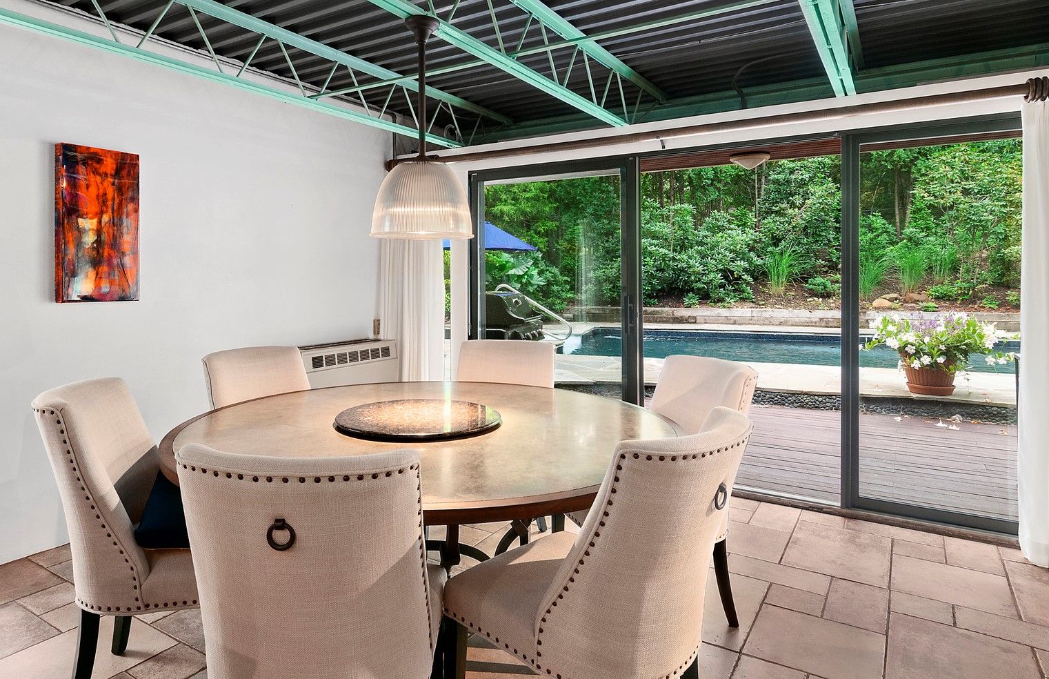 Water Mill. Contemporary with Pool. Approximately 4800 square foot of living space includes five bedrooms and four Baths. Two fireplaces and central air conditioning. Private Heated pool on over two acres.