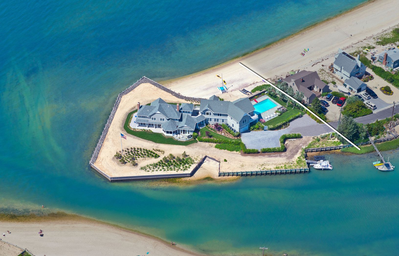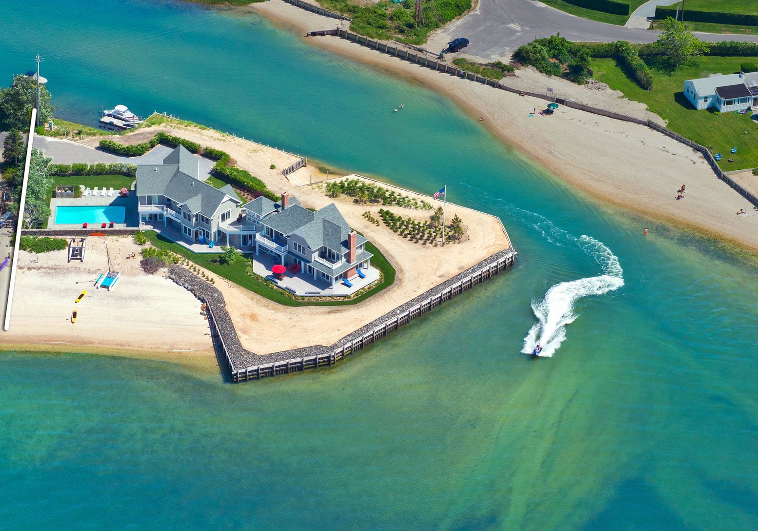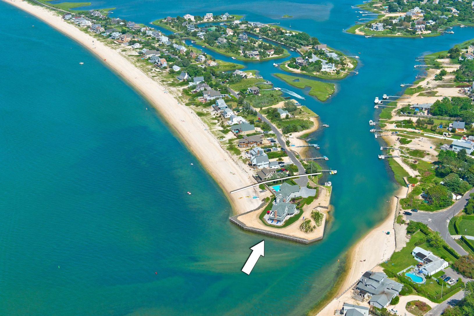 Perfectly situated with 730 +/- ft. of waterfront along a bay front peninsula, this unique property with private dock, waterside heated Gunite pool, and the incredible sandy beach make it the ideal location for every imaginable water sport. If golf is your preference, this property practically adjoins the world class Sebonack Golf Club and is very convenient to Shinnecock Hills Golf Club and the National Golf Links of America. The newly-constr