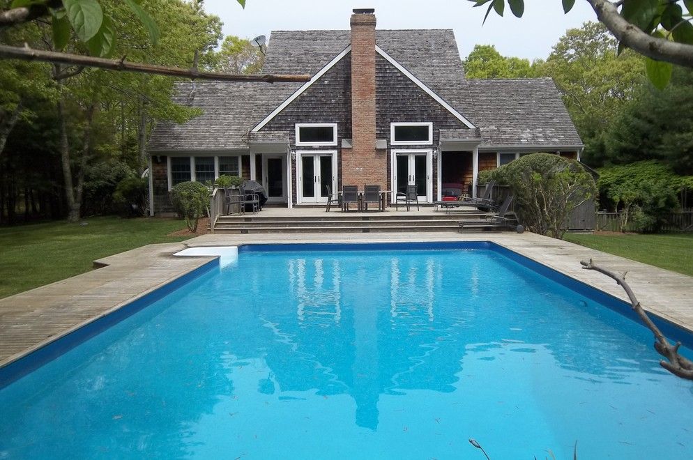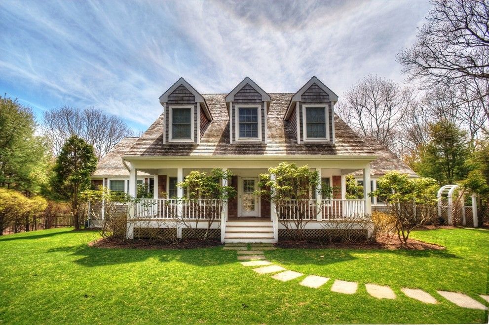 This extremely well-maintained home built by John Pizzo has just been put on the market for sale in East Hampton's Northwest Woods. A big covered porch welcomes you into this light-filled, sunny home, with double-height ceilings in the living room, central air, fireplace, gourmet kitchen with pantry and formal dining room. The first floor hosts a Master bedroom, plus an additional guest suite with 2 en-suite bedrooms upstairs. The lower level