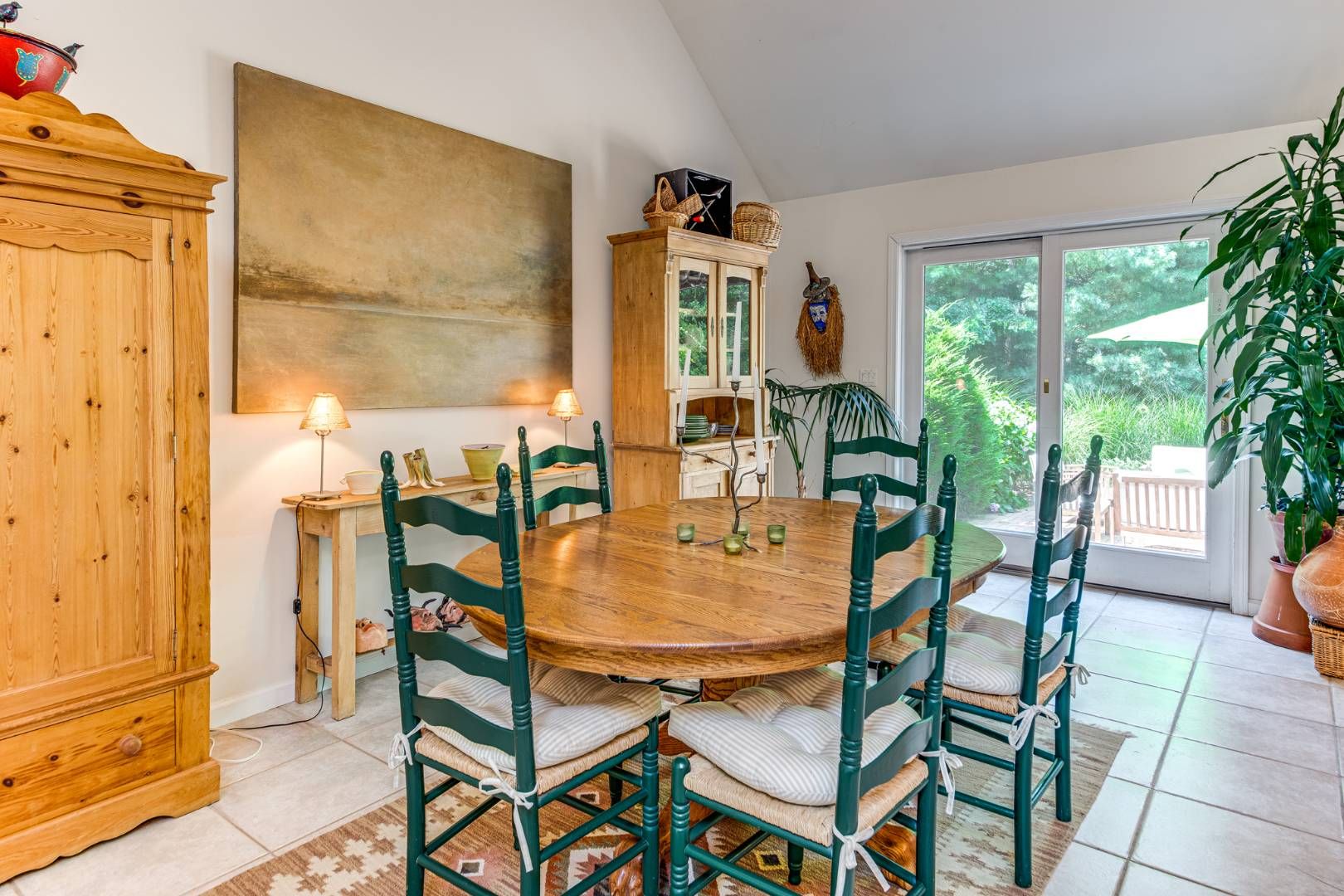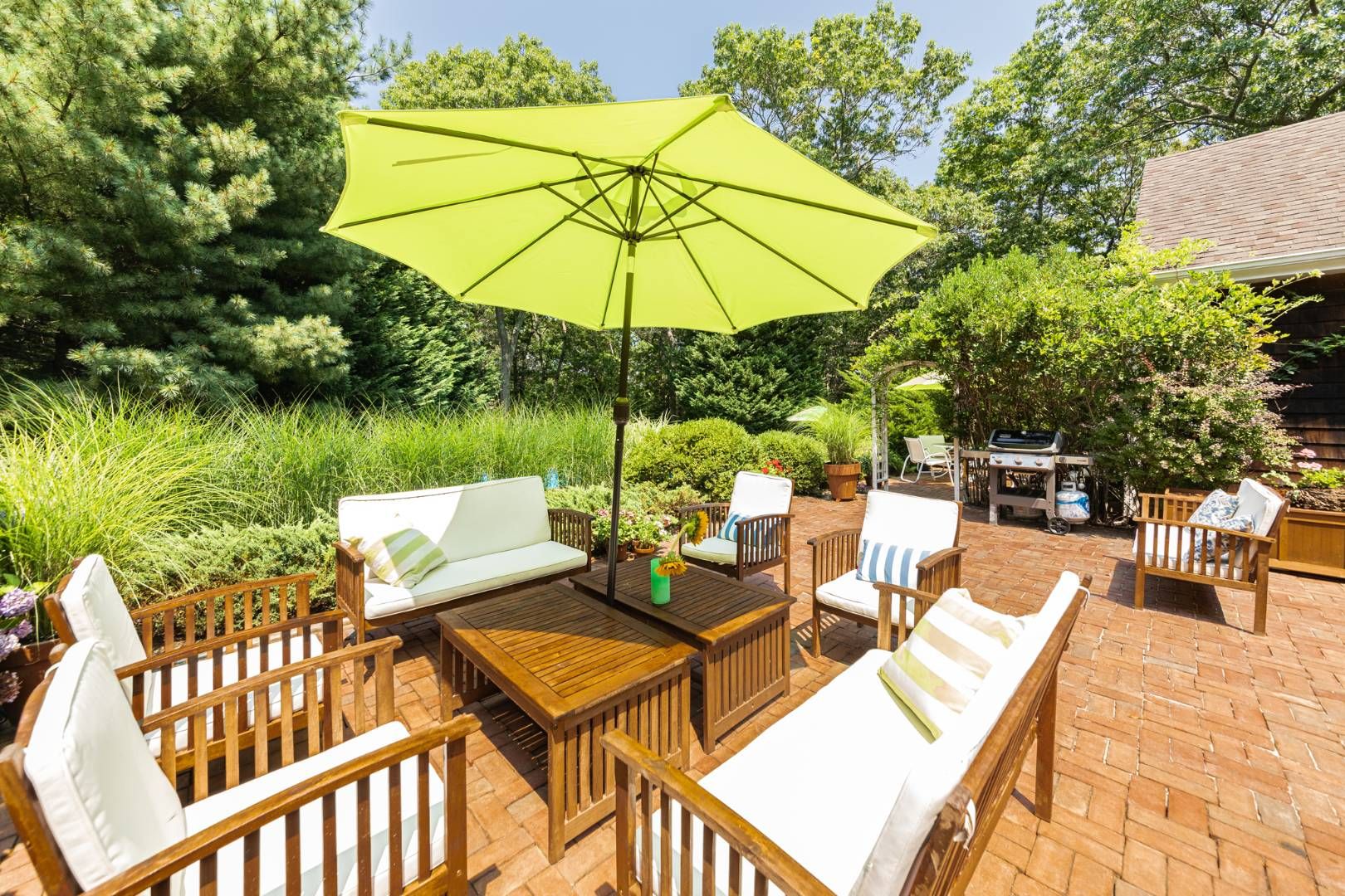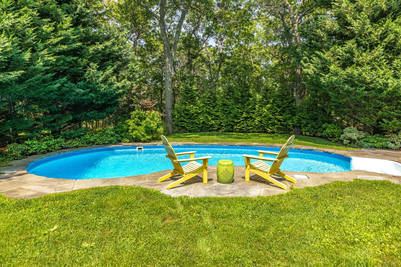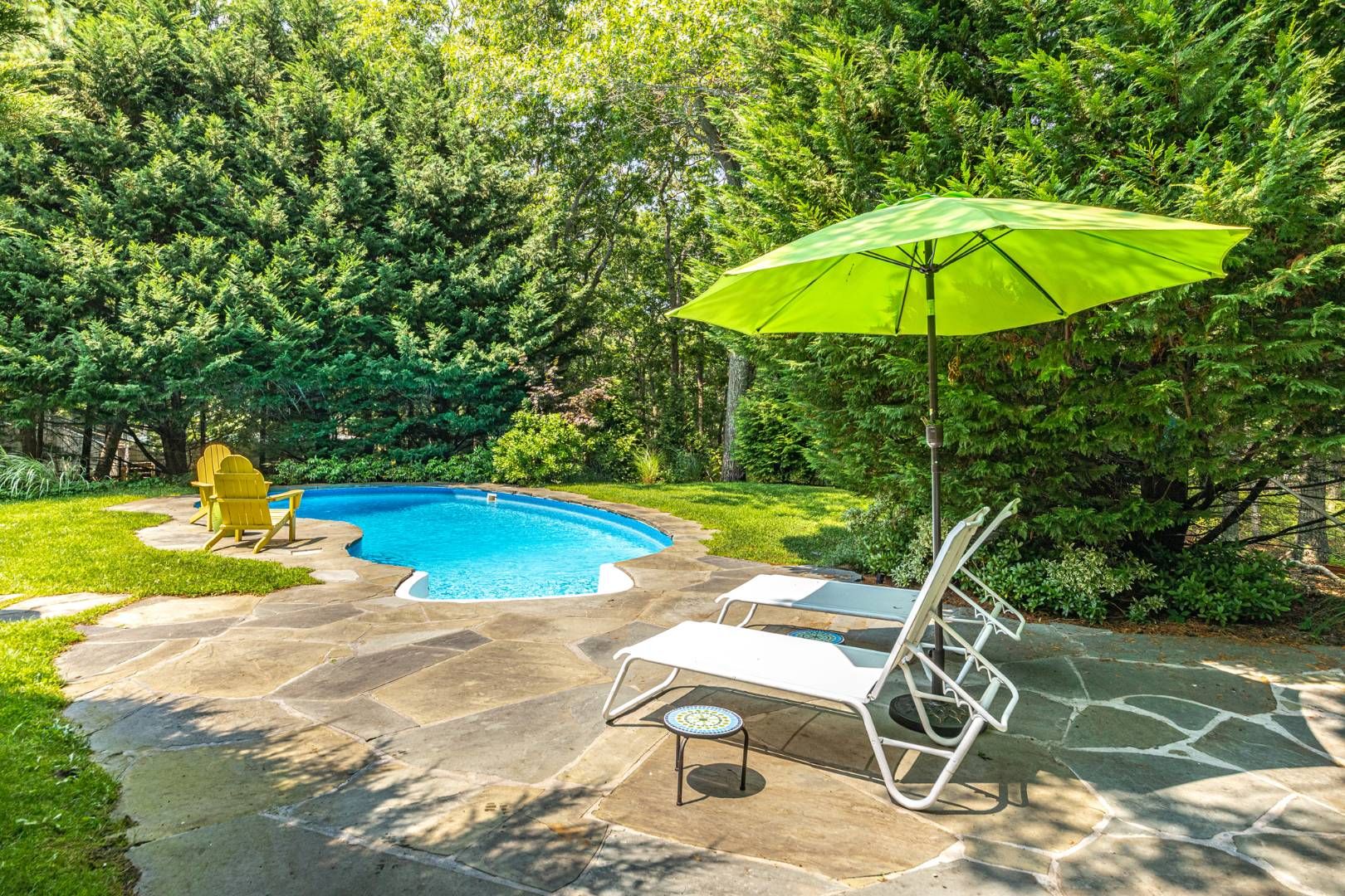 Nestled at the end of a bucolic cul-de-sac in the area of East Hampton long favored by artists and writers, this serene escape is sure to please. Enter the light-filled home to a welcoming great room and large, open kitchen/dining area perfect for entertaining friends and family. The living area with fireplace opens to the lushly landscaped private backyard with beautiful free-form pool. Relax and enjoy al fresco dining on the beautiful patio.
