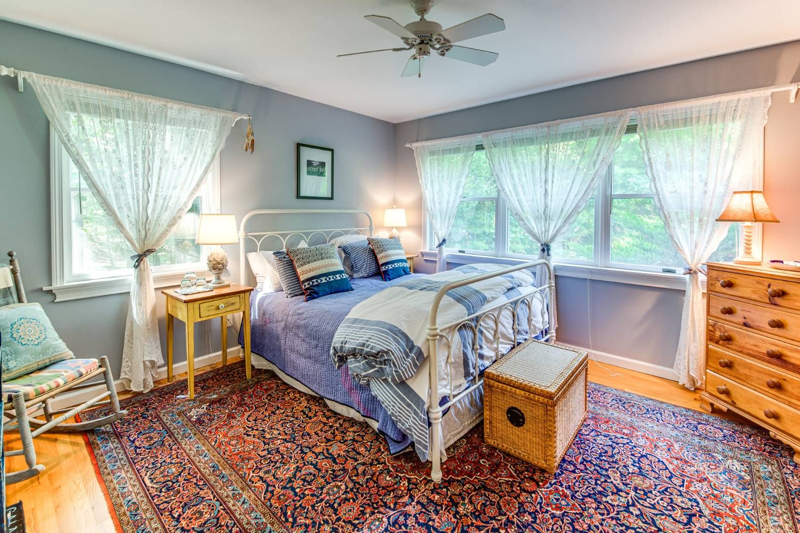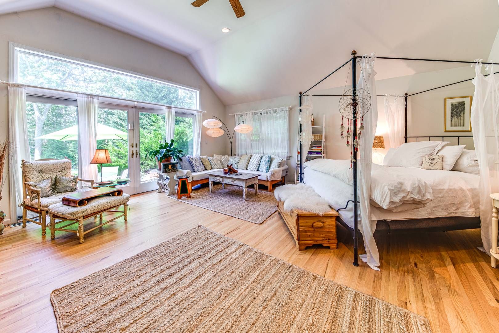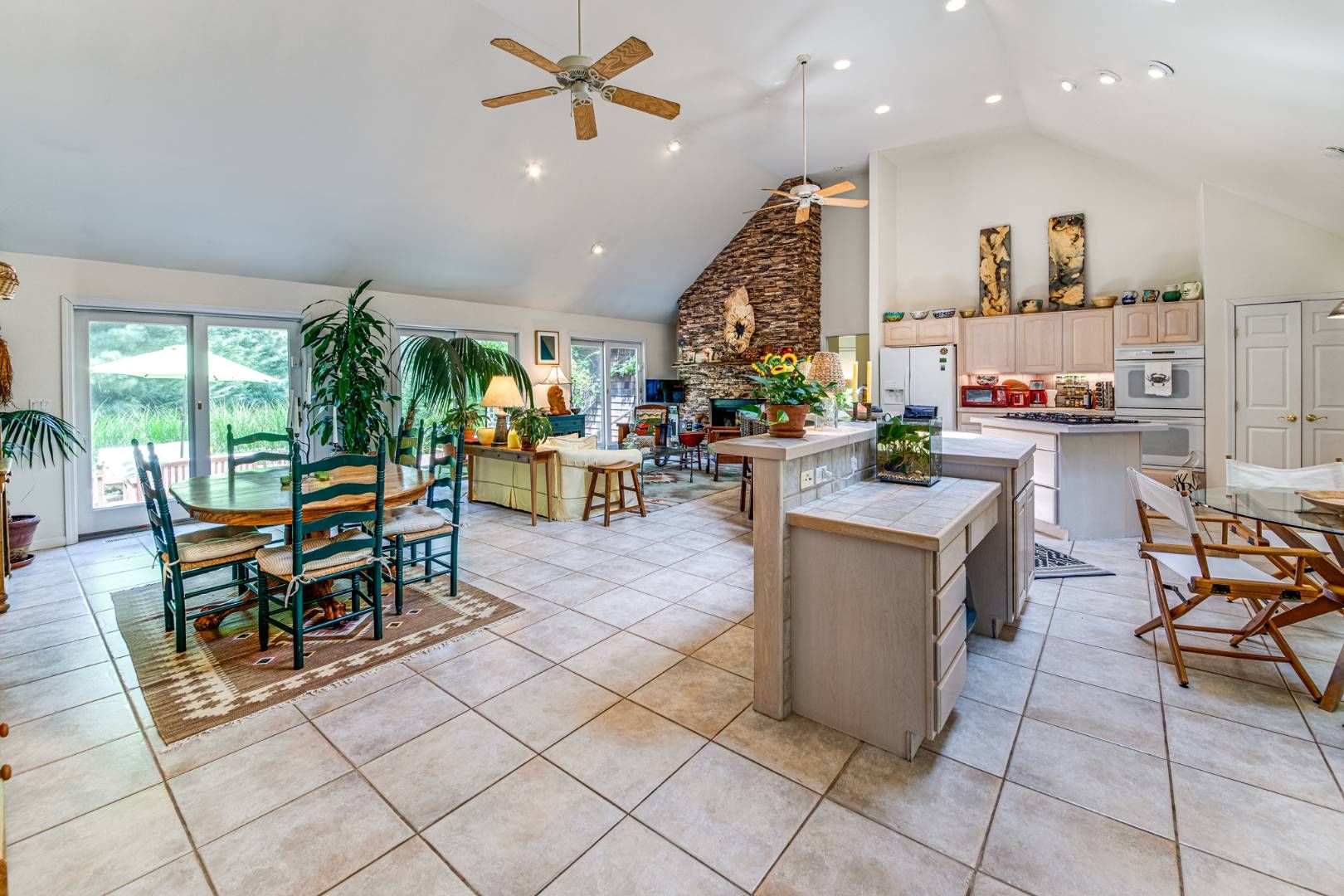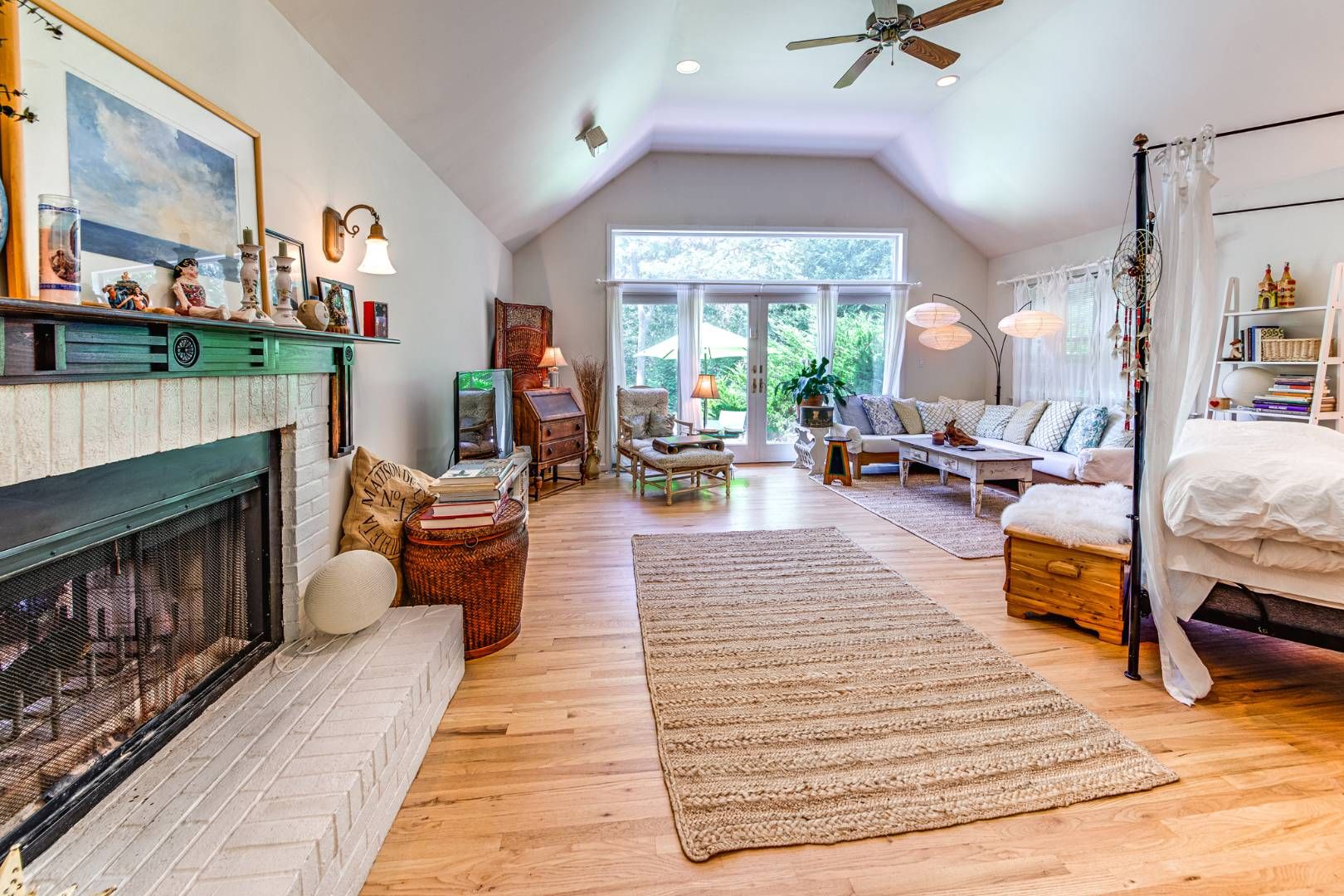 Nestled at the end of a bucolic cul-de-sac in the area of East Hampton long favored by artists and writers, this serene escape is sure to please. Enter the light-filled home to a welcoming great room and large, open kitchen/dining area perfect for entertaining friends and family. The living area with fireplace opens to the lushly landscaped private backyard with beautiful free-form pool. Relax and enjoy al fresco dining on the beautiful patio.