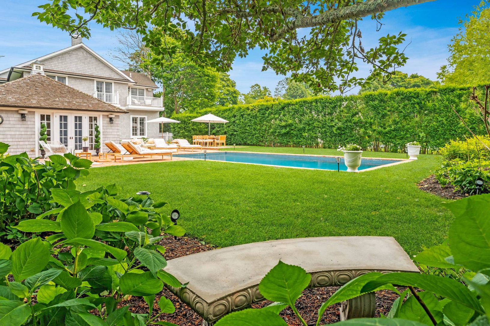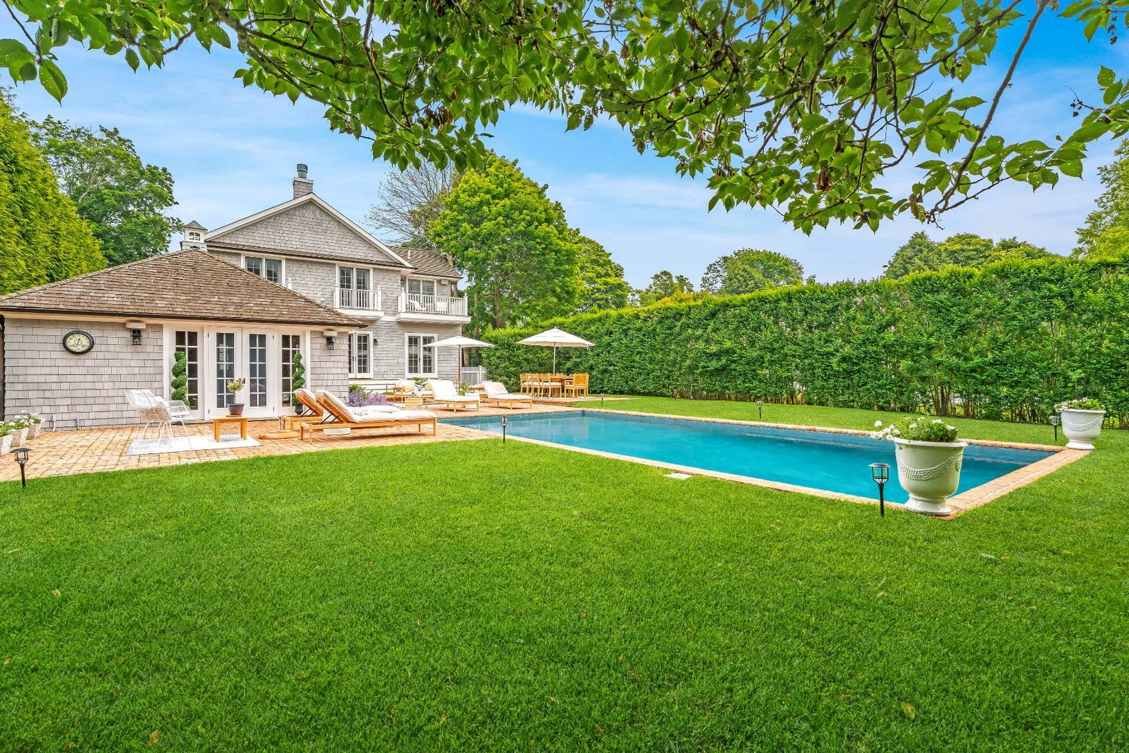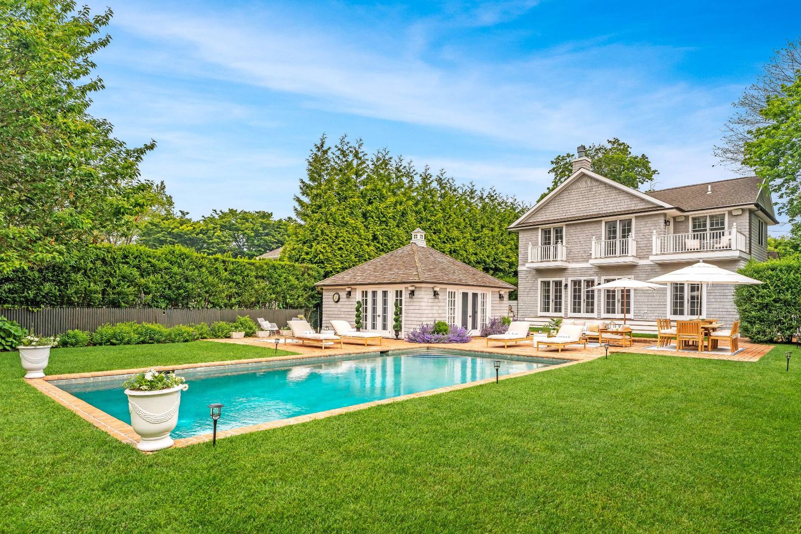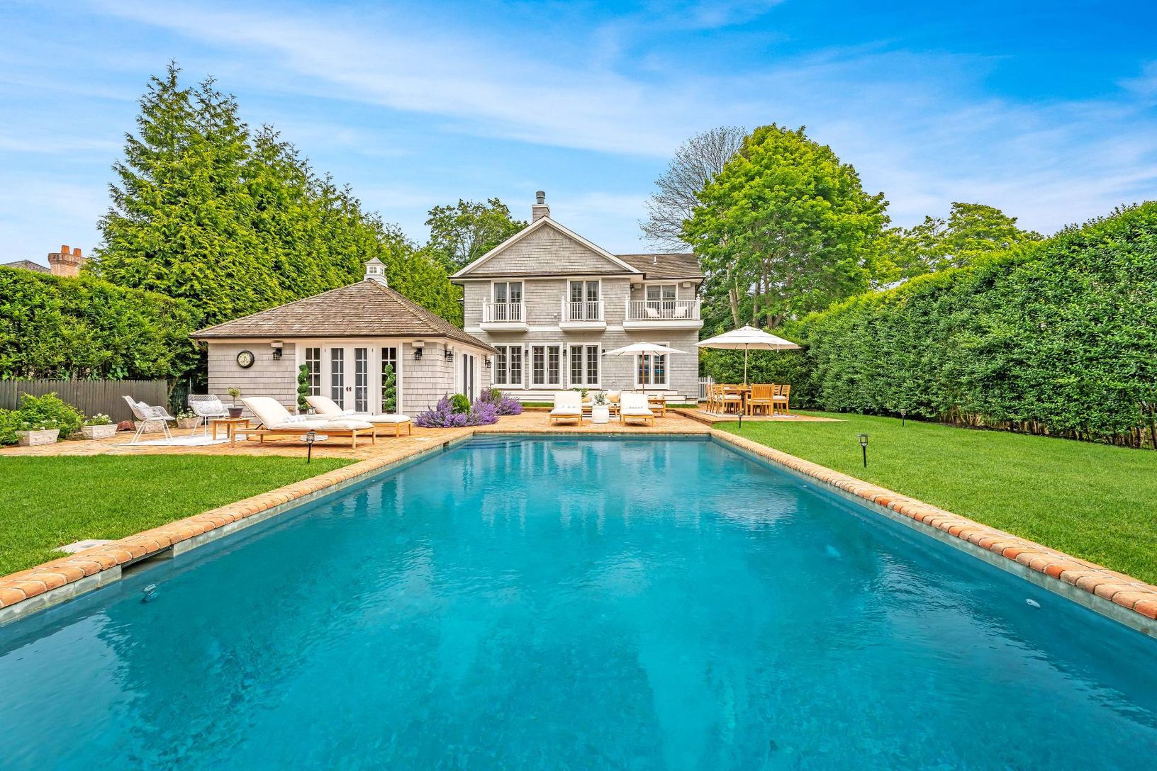 Situated on a picturesque tree-lined street with quintessential village homes, this Hamptons traditional home is newly furnished for your enjoyment and comfort with designs from Ralph Lauren and Design Within Reach. Step inside this stylish, sophisticated home and be greeted by a lovely mahogany front porch, the perfect spot to enjoy your morning coffee and paper. With 5 bedrooms, including a large master suite with soaring wainscoted ceilings