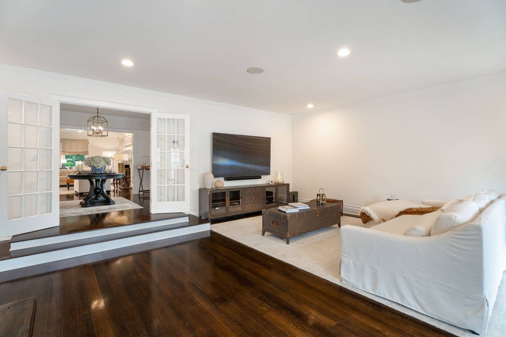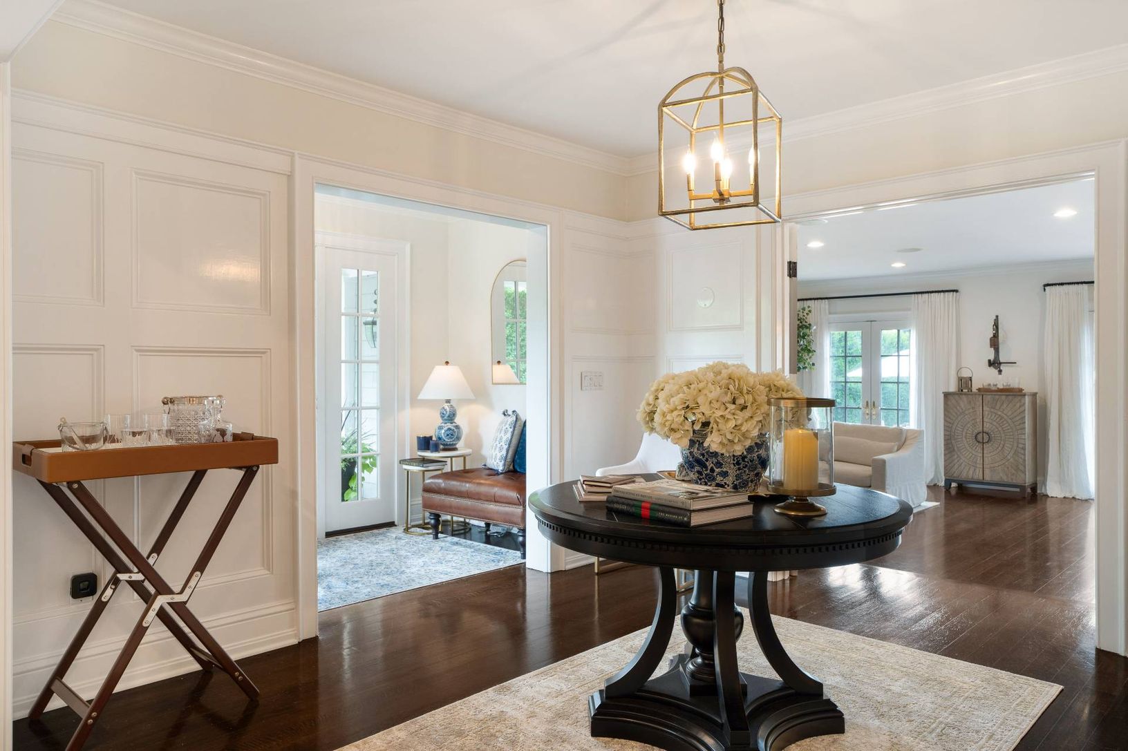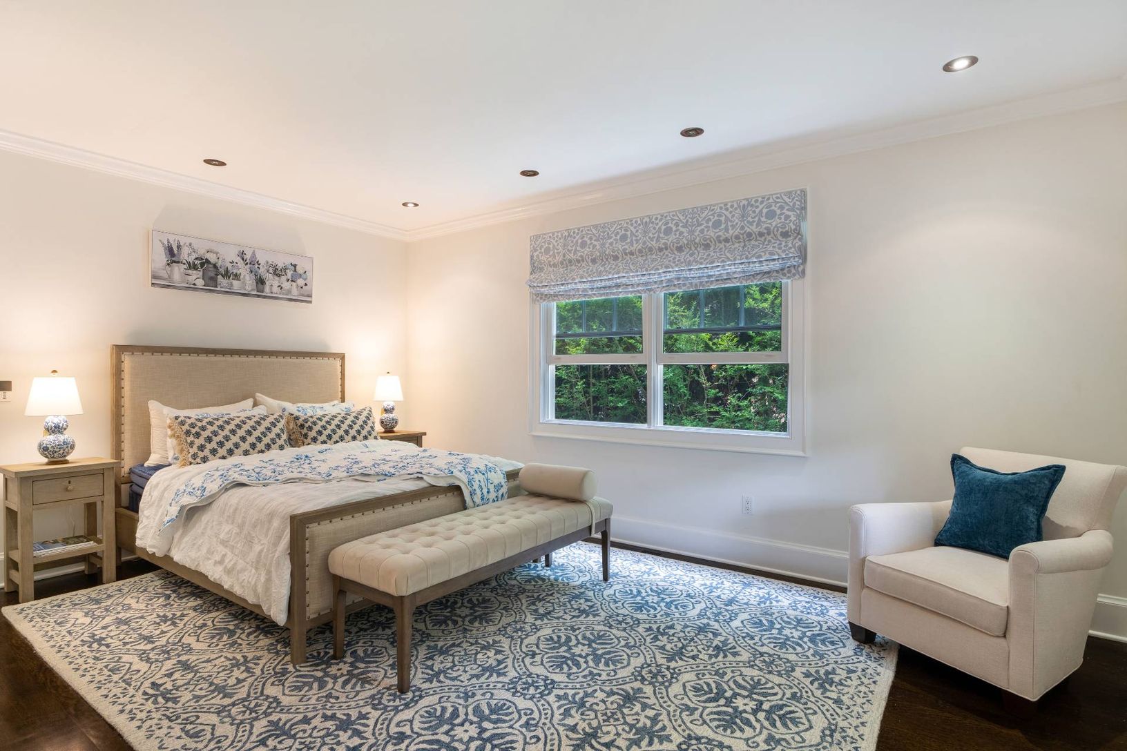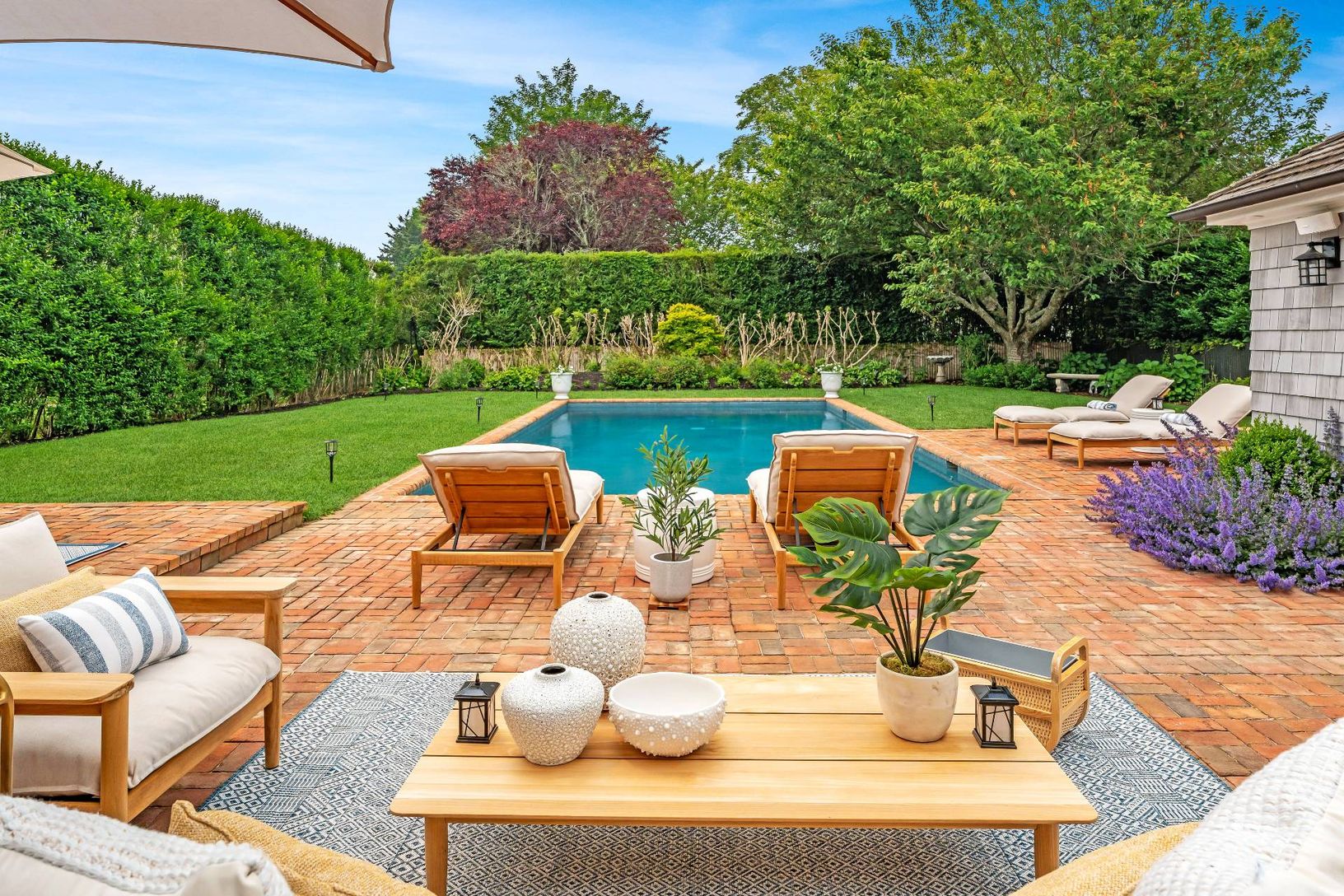 Situated on a picturesque tree-lined street with quintessential village homes, this Hamptons traditional home is newly furnished for your enjoyment and comfort with designs from Ralph Lauren and Design Within Reach. Step inside this stylish, sophisticated home and be greeted by a lovely mahogany front porch, the perfect spot to enjoy your morning coffee and paper. With 5 bedrooms, including a large master suite with soaring wainscoted ceilings