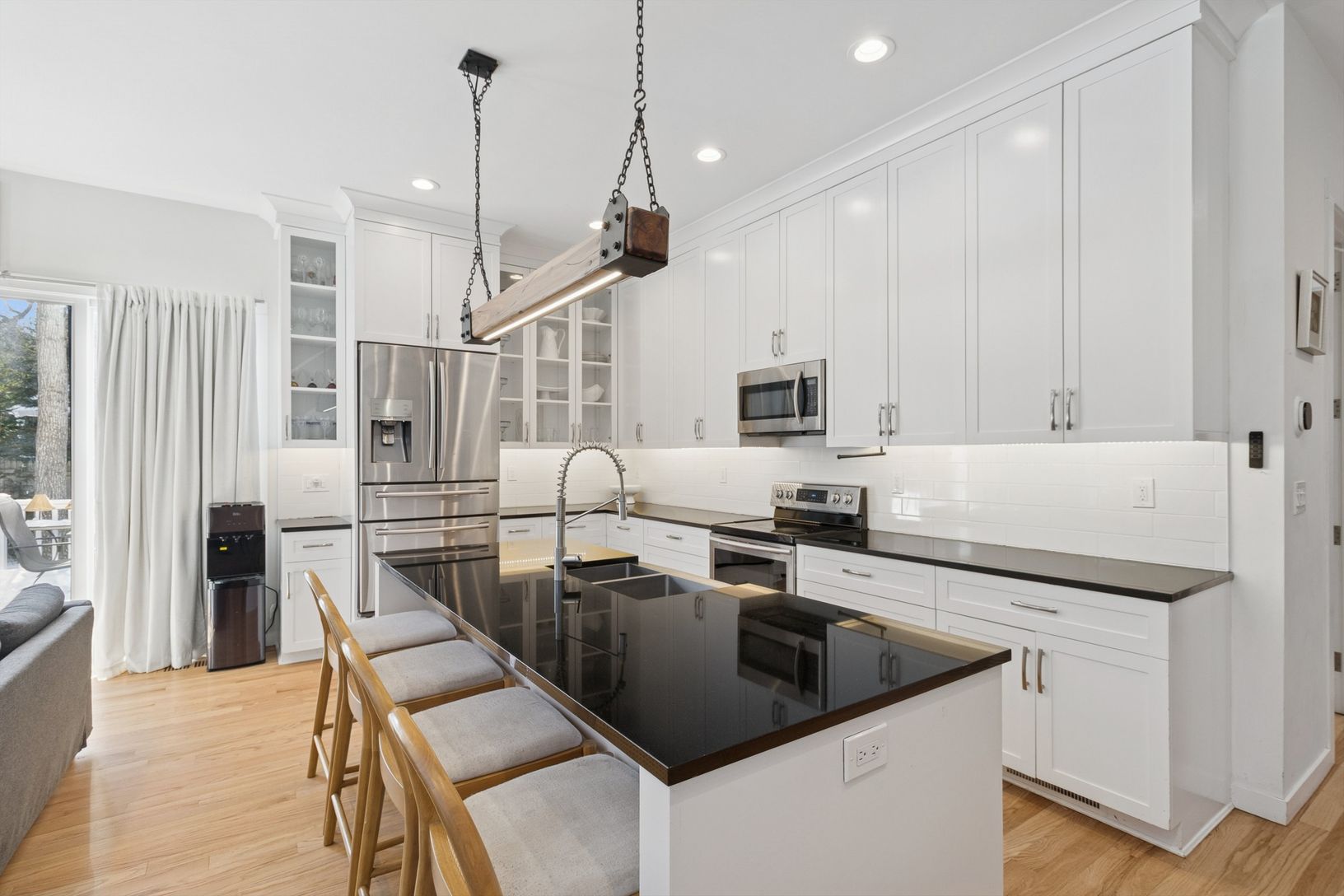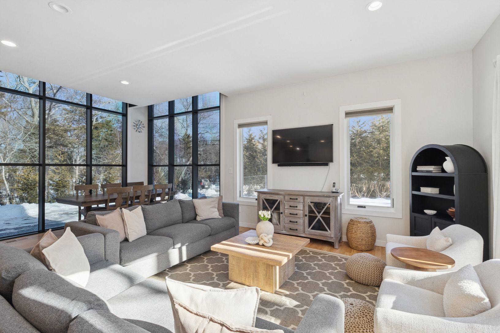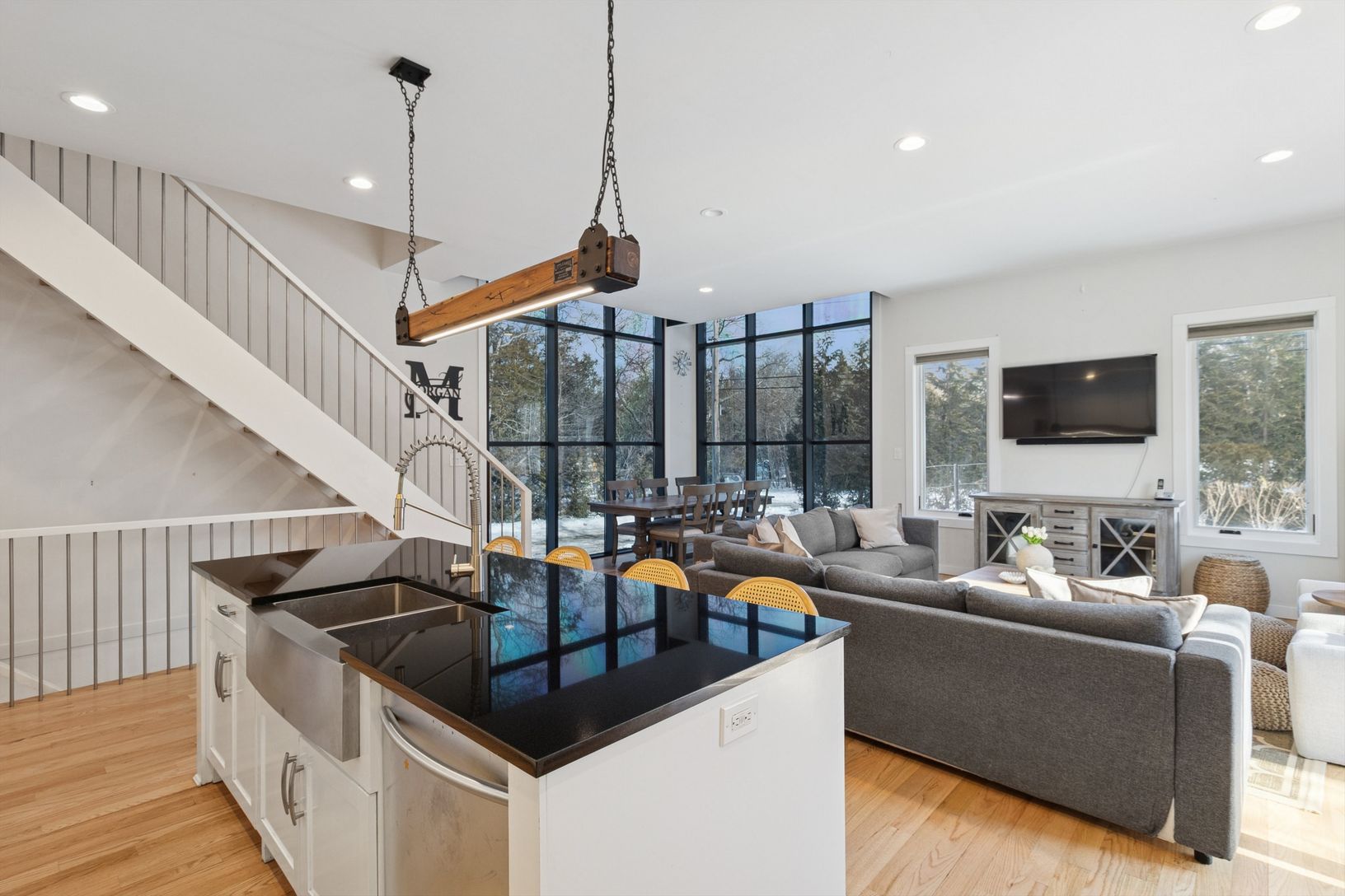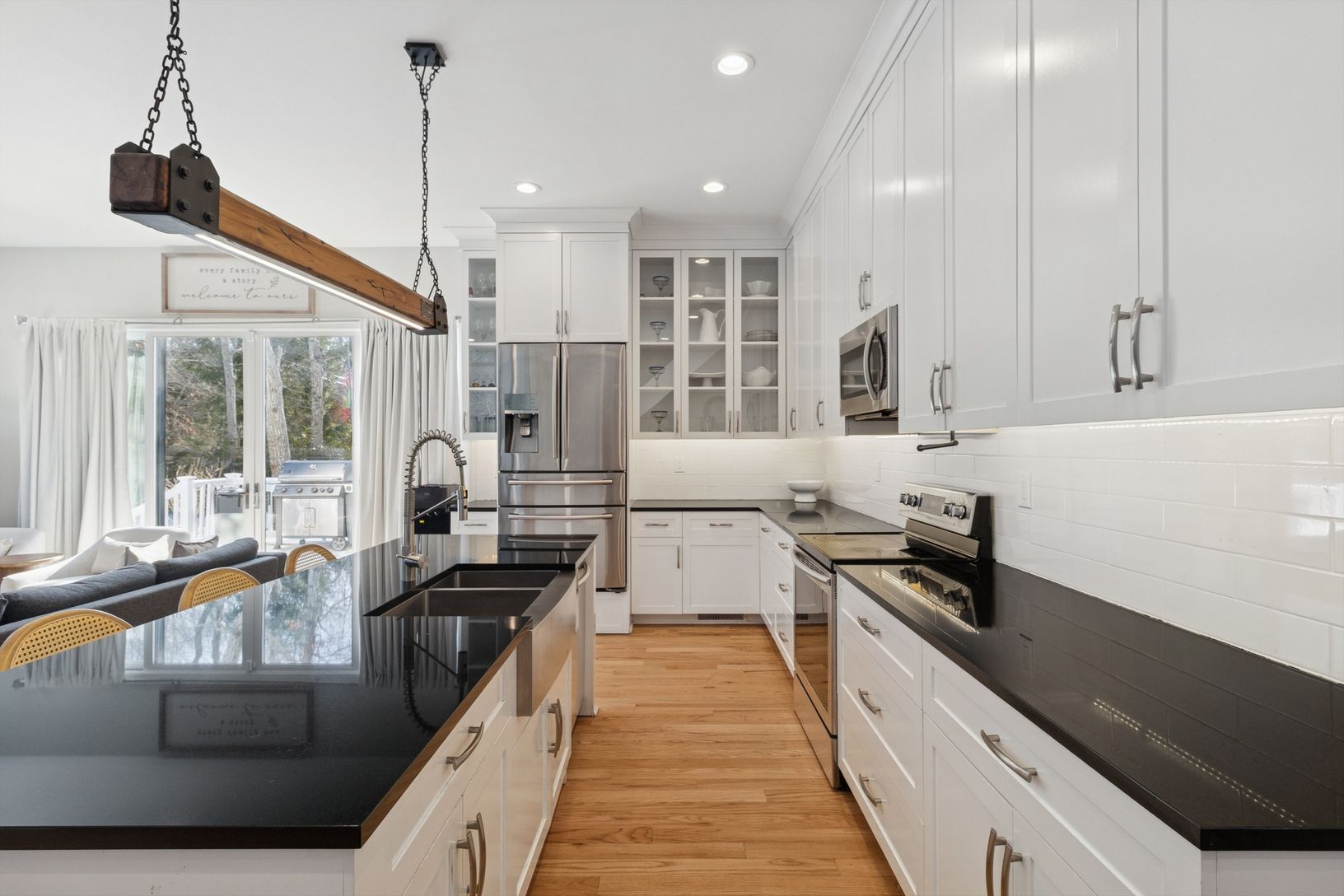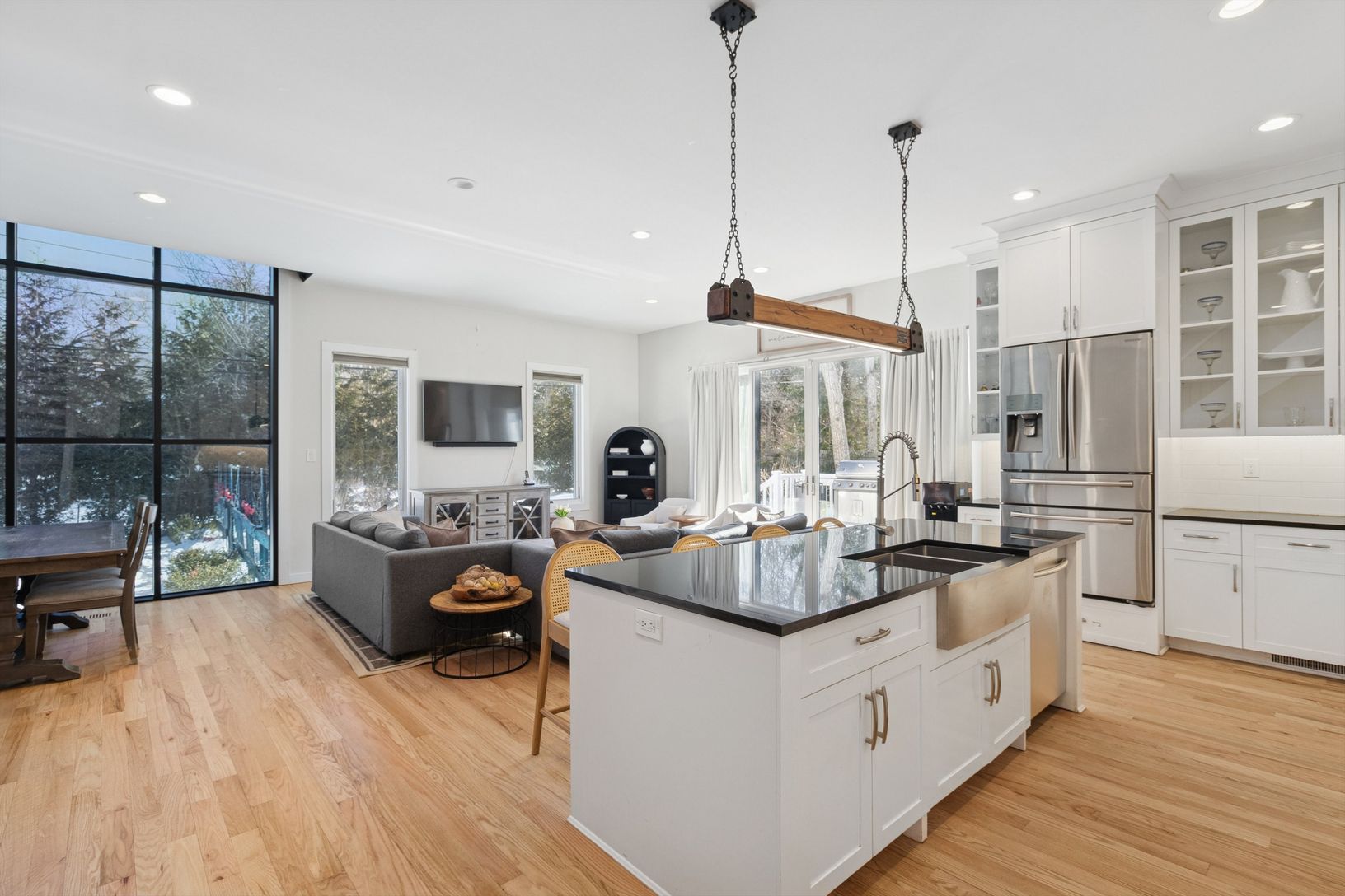 Clearwater Beach is one of East Hampton's only private beach‑and‑marina communities, and this modern 4‑bedroom, 3‑bath home sits at the heart of it. Spend long summer days by your brand‑new pool with a grassy surround, dine and lounge on the expansive deck with outdoor TV, or enjoy the calm waters of Gardiner's Bay just moments away. Evenings are perfect for the fire pit and some of the area's best sunsets. Inside, a sun‑filled great room with