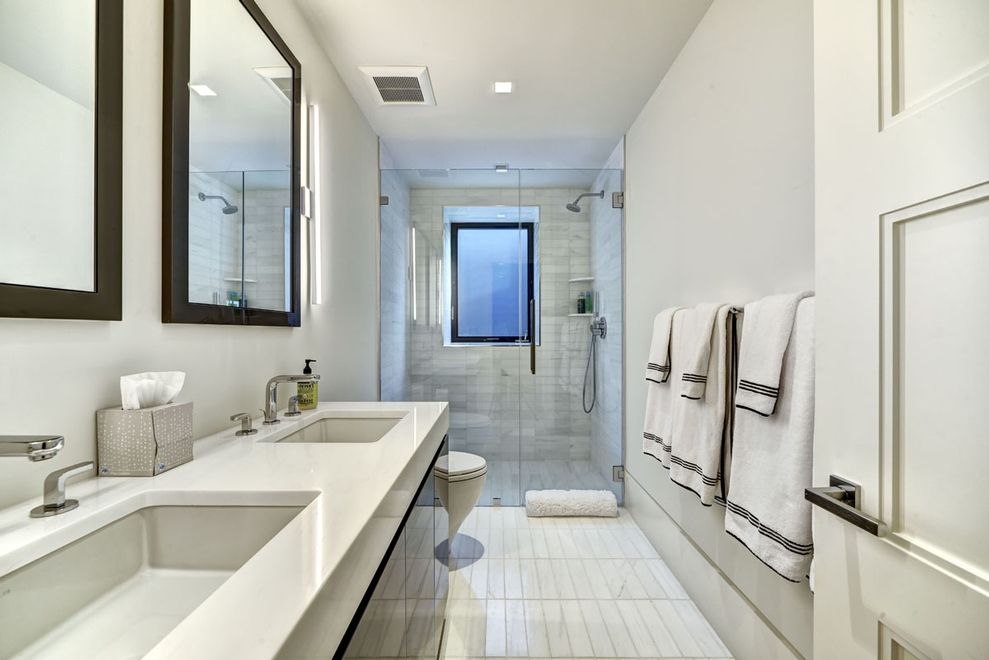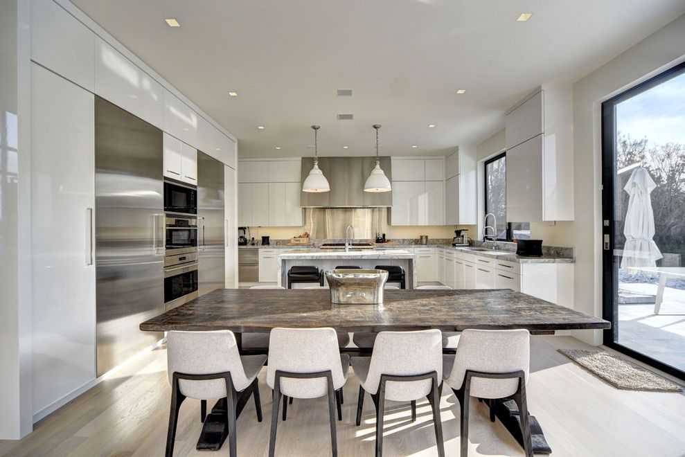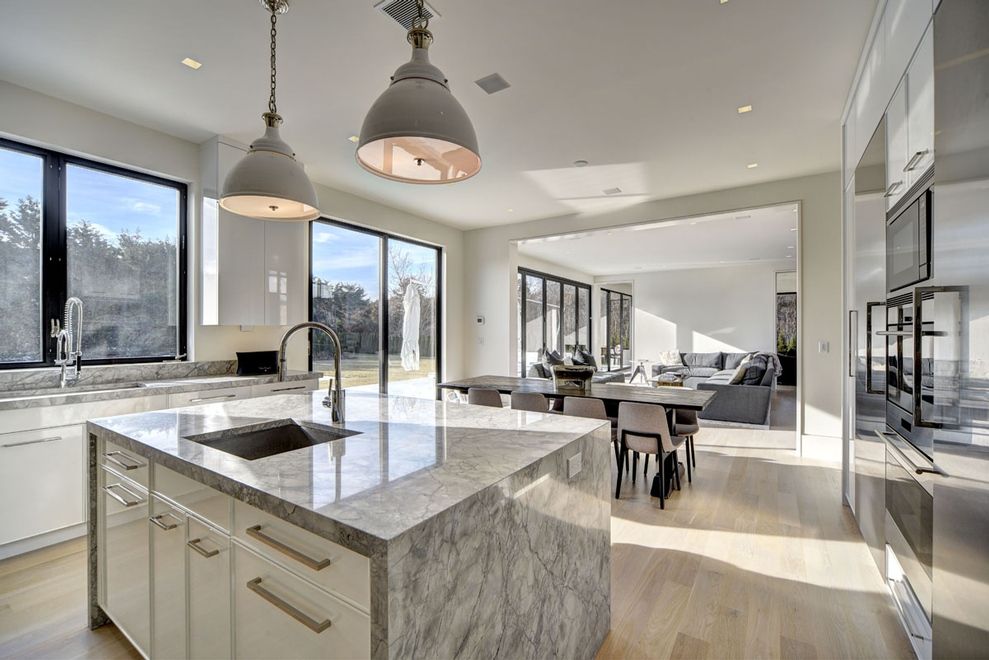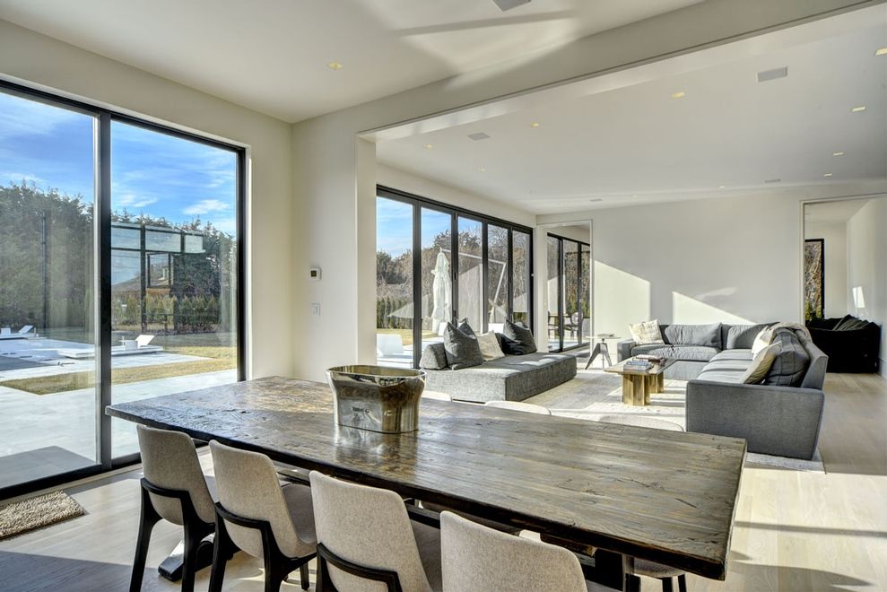 Custom built for discerning owners by Farrell Building Co, a stunning 6 bedroom modern beach house offers an uncompromising Sagaponack experience throughout its nearly 7,000 SF of exquisite interiors on three levels of living space. From the ocean view roof deck down to the finished lower level, this first ever offering, just a few hundred feet to the beach, exudes a simplistic sophistication. A double height entry welcomes all over white was