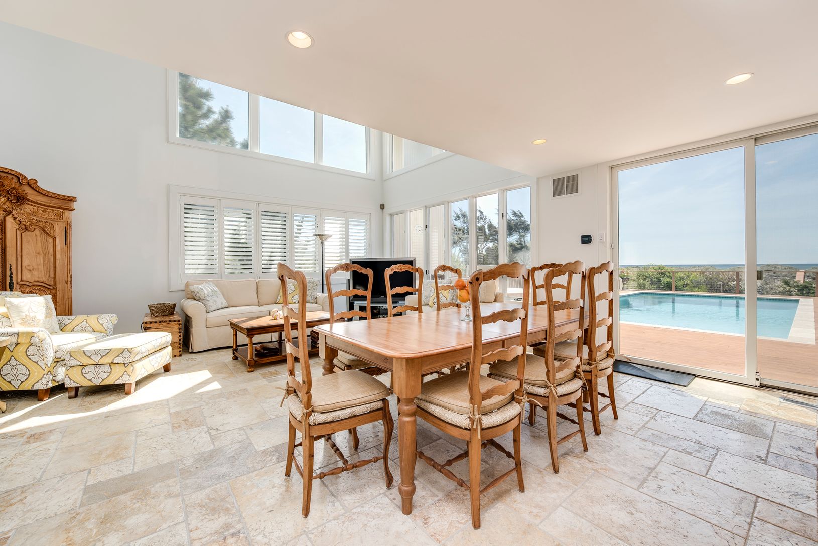 This glorious beachfront home enjoys a large oceanside pool and a desirable location between the two bridges in Westhampton Beach. The property enjoys 77 feet of frontage along the ocean - the total property is greater than an acre at 50,270 S.F. The beach house has soaring ceilings in the living room allowing the unique Hamptons light to fill the space. The interior is freshly painted and renewed. In 2009 the house, including the kitchen, was