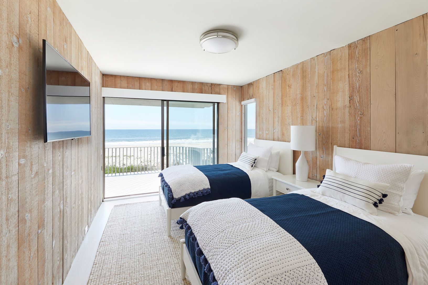Sited on 1.2 oceanfront acres+/- on one of the Hamptons most desirable oceanfront streets, this contemporary 4,000 SF+/- residence features 5 bedrooms, 5 bathrooms, multiple outdoor and oceanfront terraces, pool, and private boardwalk to 125 feet+/- of prime beach frontage. Expansive walls of glass create a seamless connection between in and outdoors and allows for ocean views from nearly every room.