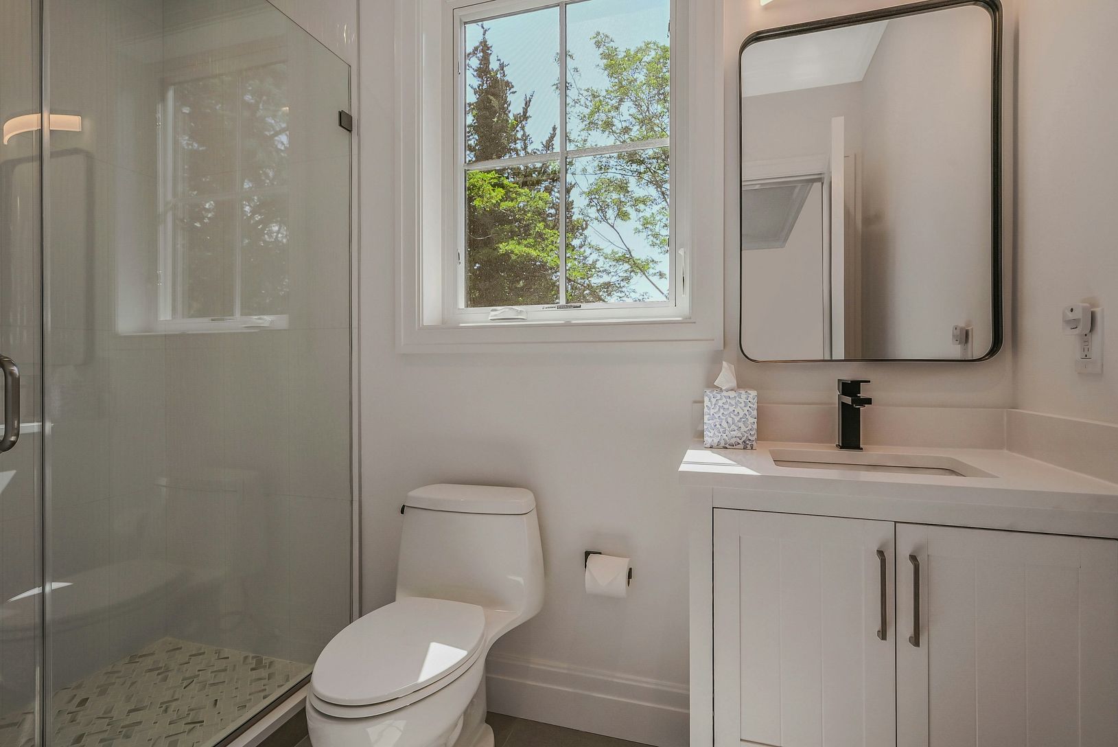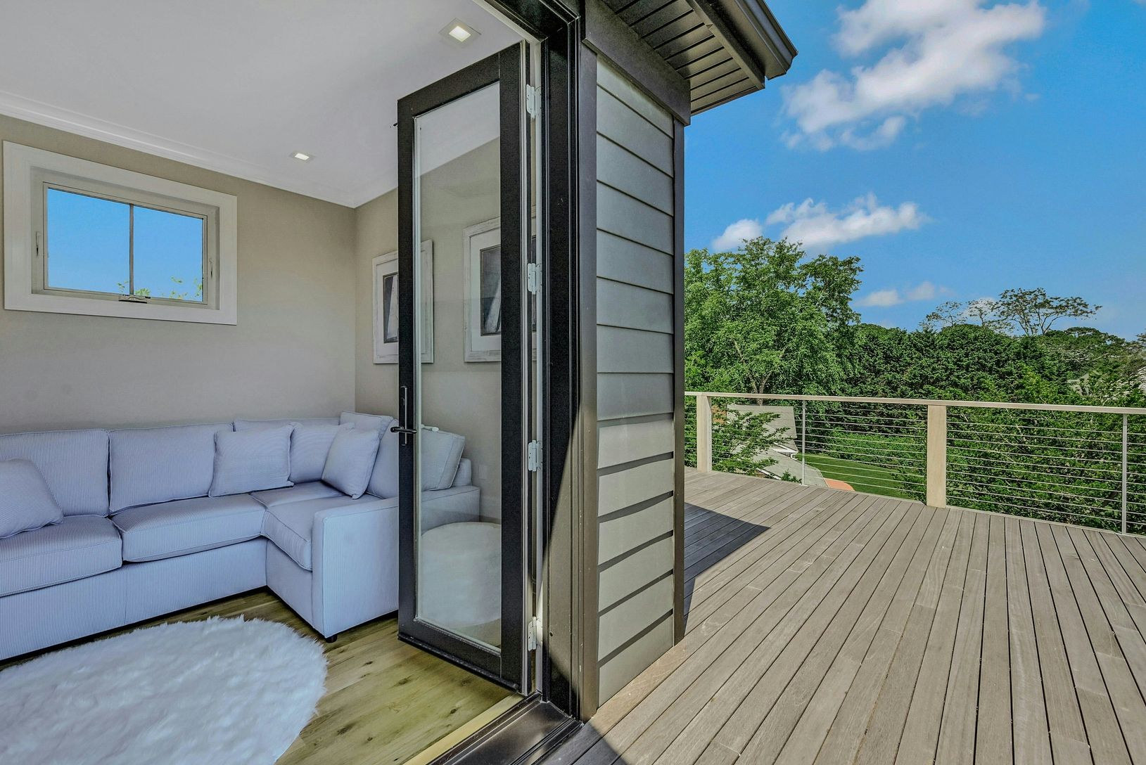 Beautifully appointed, light-filled home. Recently completed with attention to every detail. A wood and glass front door and natural wood architectural accents set the tone at the front entrance. The large great room features a living area with a two-sided gas fireplace, dining area, and a generous chefs eat-in kitchen. The second side of the fireplace faces the covered rear porch. All spaces share a wall of windows and doors opening to the r