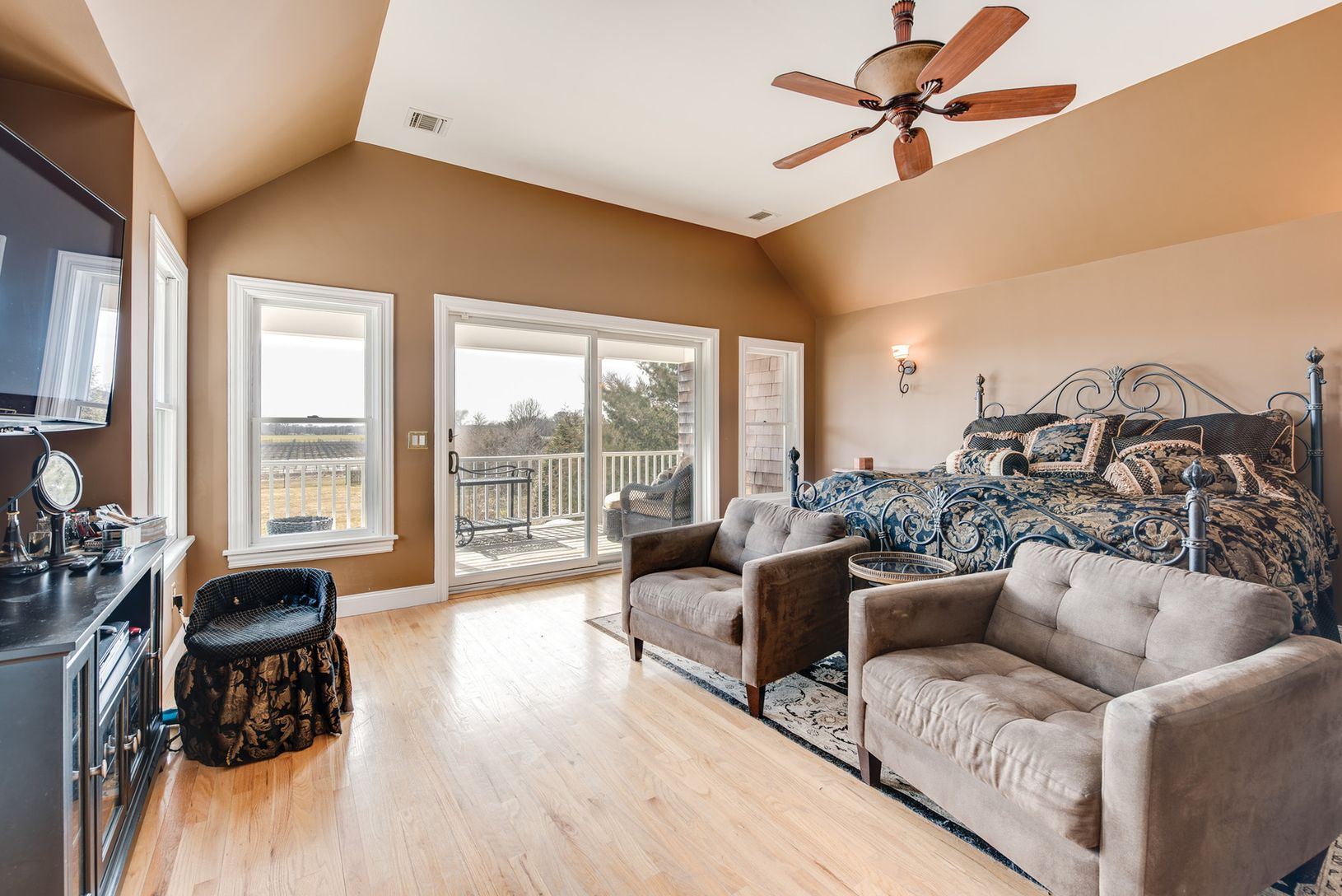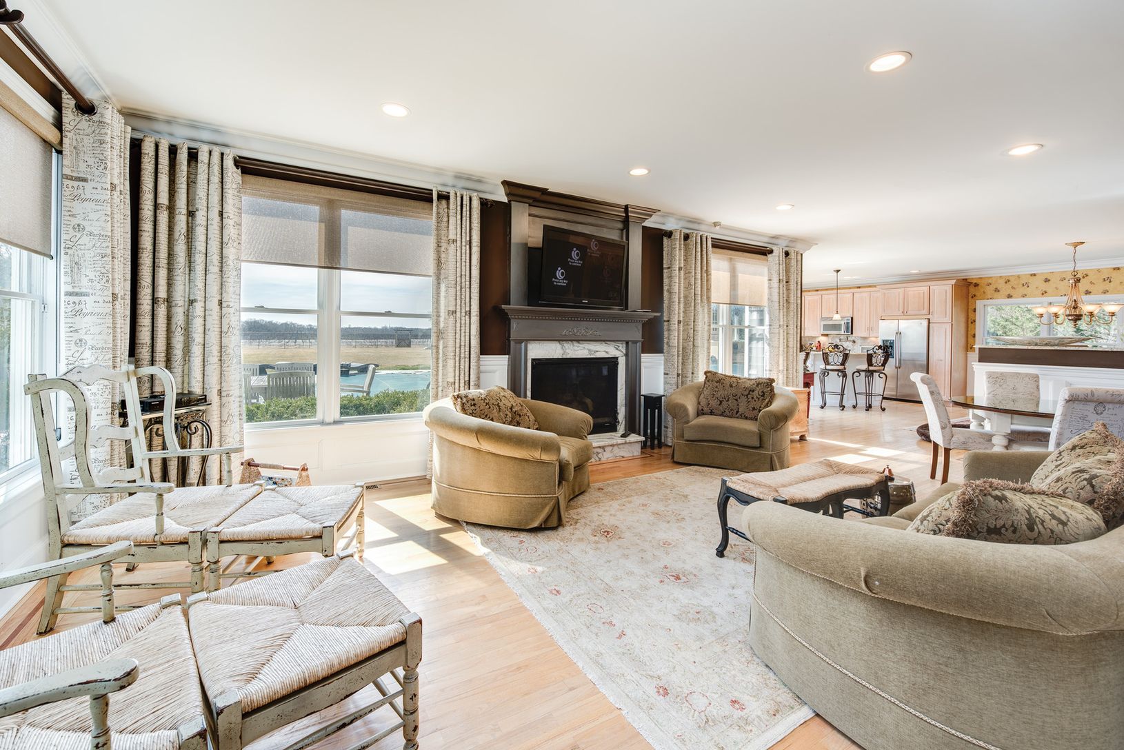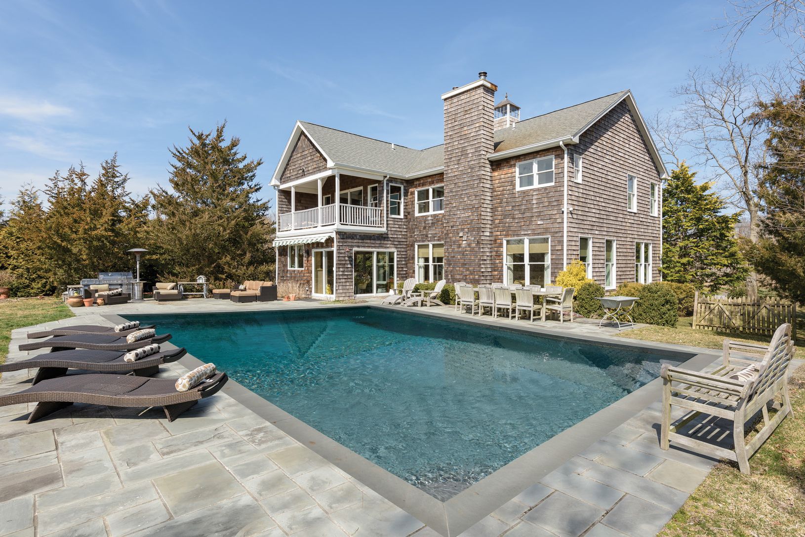 This home features a master suite with a private second floor porch that overlooks the heated L-shaped salt water pool and a bucolic setting with one of the kind sunset views across the vineyards in the evening as you entertain with family and friends. This idyllic year round getaway has every amenity including a junior master suite, media room with a sitting room and bath, eat in kitchen with stainless steel appliances and granite counter top
