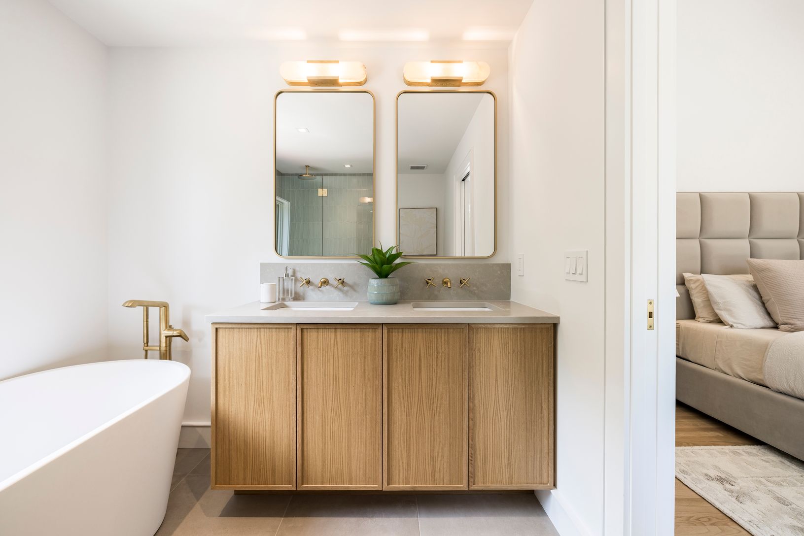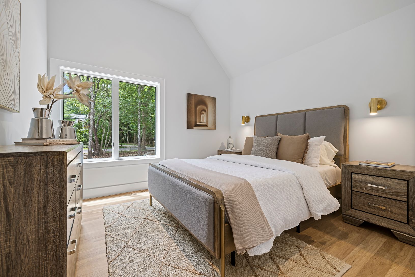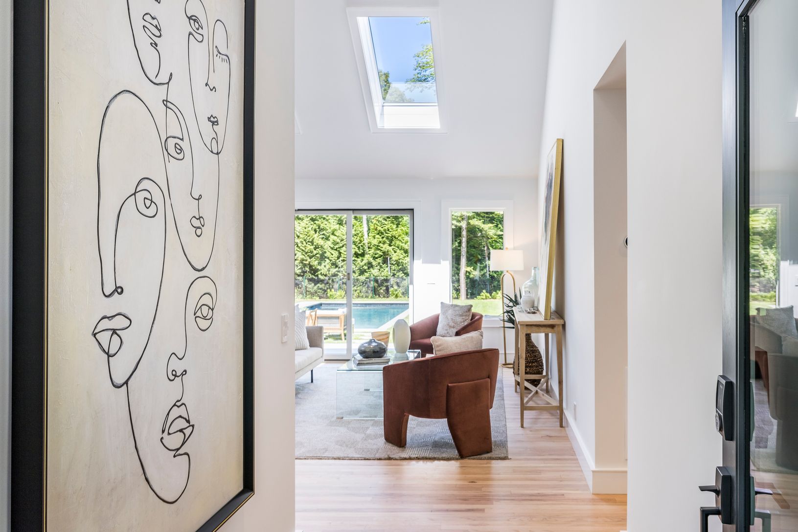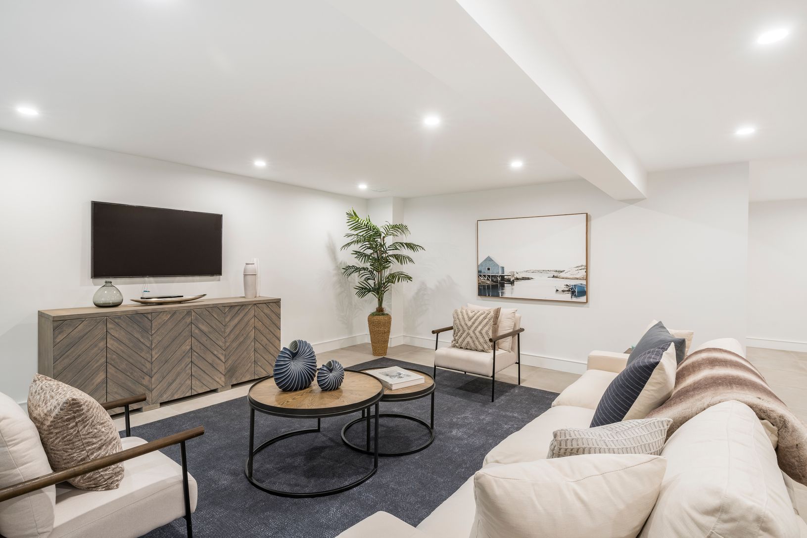Natural light floods through the brand-new windows, highlighting the high-end finishes and open concept living area, complete with white oak cabinets, quartzite surfaces, and top-of-the-line Viking applia