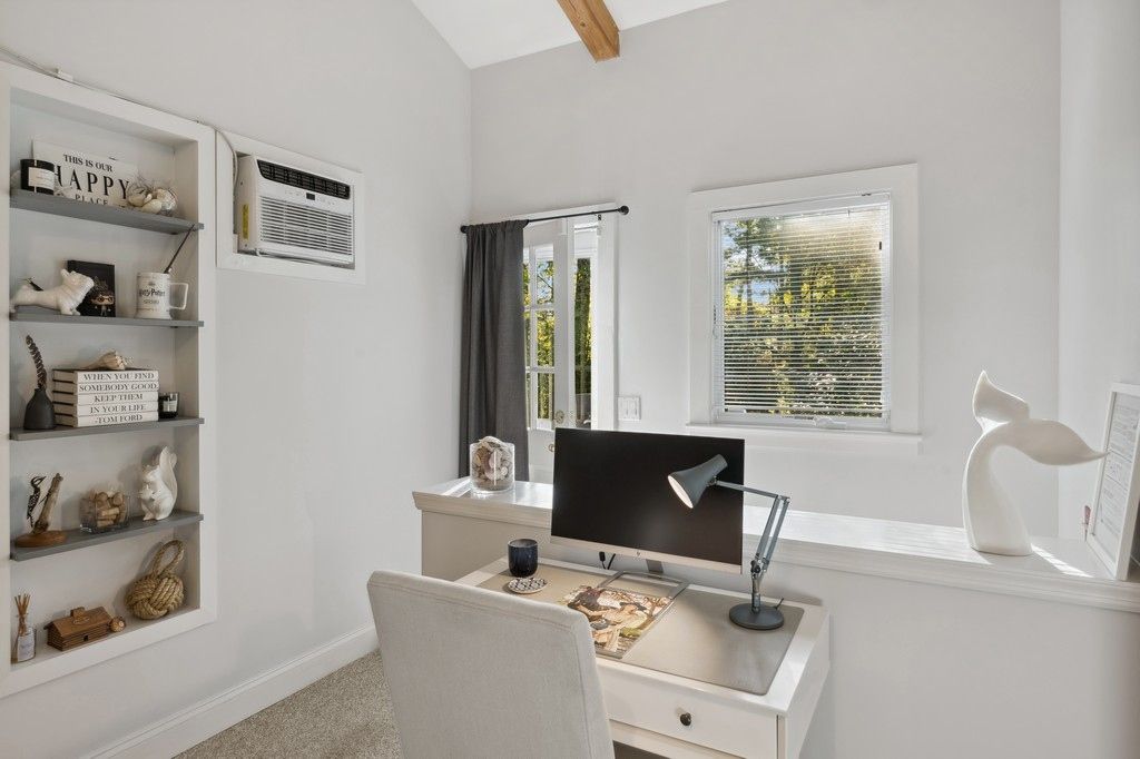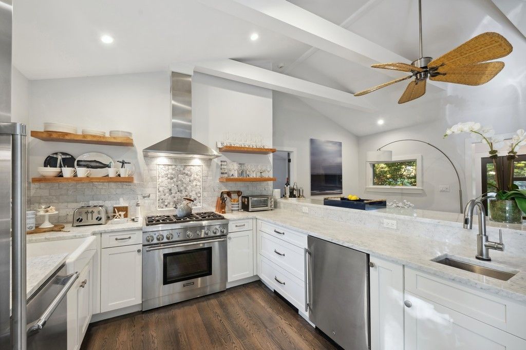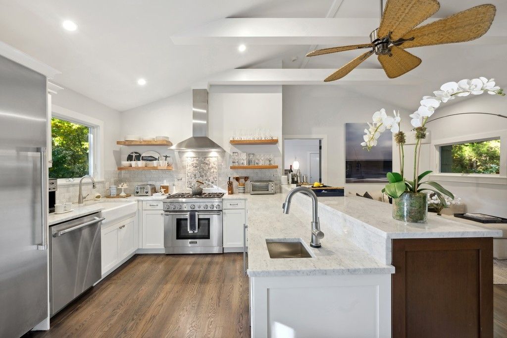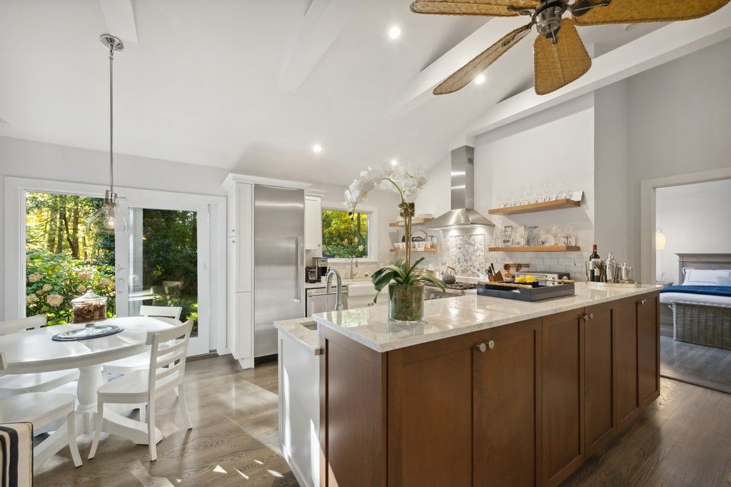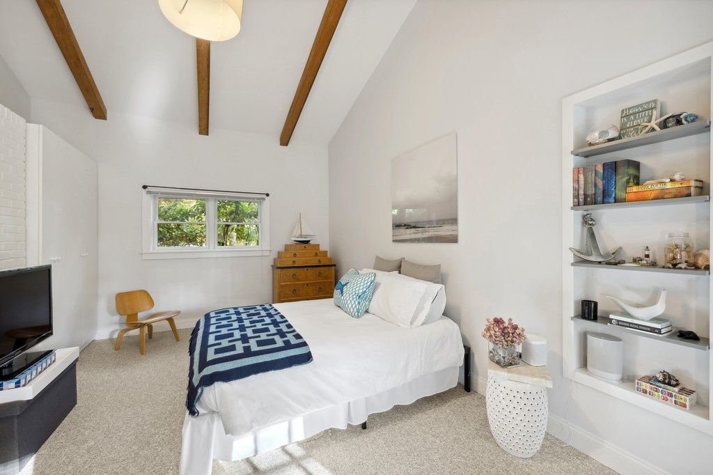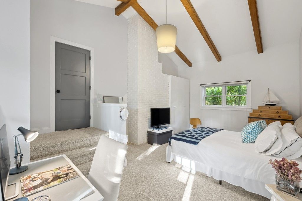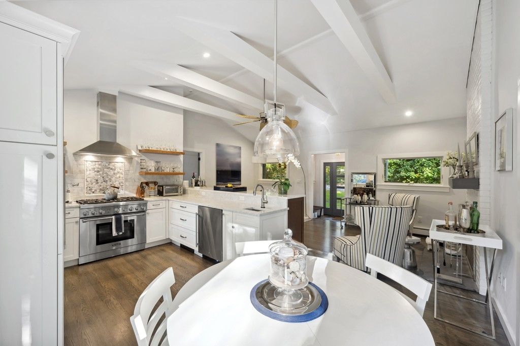 Enjoy this beautifully renovated two bedroom, one and a half bath home in the coveted Clearwater Beach Community of East Hampton. This much loved home features an open concept living area with Chef's Kitchen, vaulted and beamed ceilings, wood burning fireplace, hardwood floors and sliders that lead out to a large garden and patio perfect for summer entertaining. The Large master bedroom has ample closet space and sliders leading to the fully