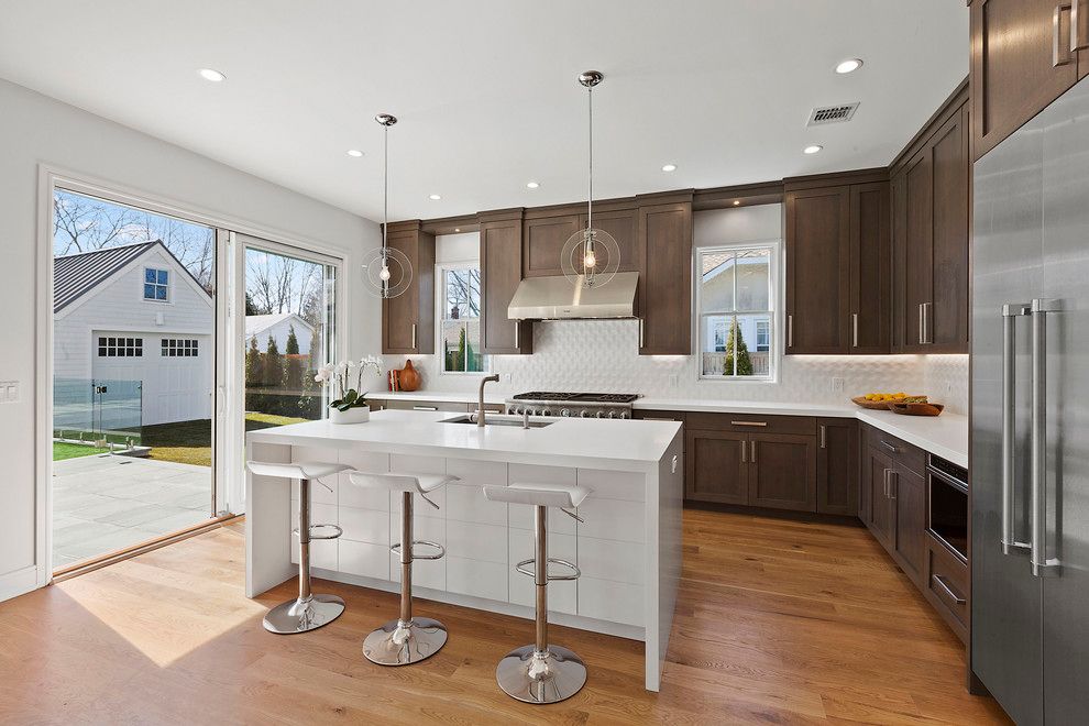 Cutting edge design elements make this brand new construction on 168 West Prospect St., in Southampton Village the antidote to the cookie cutter approach. The traditional shingled exterior with standing seam roof blends effortlessly into the Village aesthetic while the sleek and modern interior spaces are still warm and inviting. Gourmet custom kitchen with stainless steel appliances and giant center island,vaulted ceiling living room with fir