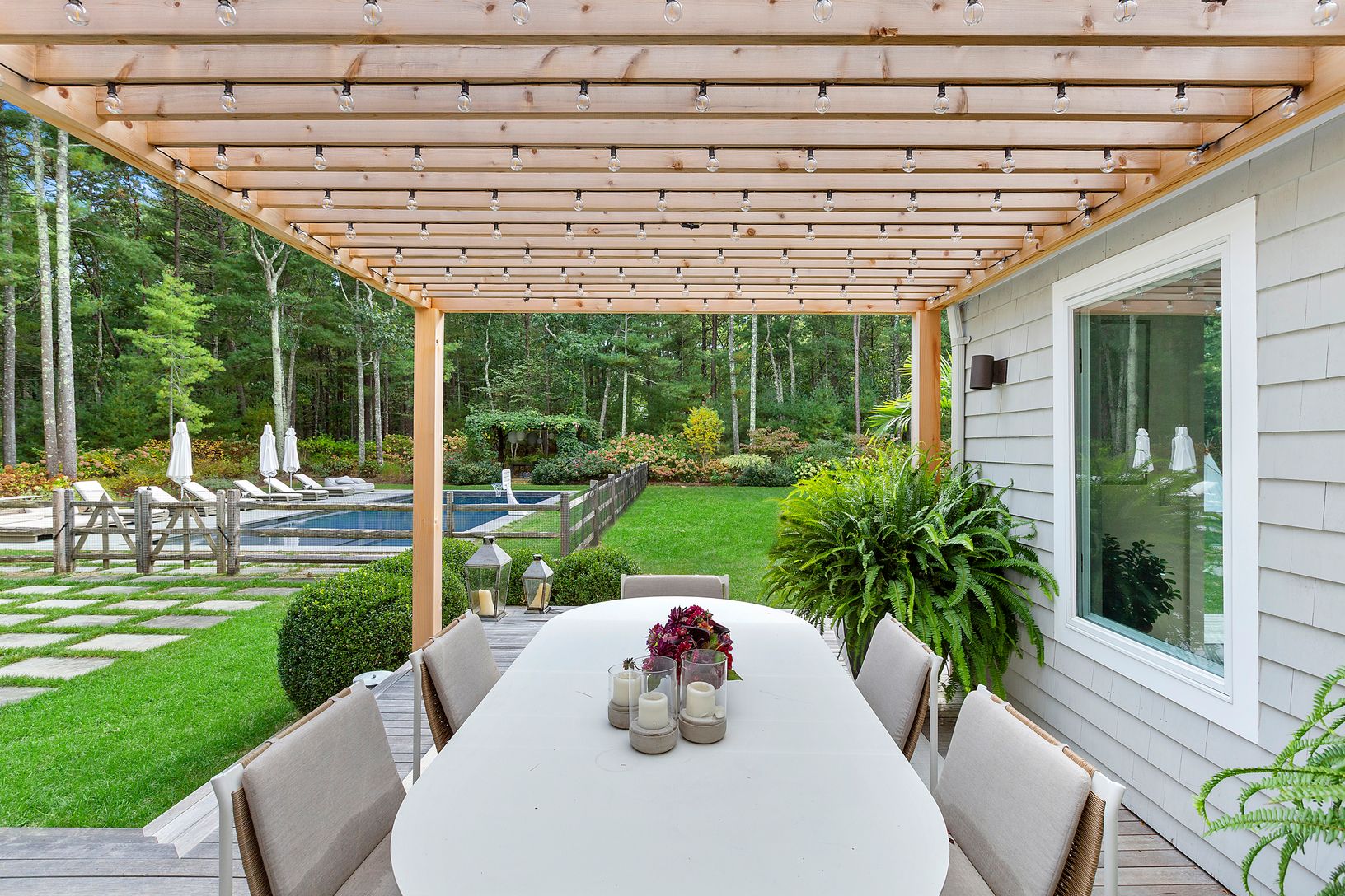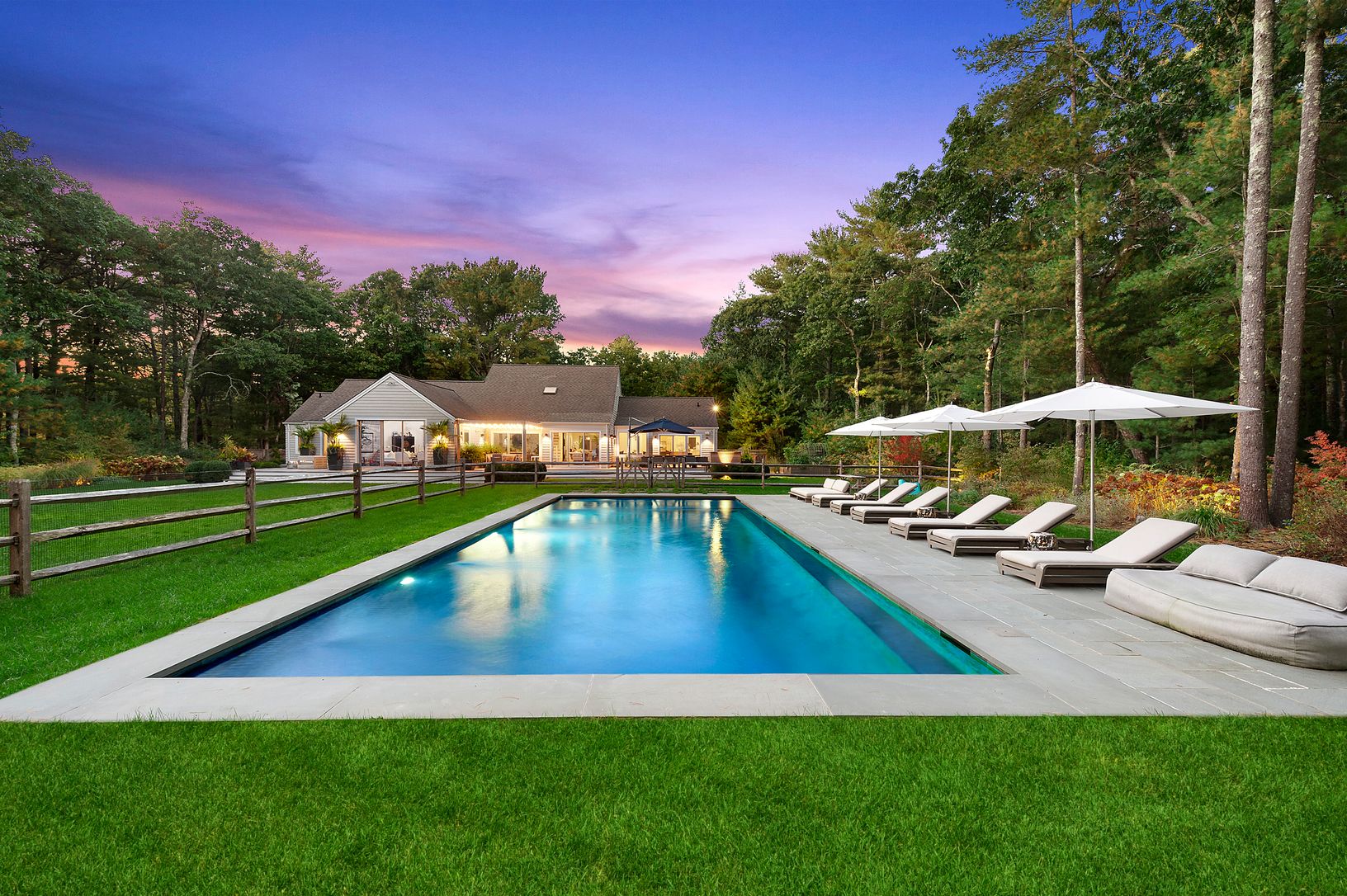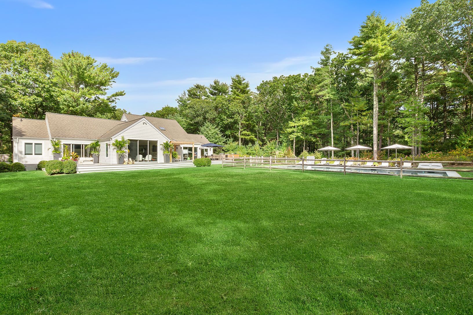 This 4 bedroom, 4.5 bath home has undergone an expansive, ground up renovation with attention to detail in the highest degree.. Situated on over 2 acres within close proximity to both East Hampton and Sag Harbor town, the estate-like setting offers a 50 ft gunite lap pool with a custom sundeck - perfect for the kids as well as separate gunite hot tub. The stunning backyard is perfect for entertaining, complete with an outdoor kitchen, multiple