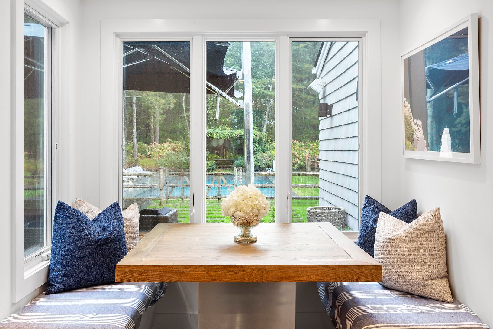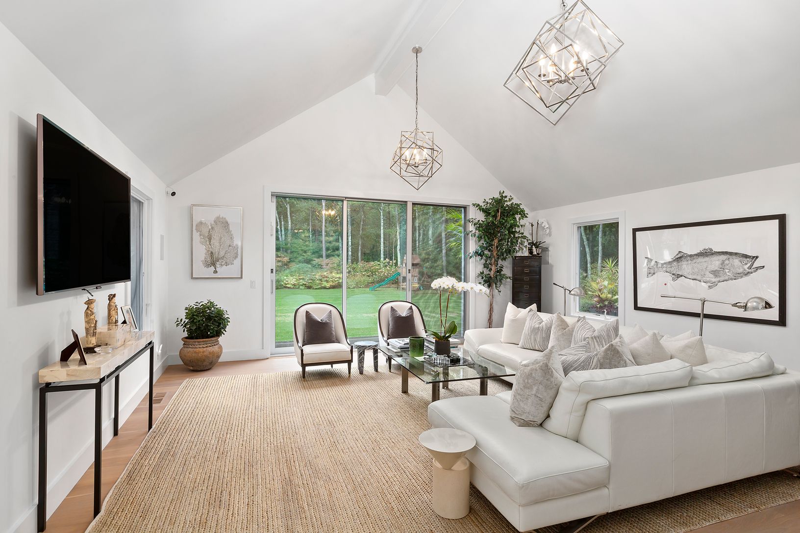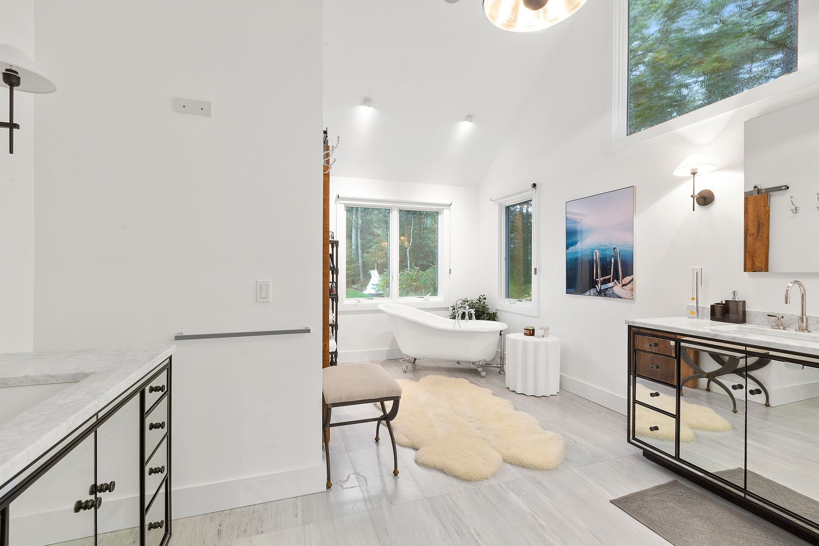 This 4 bedroom, 4.5 bath home has undergone an expansive, ground up renovation with attention to detail in the highest degree.. Situated on over 2 acres within close proximity to both East Hampton and Sag Harbor town, the estate-like setting offers a 50 ft gunite lap pool with a custom sundeck - perfect for the kids as well as separate gunite hot tub. The stunning backyard is perfect for entertaining, complete with an outdoor kitchen, multiple