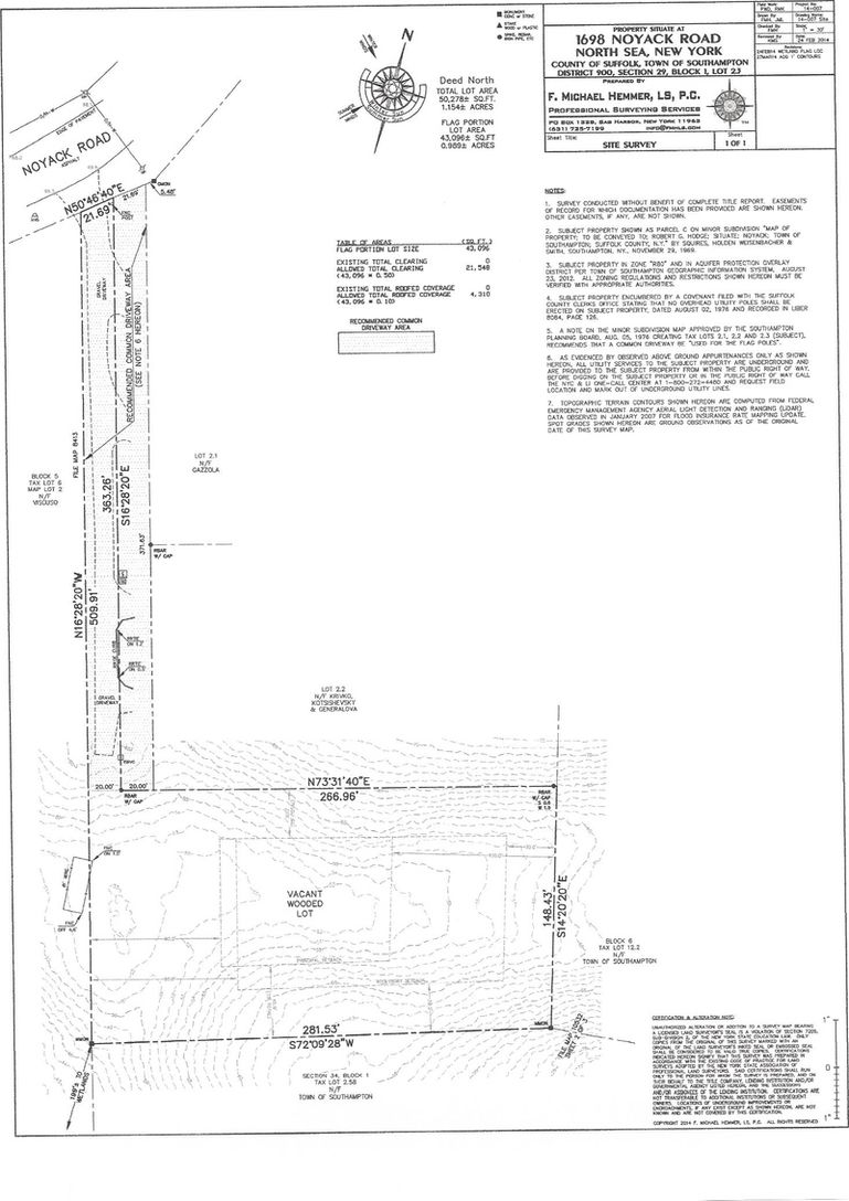 1.15 acre flag lot set back 3 lots off Noyack Road abutting 22+ acres town reserve making it very private and convenient to all Hamptons Hamlets and it is across from a Peconic Bay beach. It has all approved plans and permits in place - house plans ready to go... We can provide a list of builders for you to choose from and turn your land into your own private oasis. Topography survey included in our photos. Upon request, we can supply you