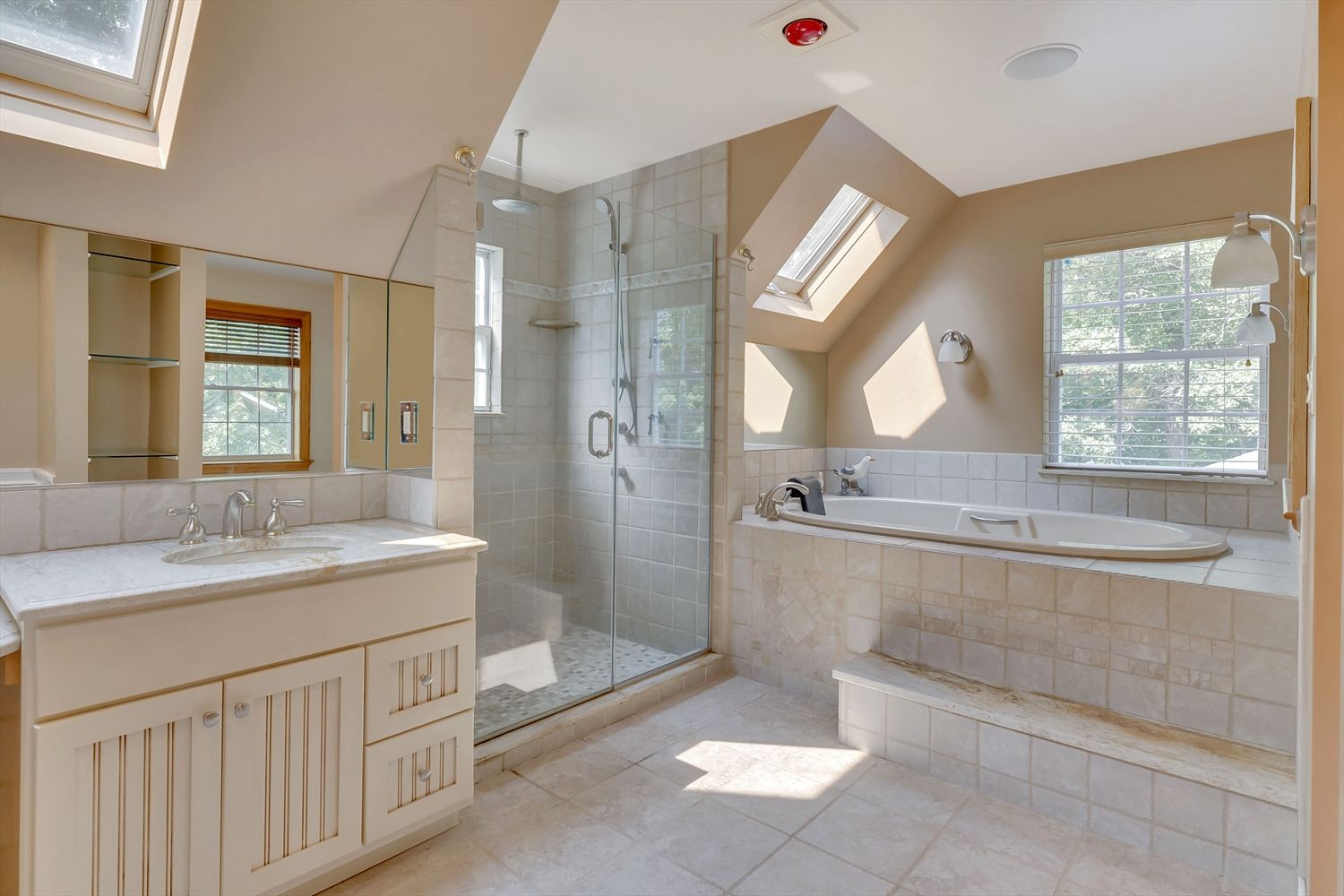 Located on a quiet country lane this home offers the peace and quiet you've been looking for. Large eat-in kitchen, living room with hardwood floors, and full bath on first floor. The Master is en suite and includes a changing area, sitting room, and incredible bath with walk-in shower and soaking Jacuzzi as well as double sink vanity with granite tops. Over-sized driveway perfect for R.V. or boat.