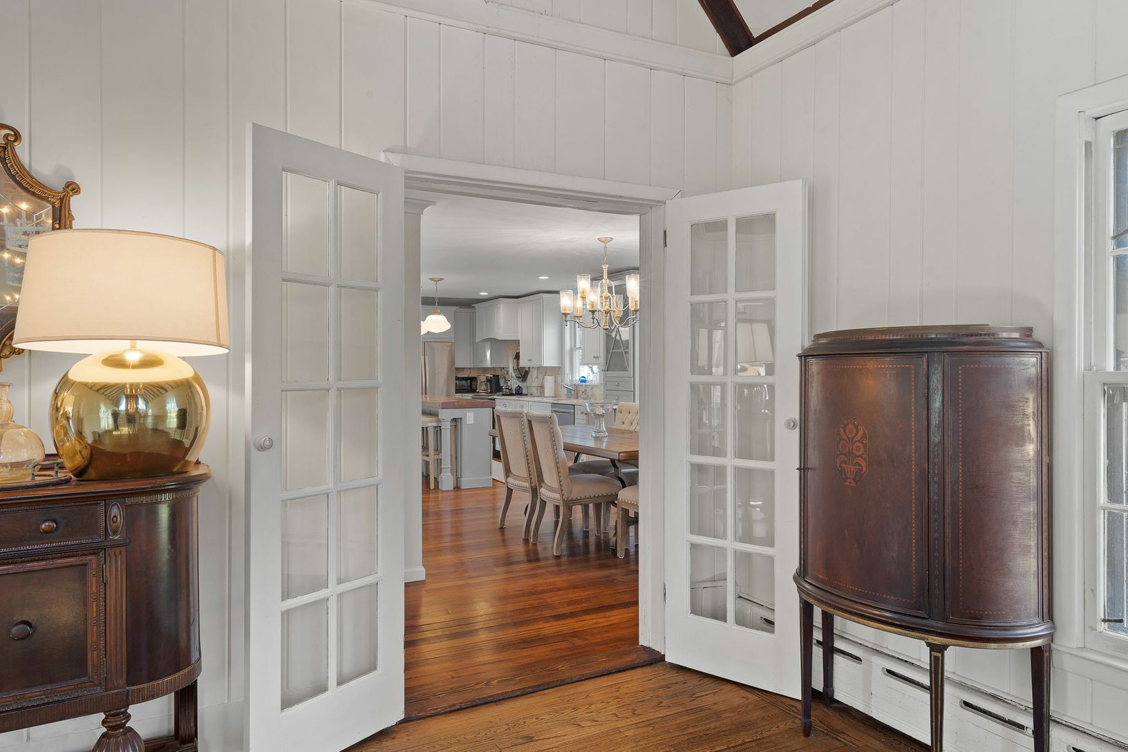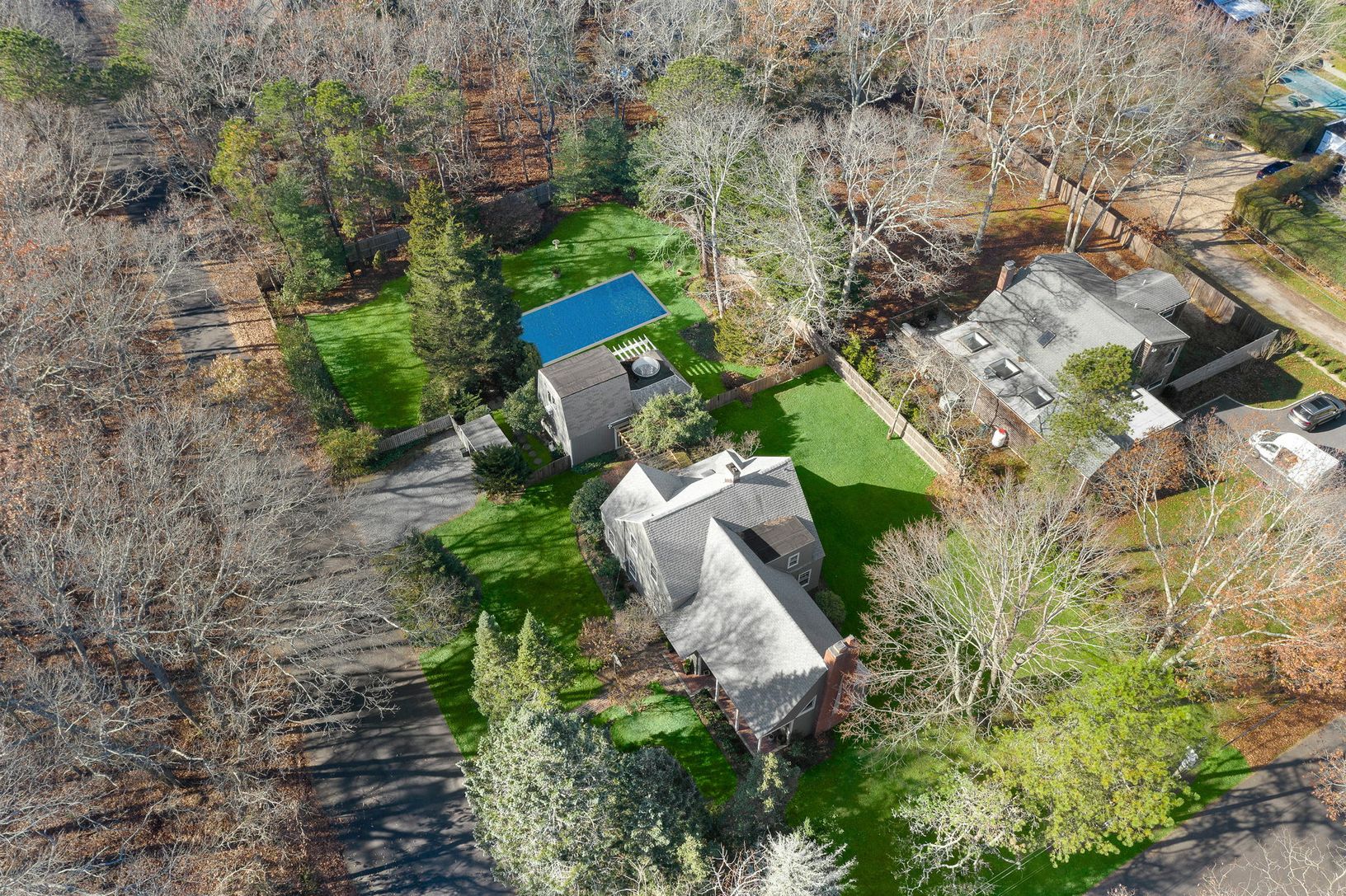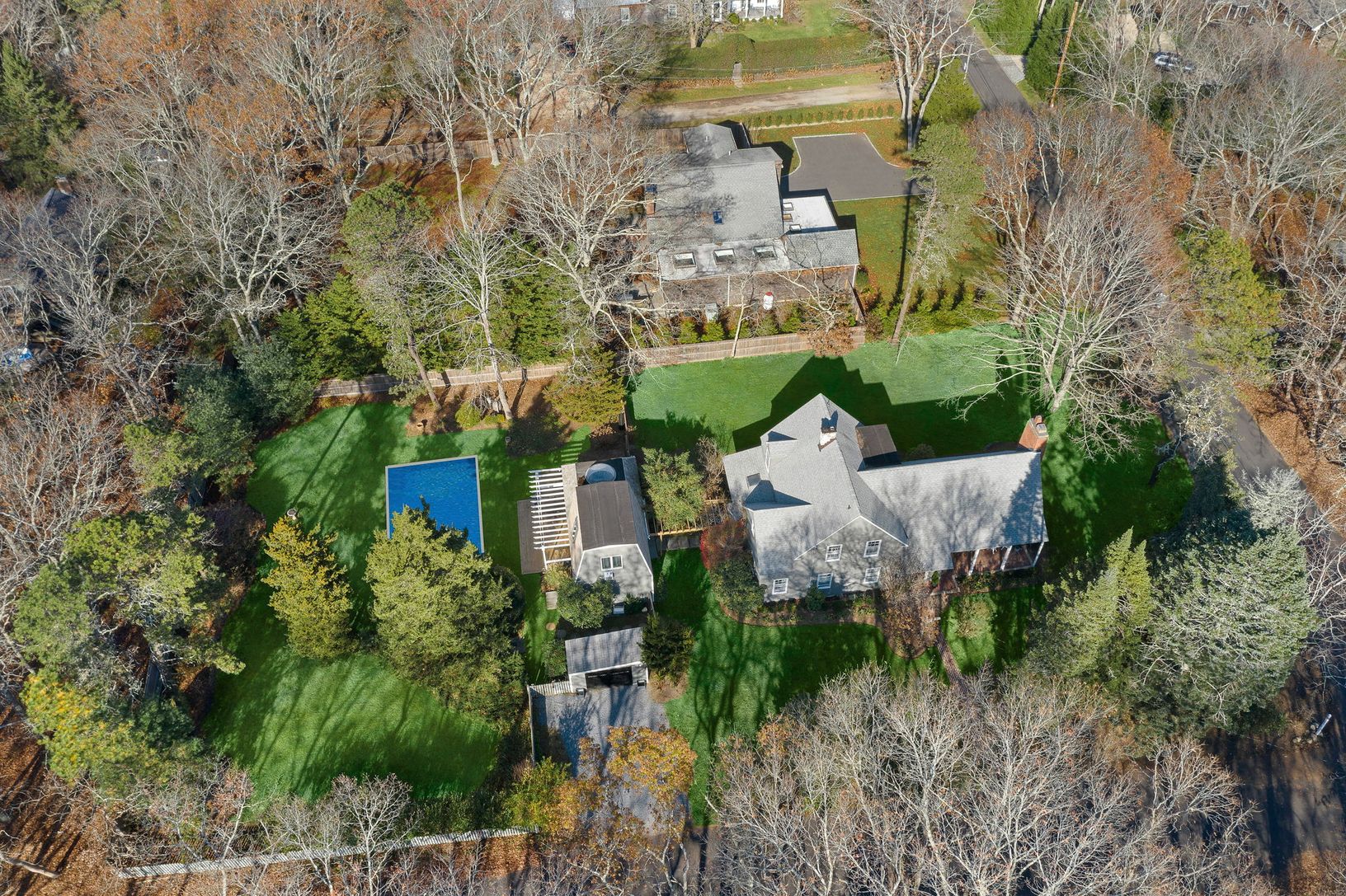 Perfectly situated in the hamlet of Wainscott, lies this beautiful traditional compound sitting on just under one-half acre. Offering two legal dwellings - the main house has a large master bedroom, three guests bedrooms, and two full baths and a separate two story pool house with a full bathroom, kitchen, living room/loft and a open sitting room with fireplace. The main dwelling boasts many original, craftsman features including 6" wood plank
