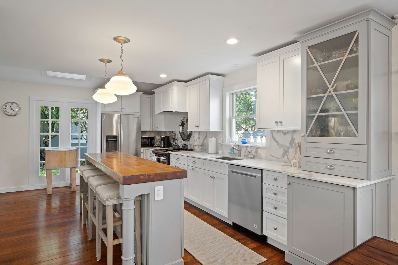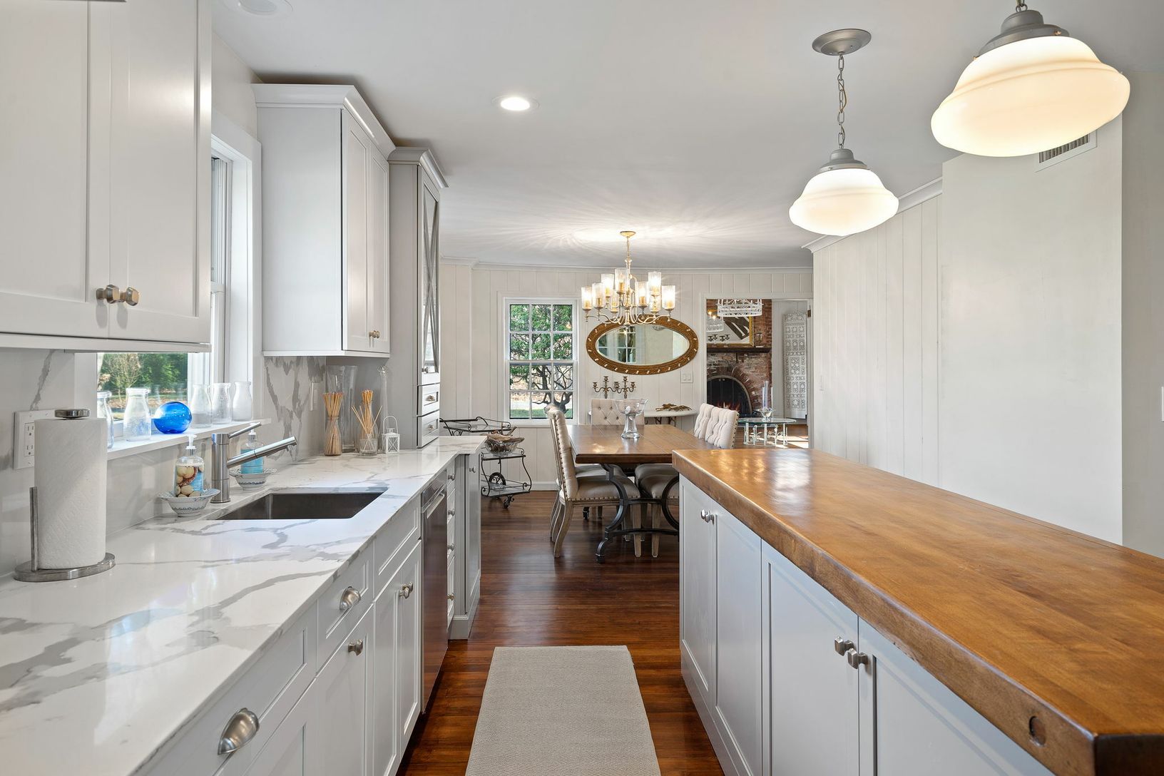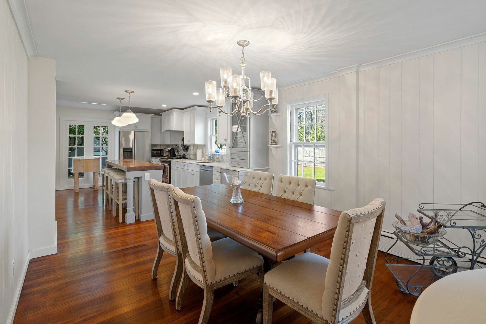 Perfectly situated in the hamlet of Wainscott, lies this beautiful traditional compound sitting on just under one-half acre. Offering two legal dwellings - the main house has a large master bedroom, three guests bedrooms, and two full baths and a separate two story pool house with a full bathroom, kitchen, living room/loft and a open sitting room with fireplace. The main dwelling boasts many original, craftsman features including 6" wood plank
