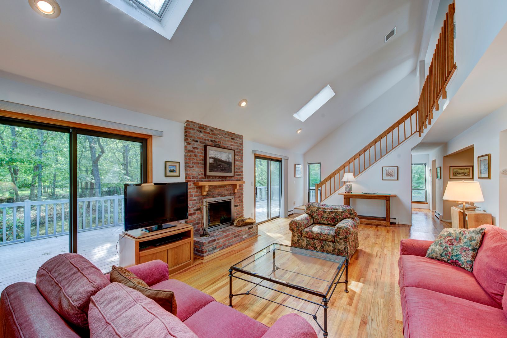 Close to East Hampton village shopping and local restaurants, this 1,800 SF+/- traditional home features an open floor plan, a large living room with a fireplace and cathedral ceilings, and a separate dining room and kitchen . A private master bedroom suite and two additional guest bedrooms complete this crisp, clean home. Enjoy the backyard with large deck perfect for relaxing. Plenty of room for a pool.