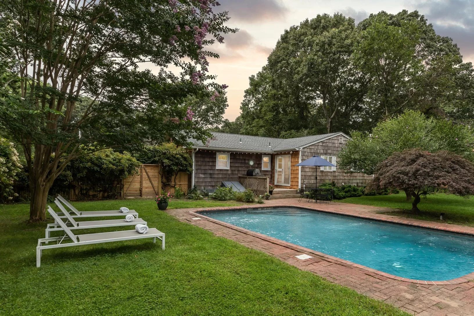 Enjoy your summer in this stylish home in the Clearwater Beach area of East Hampton. Relax by the pool in a private back yard or at the gated bay beach.