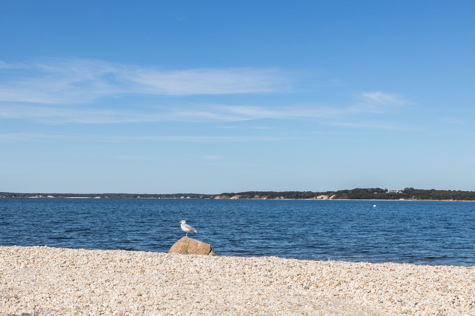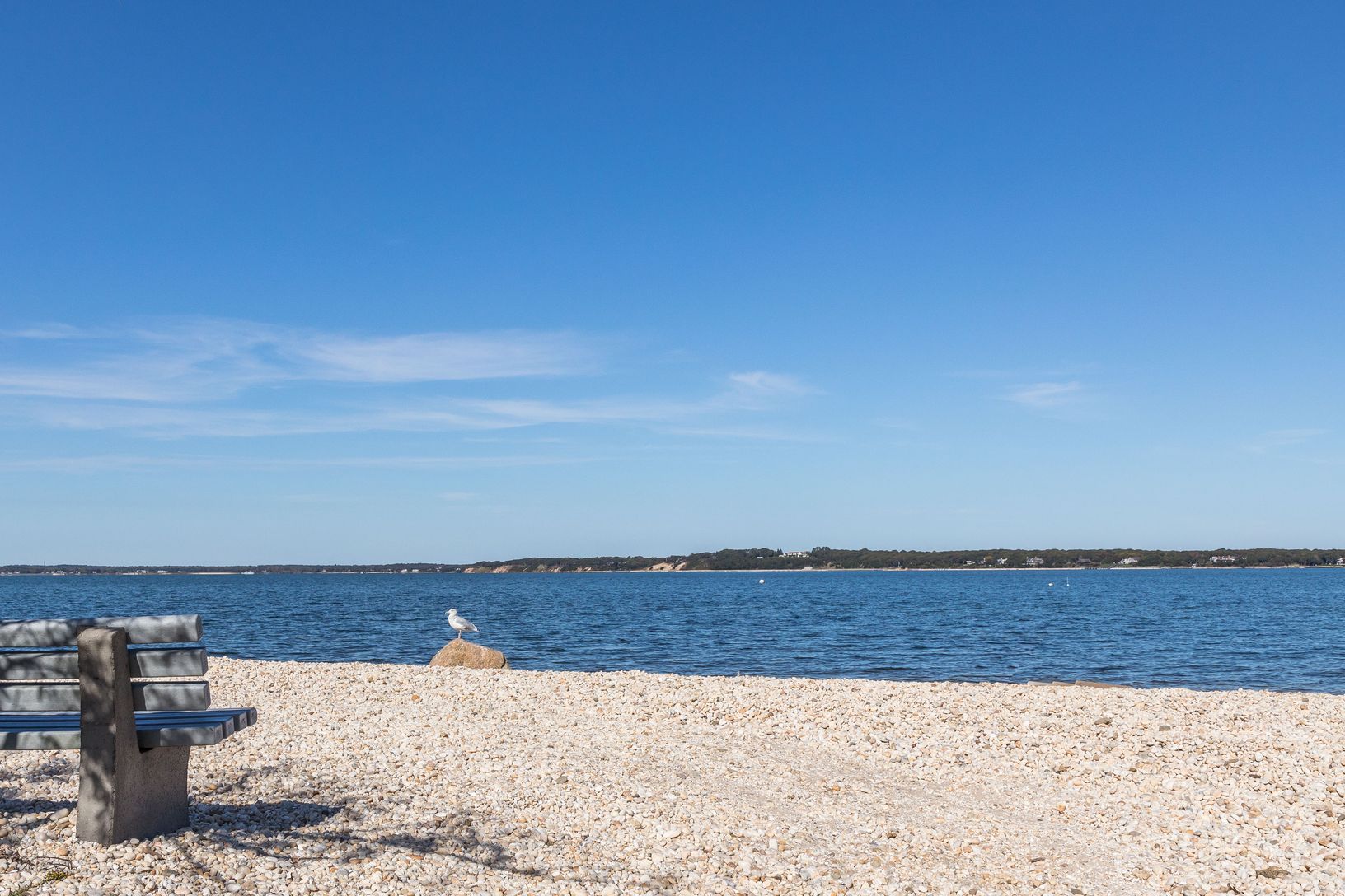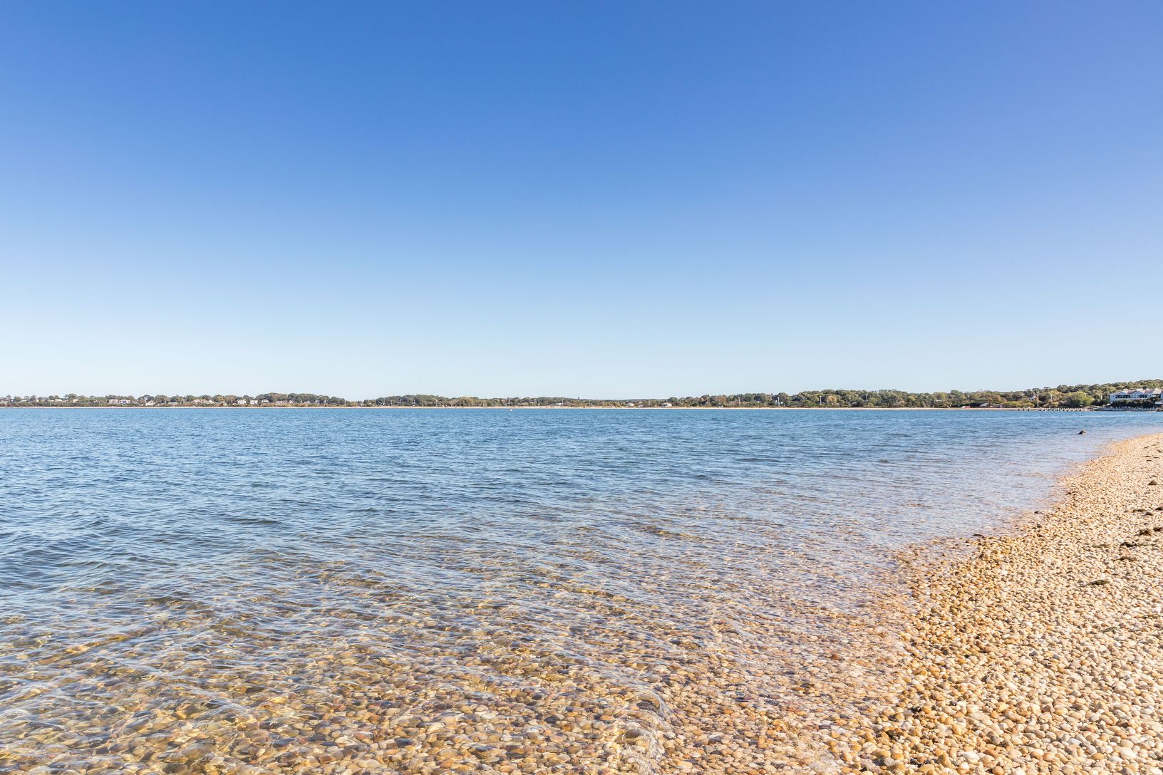 Enjoy Sag Harbor serenity and style in this charming, fully renovated three-bedroom, one-bathroom shingle-style home just inches from Noyack Bay beaches. Spanning 1,247 square feet, this gracious cottage is filled with airy sunlight and tranquil beachside ambiance. Deep-stained hardwood paves the floors while vaulted beamed ceilings soar overhead in the welcoming living room. The chef's kitchen is beautifully equipped with Shaker cabinetry top